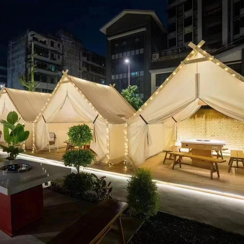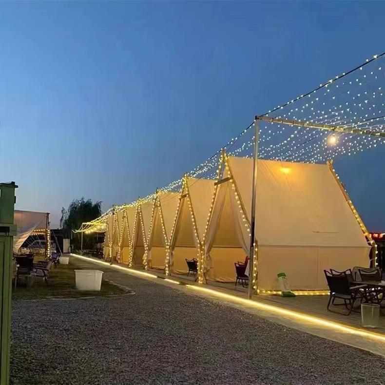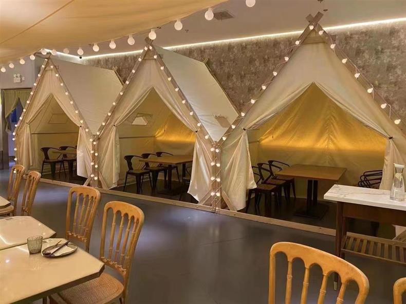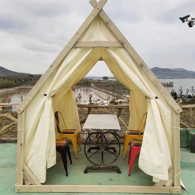 그물 붉은 삼각형 목조 주택 식당 텐트 야외 캠핑 경치 좋은 지역 홈스테이 뜨거운 냄비 바베큐 농가 캠프 텐트
