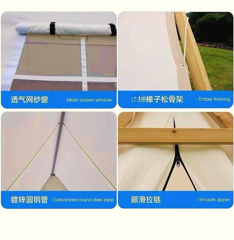 바닥 없는 4* 4m 목조 주택 유형 텐트(따뜻한 램프 포함)