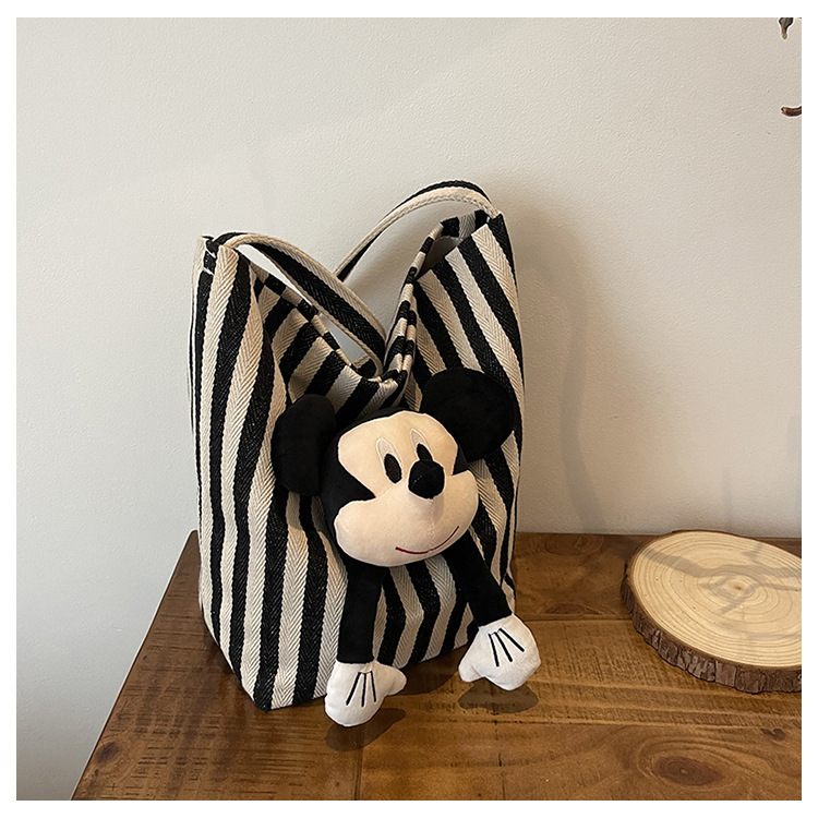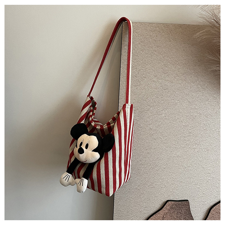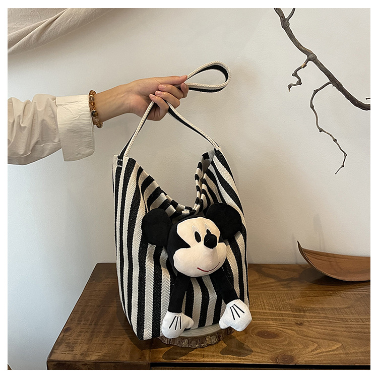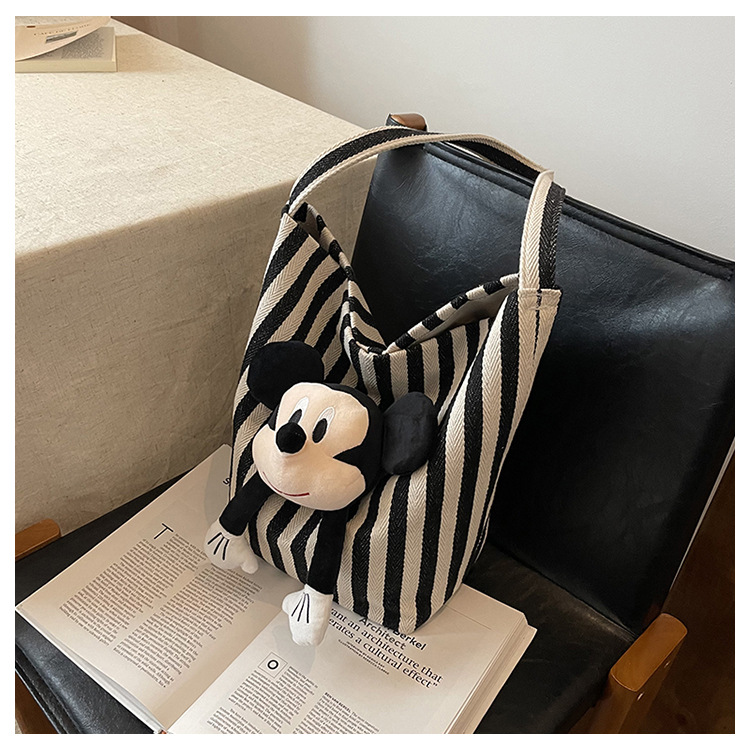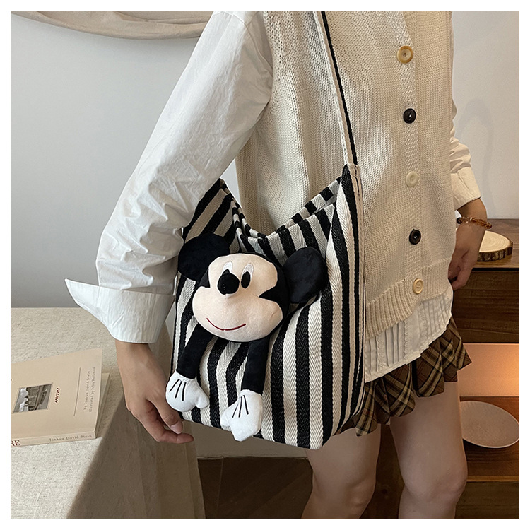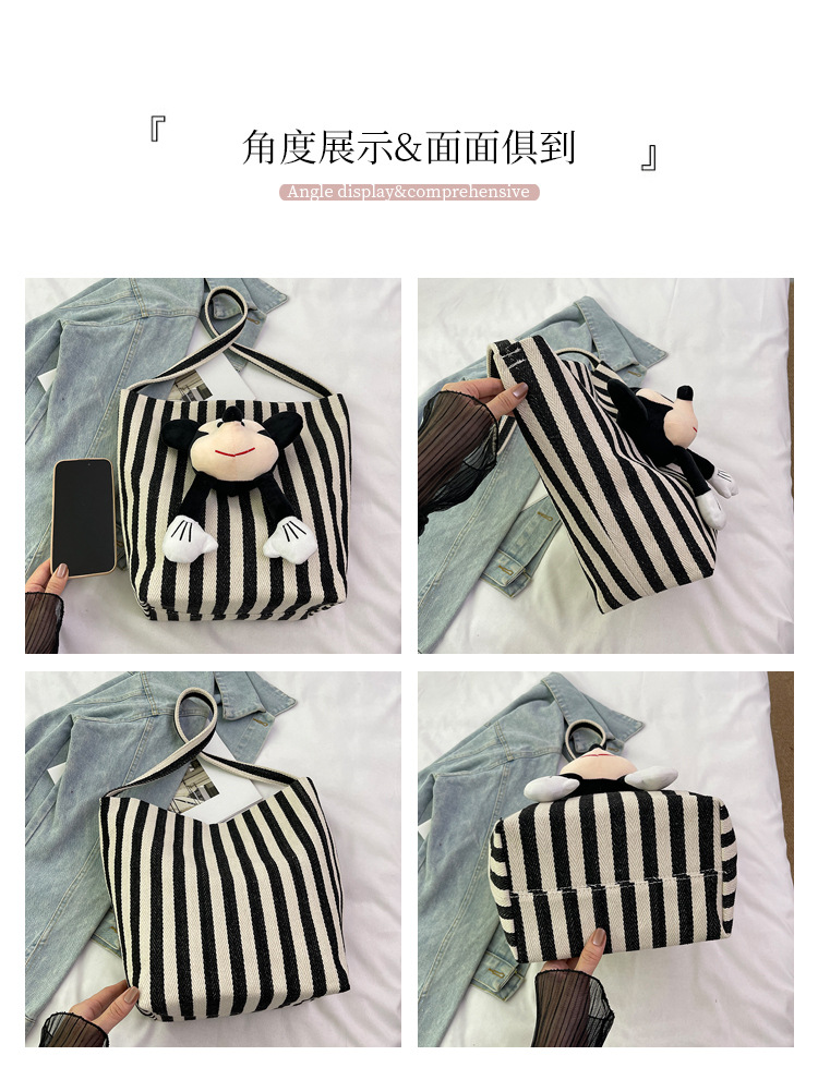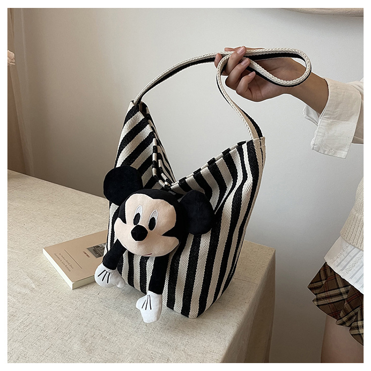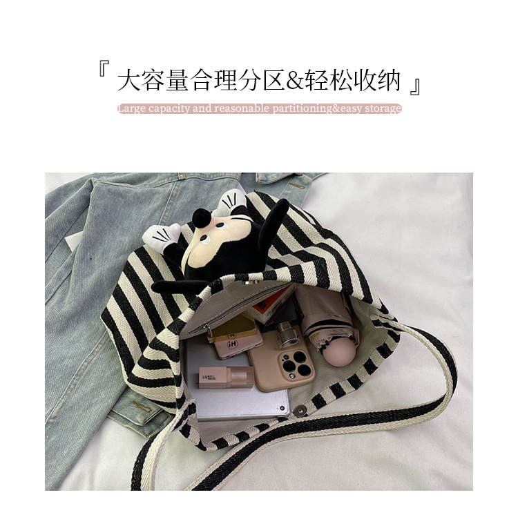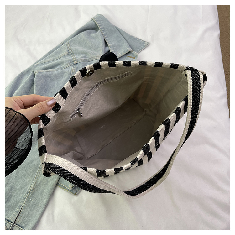 패셔너블한 스트라이프 캔버스 가방 여성용 신상 한국 스타일 패션 숄더백 겨드랑이 가방 대용량 학생 수업 및 통근 가방