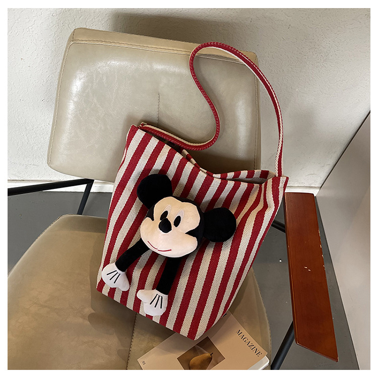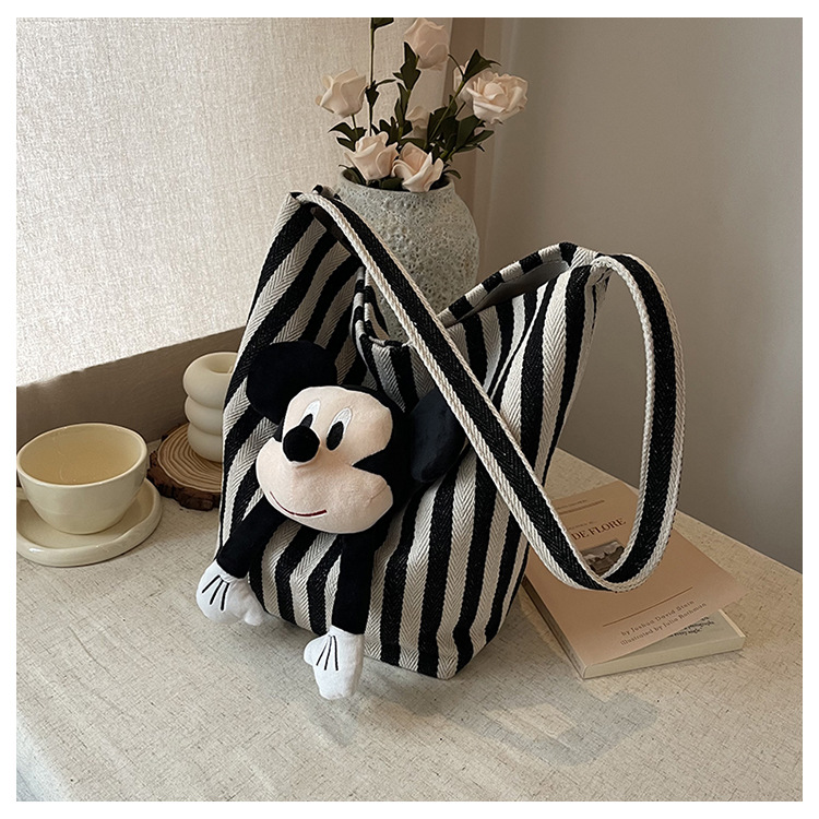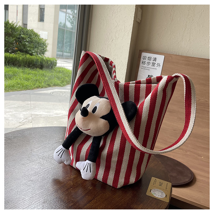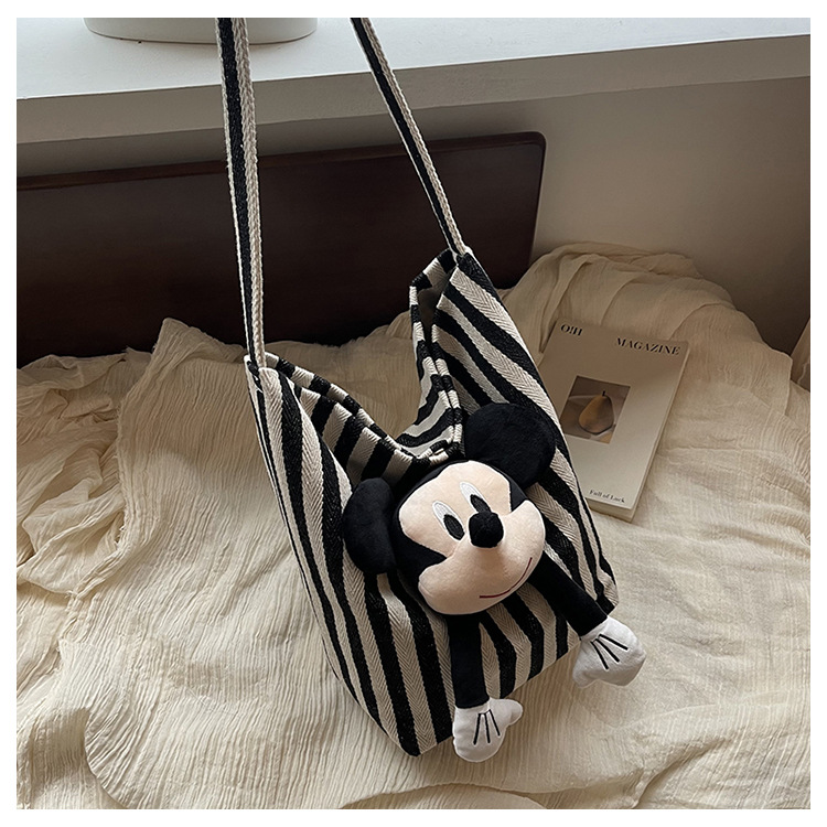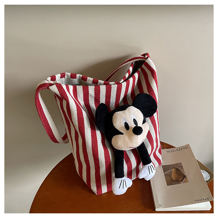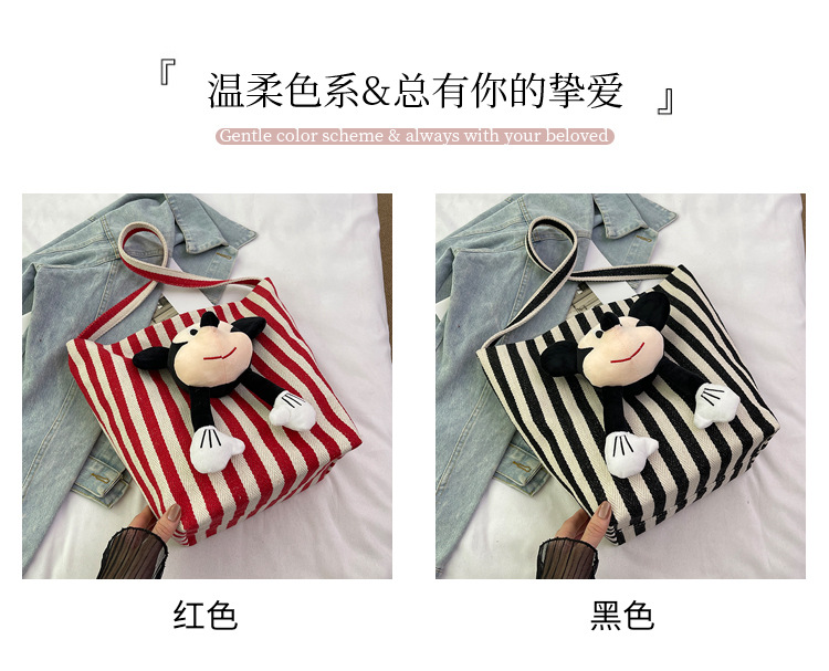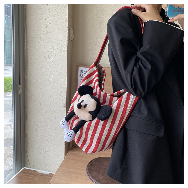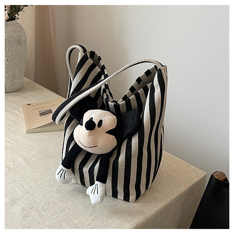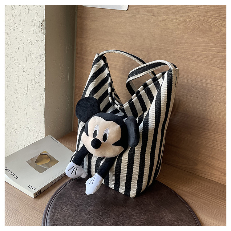 패셔너블한 스트라이프 캔버스 가방 여성용 신상 한국 스타일 패션 숄더백 겨드랑이 가방 대용량 학생 수업 및 통근 가방