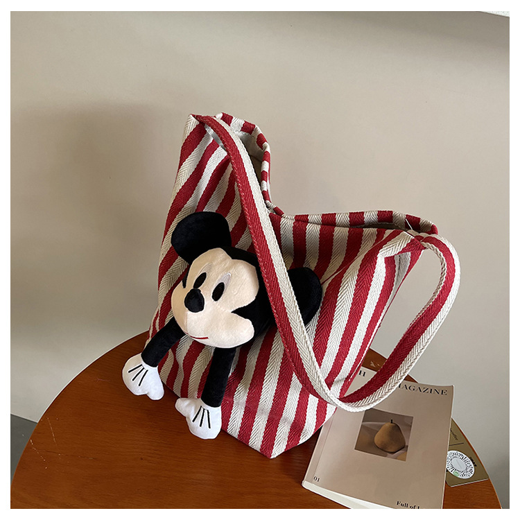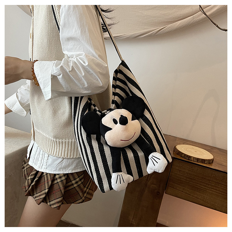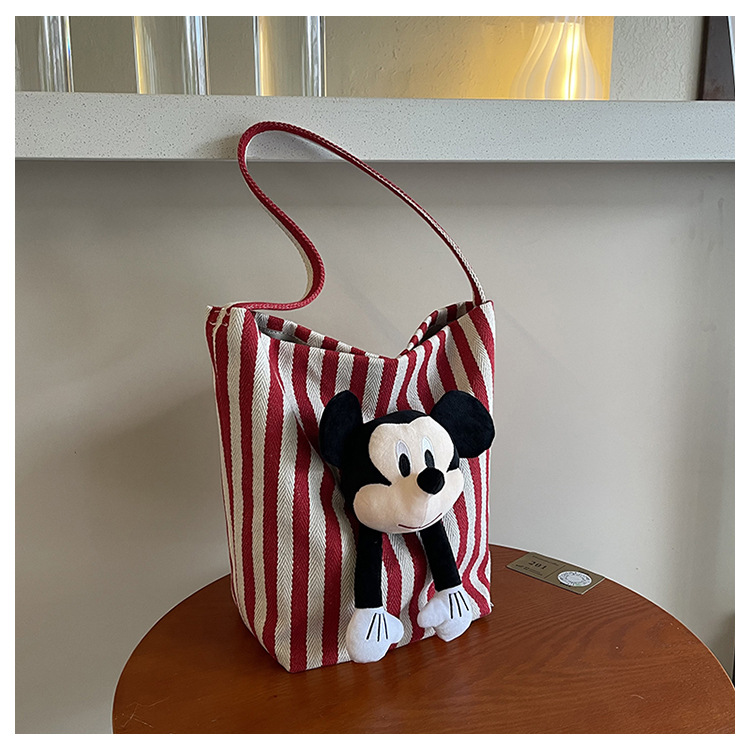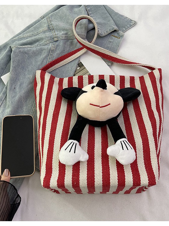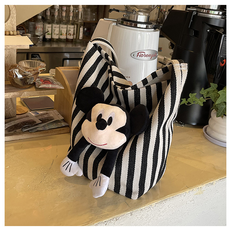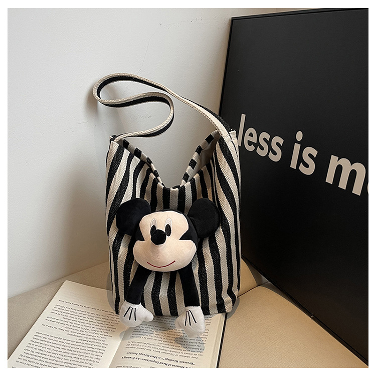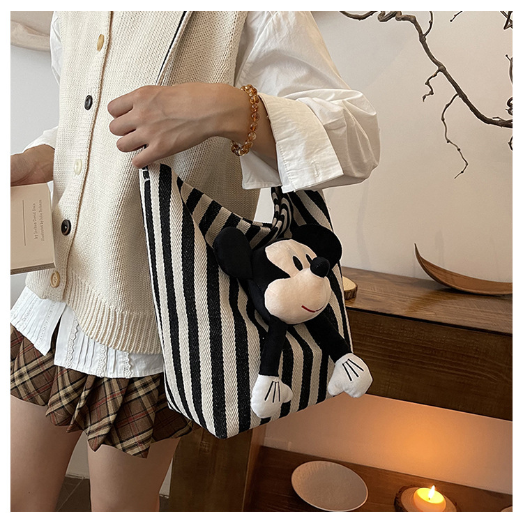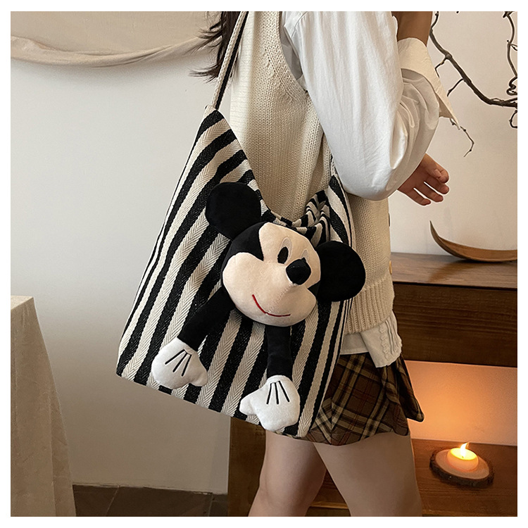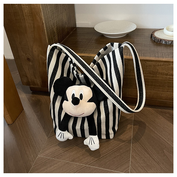 패셔너블한 스트라이프 캔버스 가방 여성용 신상 한국 스타일 패션 숄더백 겨드랑이 가방 대용량 학생 수업 및 통근 가방