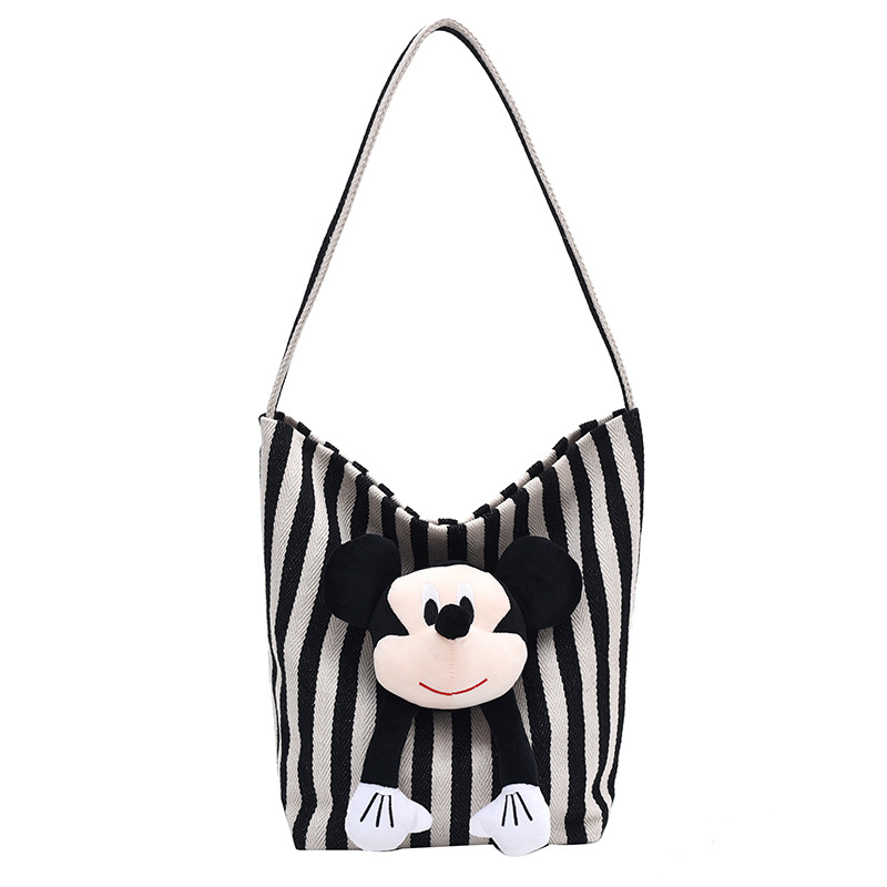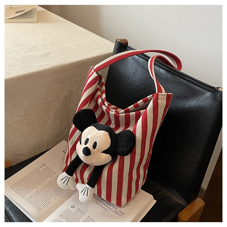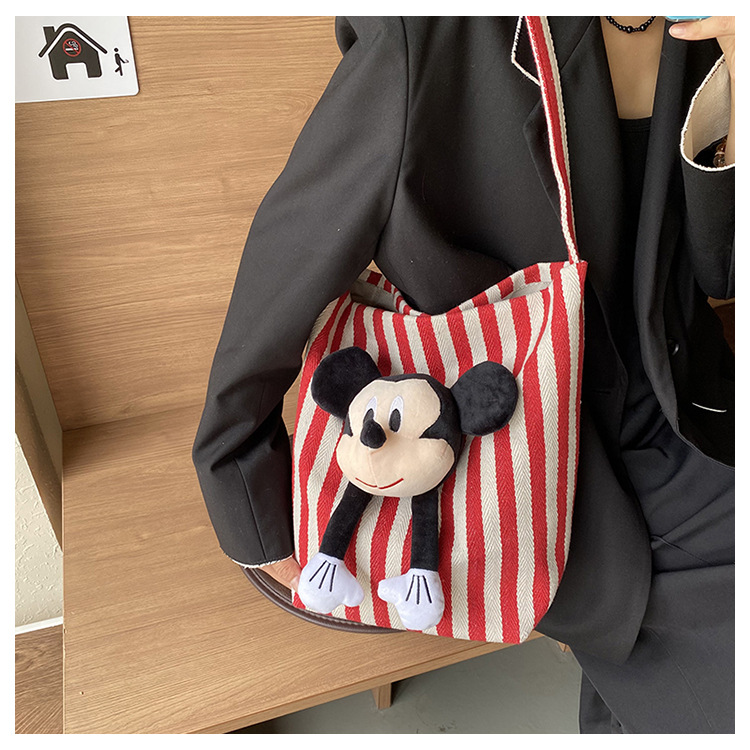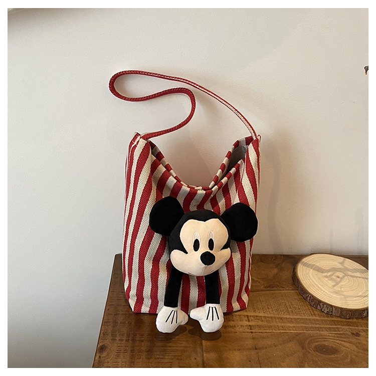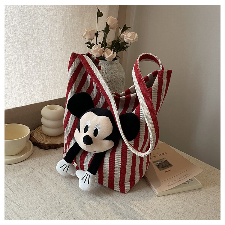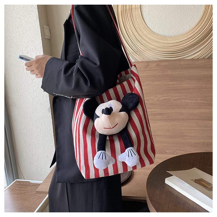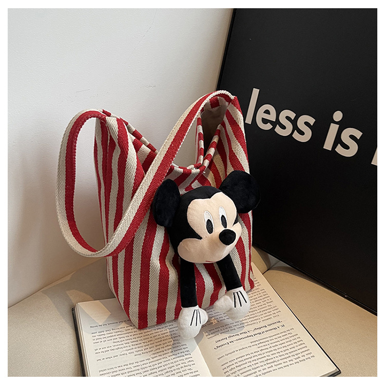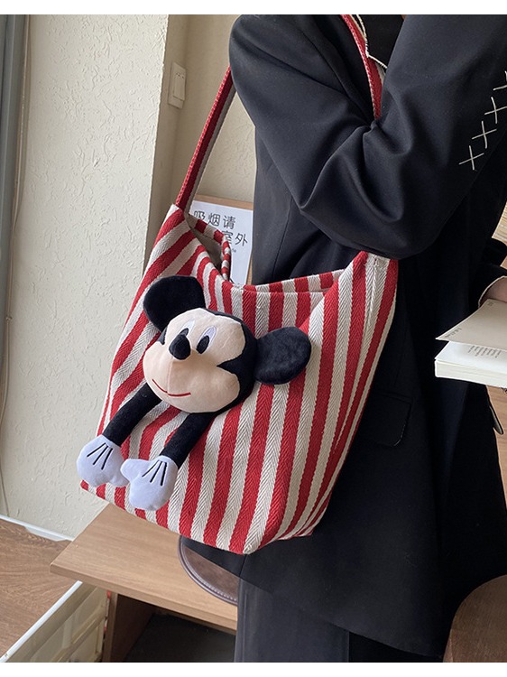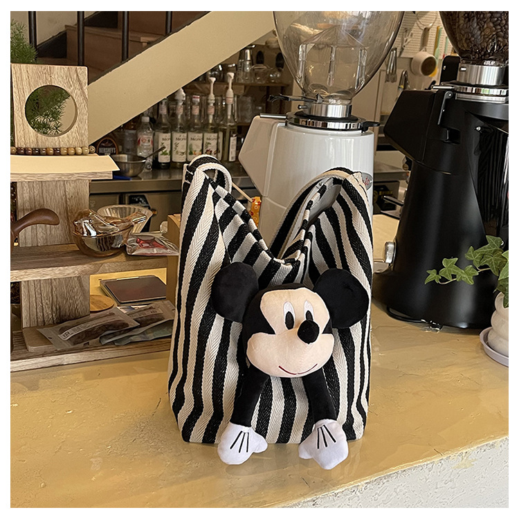 패셔너블한 스트라이프 캔버스 가방 여성용 신상 한국 스타일 패션 숄더백 겨드랑이 가방 대용량 학생 수업 및 통근 가방