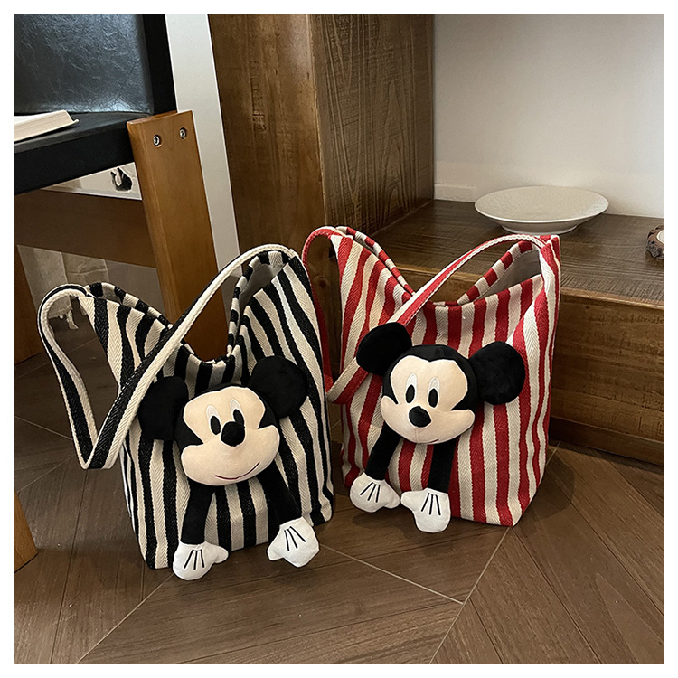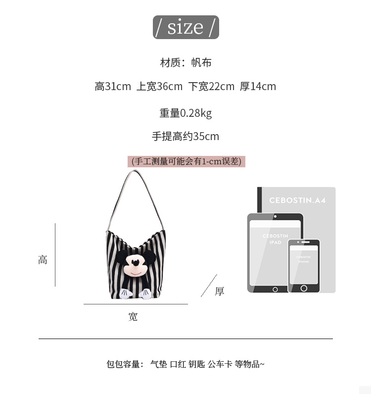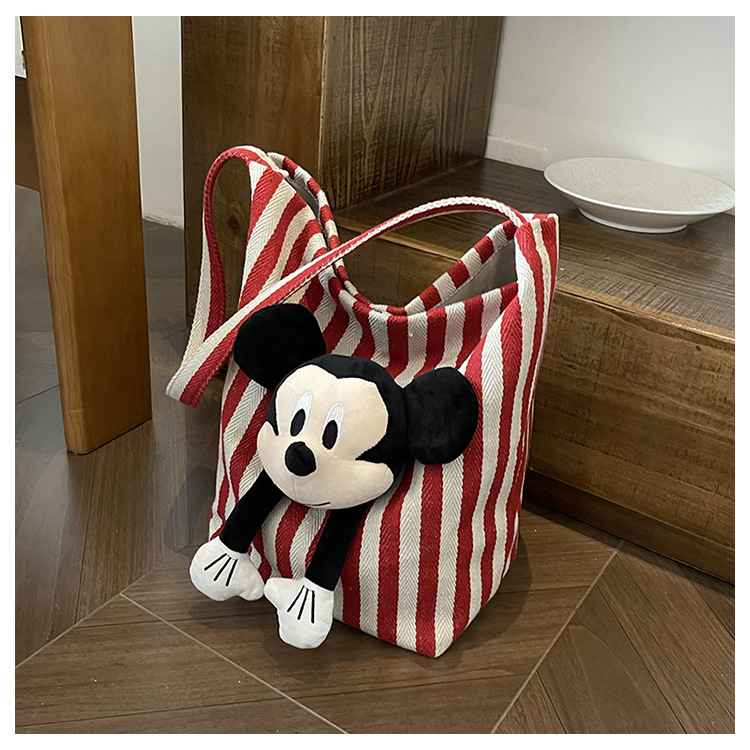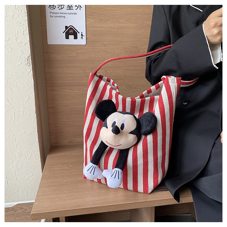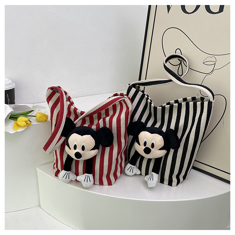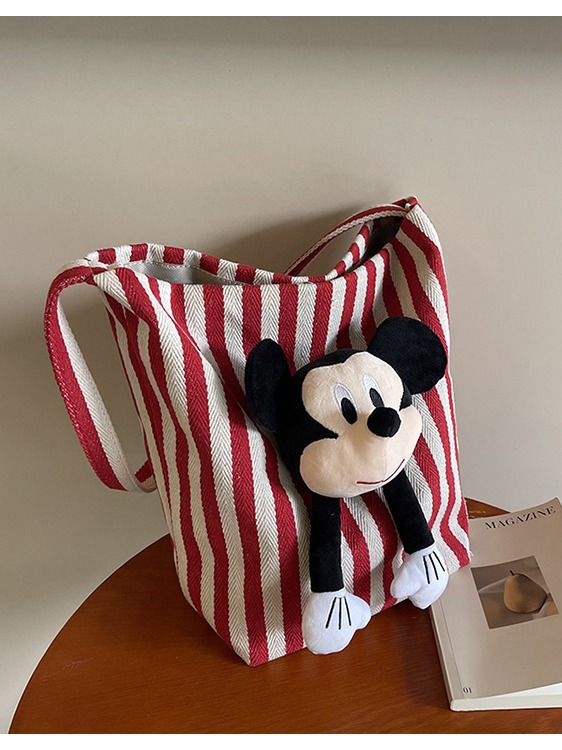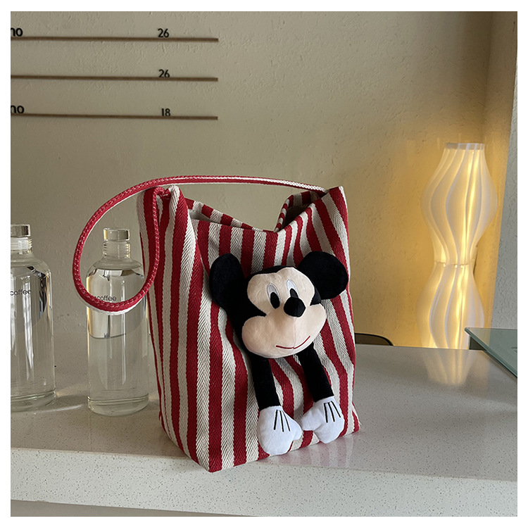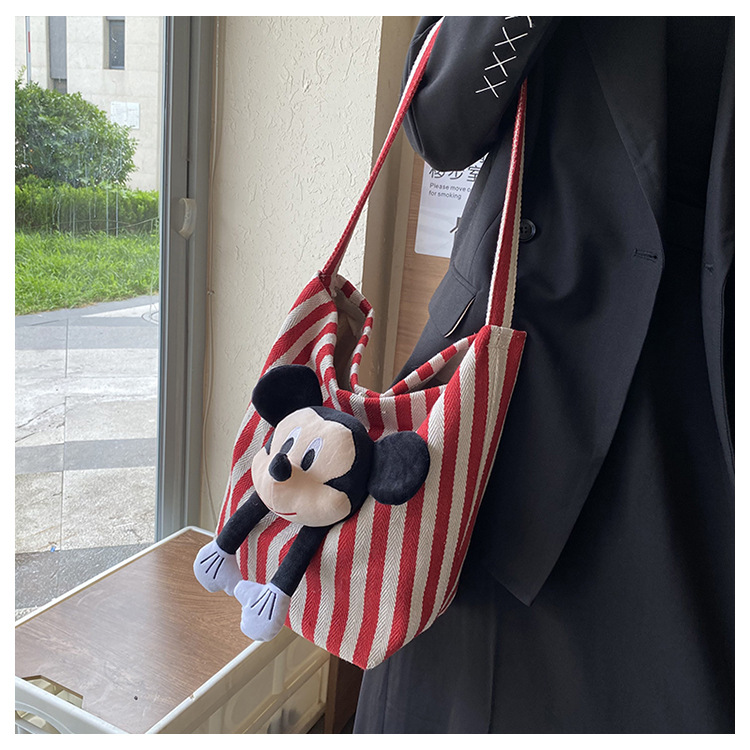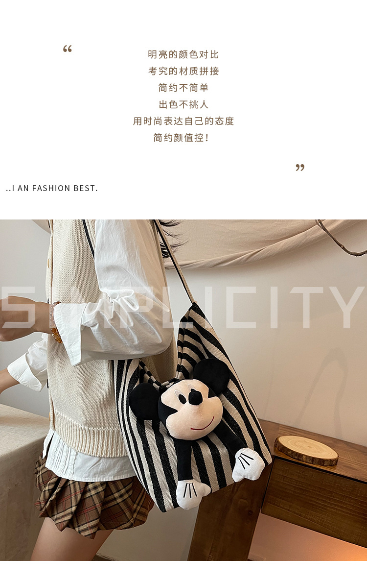 패셔너블한 스트라이프 캔버스 가방 여성용 신상 한국 스타일 패션 숄더백 겨드랑이 가방 대용량 학생 수업 및 통근 가방