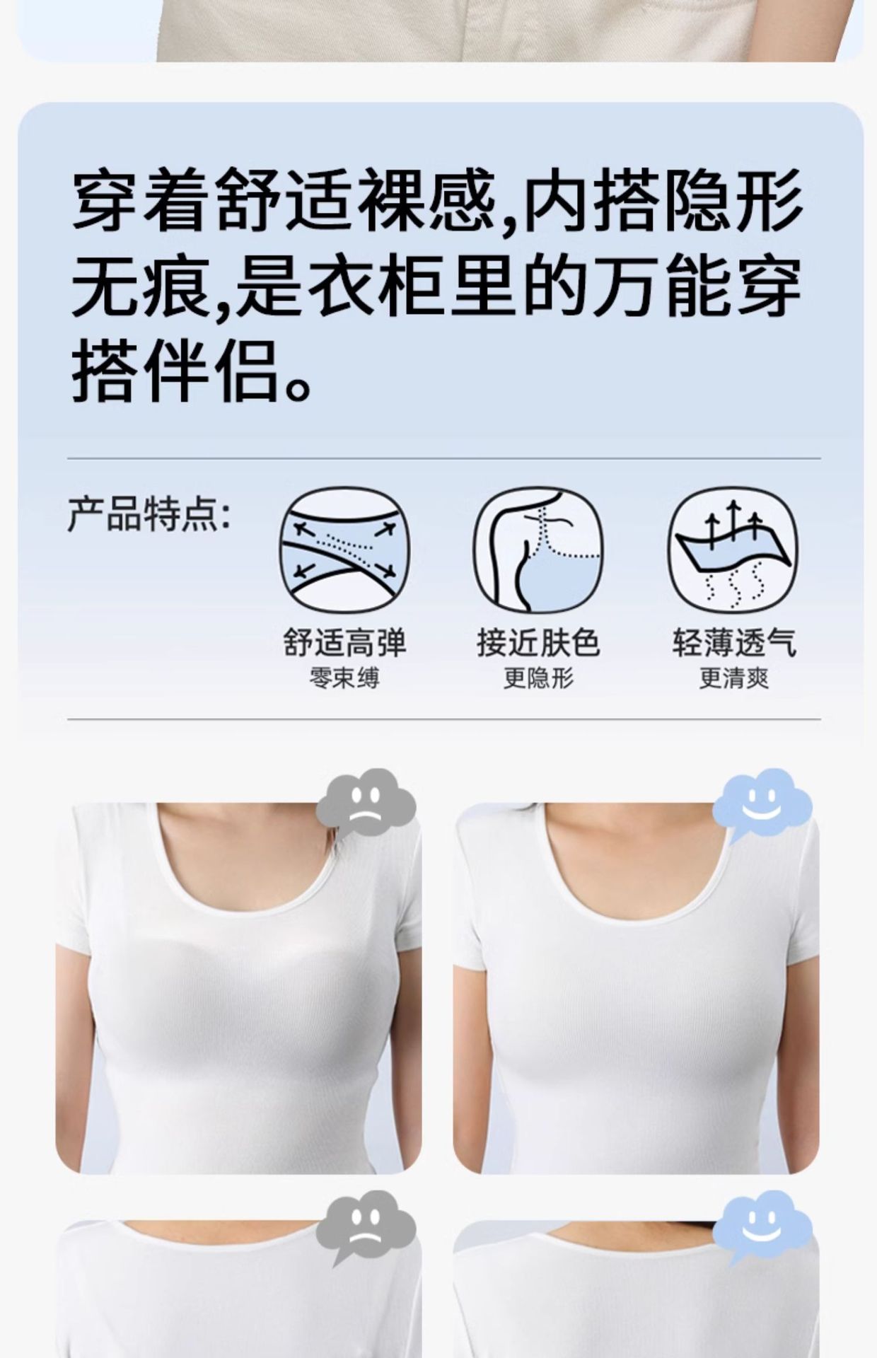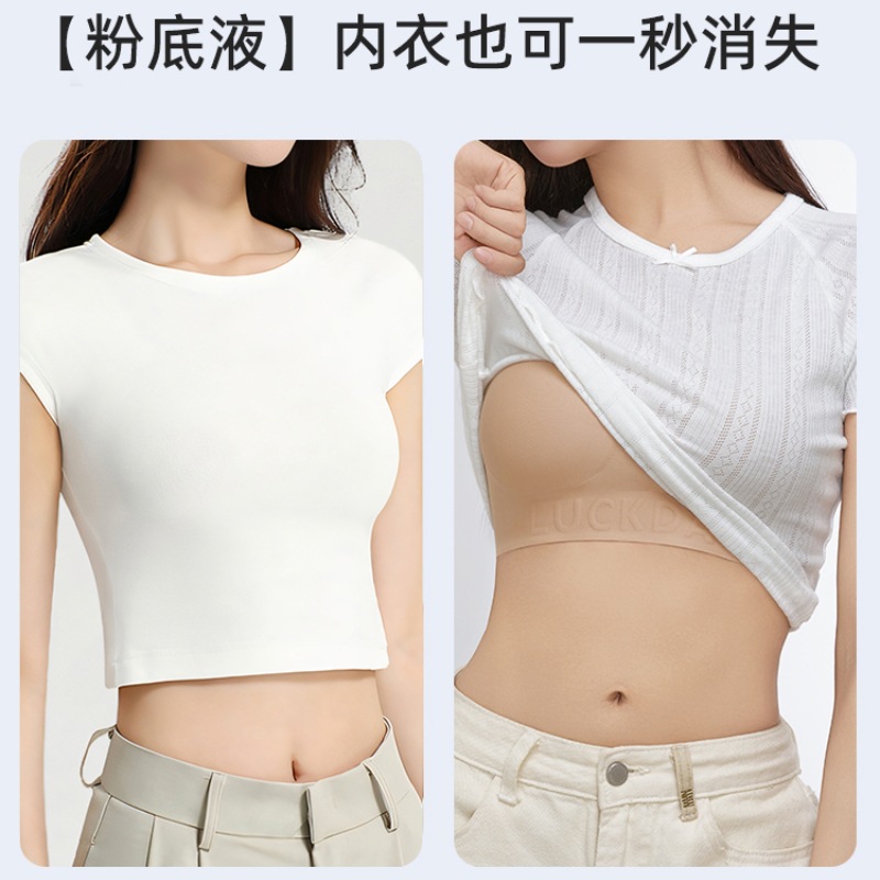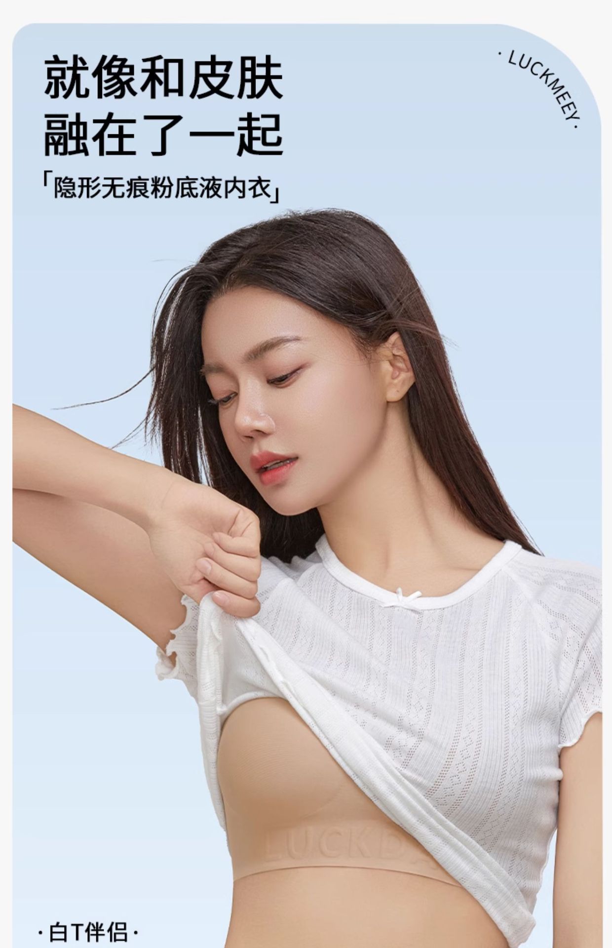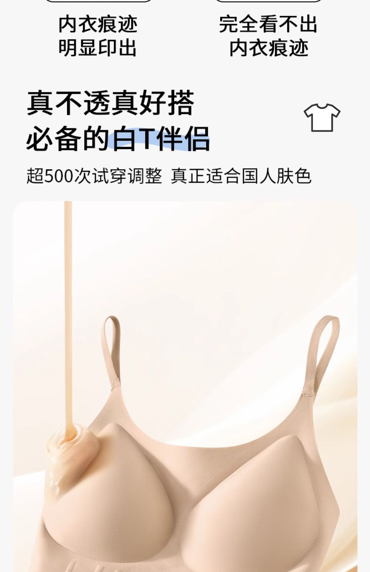 액체 기초 보이지 않는 속옷 큰 가슴 작은 살 색깔 어두운 피부 색깔 원활한 브래지어 여름 얇은 흰색 T 셔츠 불투명