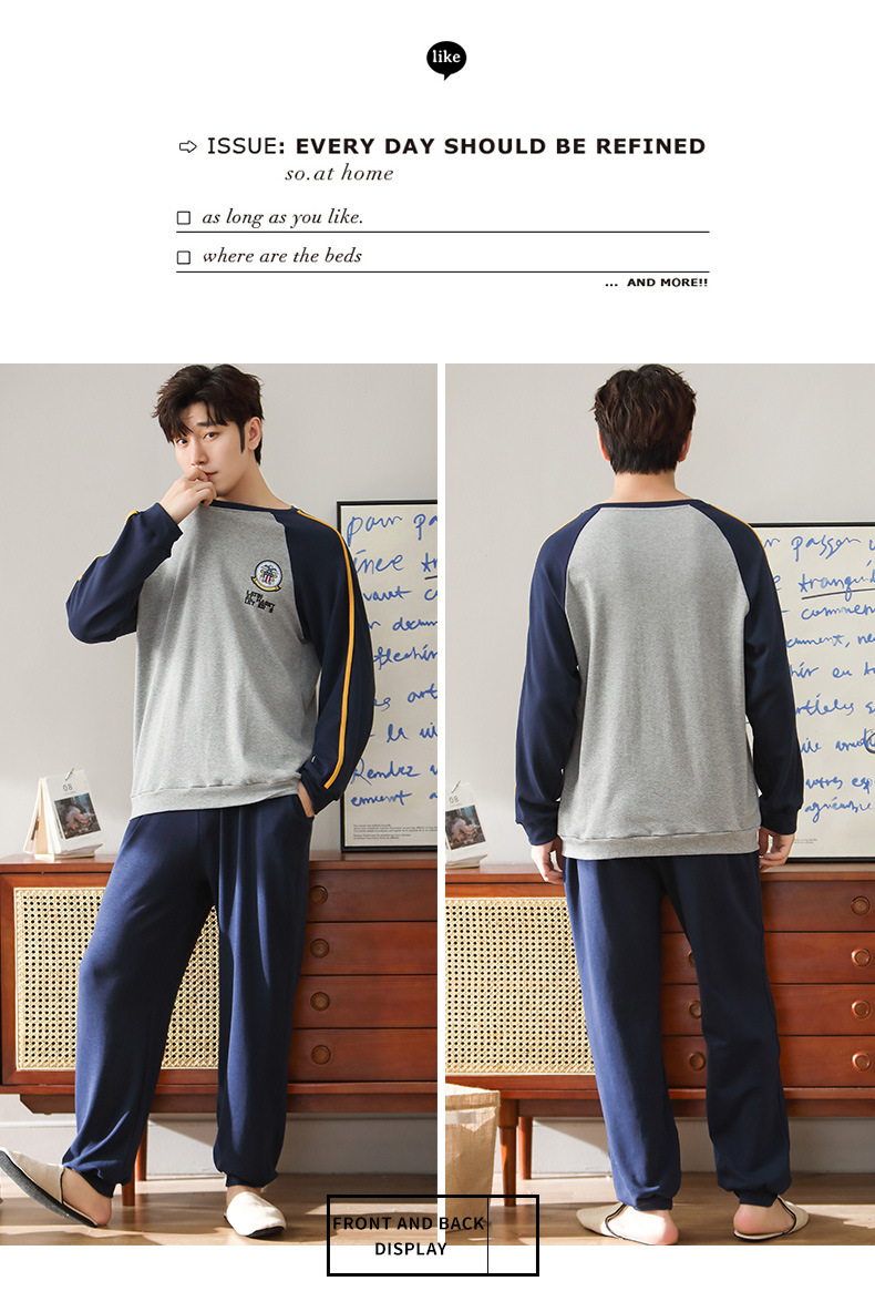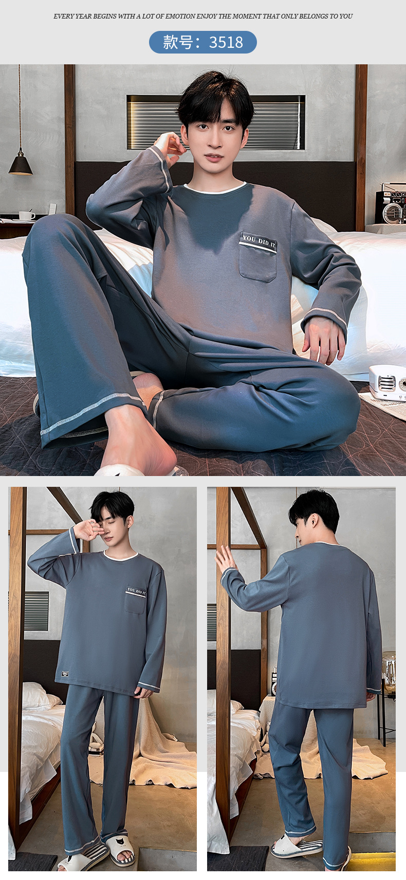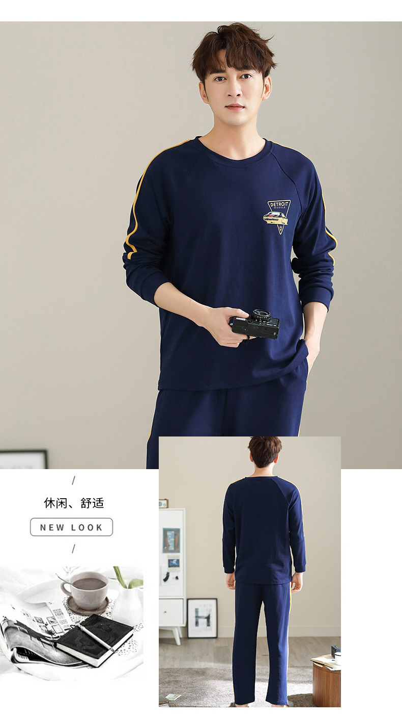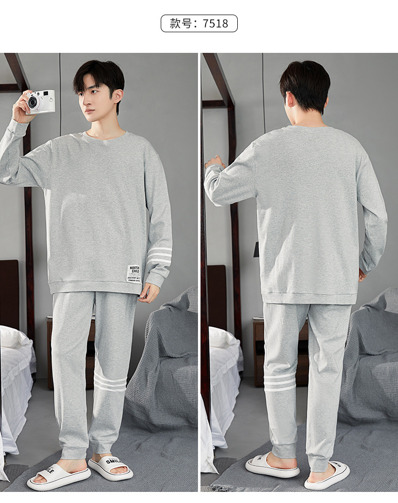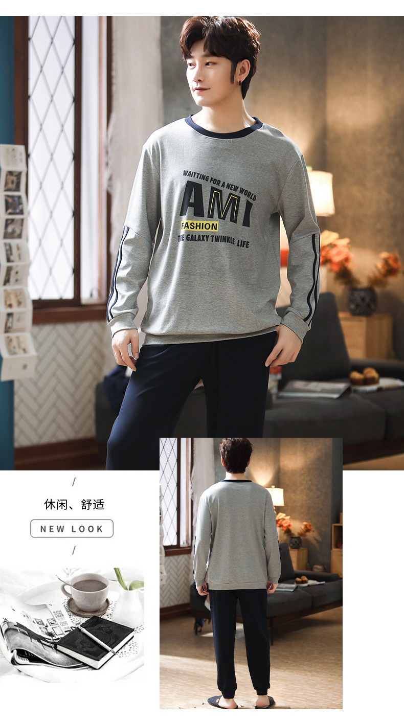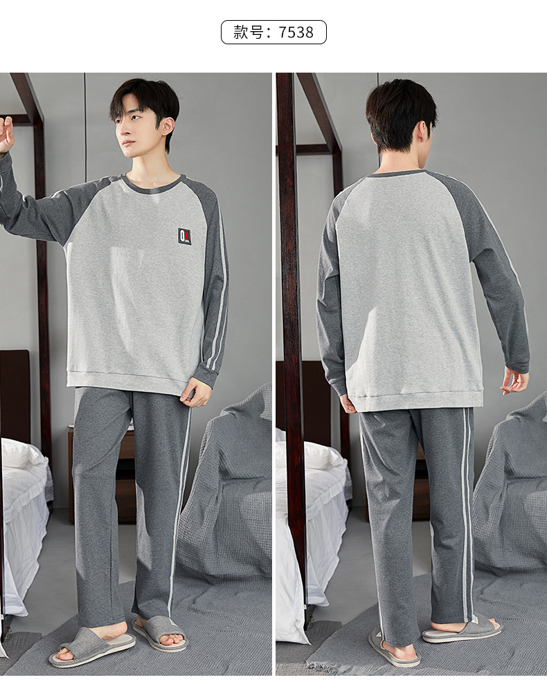 2024 가을과 겨울 남성 홈웨어 세트 긴 소매 바지 라운드 넥 풀오버 코튼 파자마는 캐주얼 입을 수 있습니다.