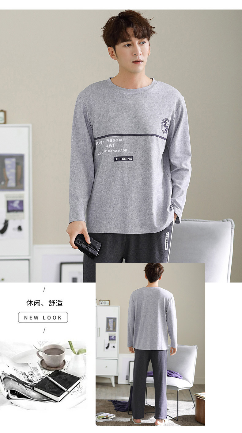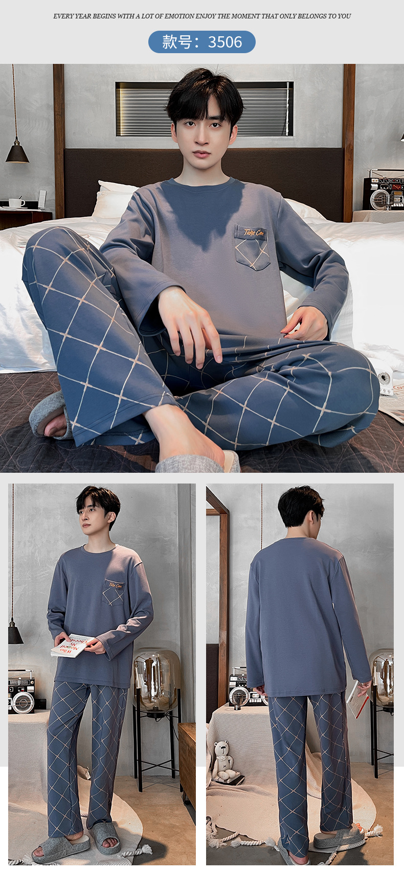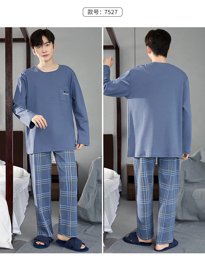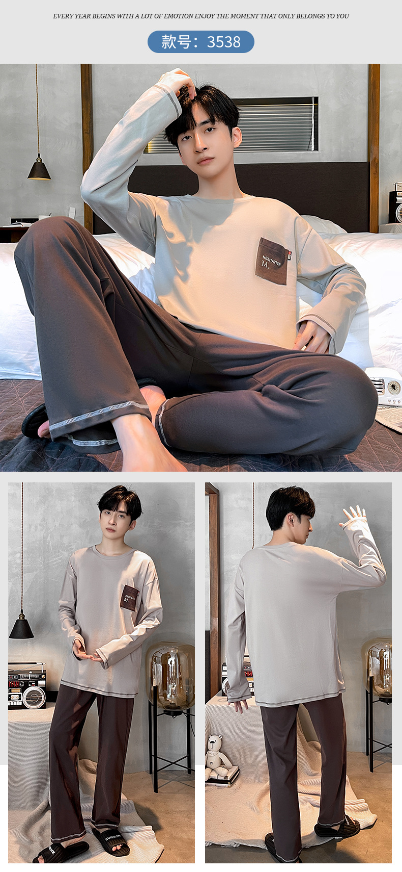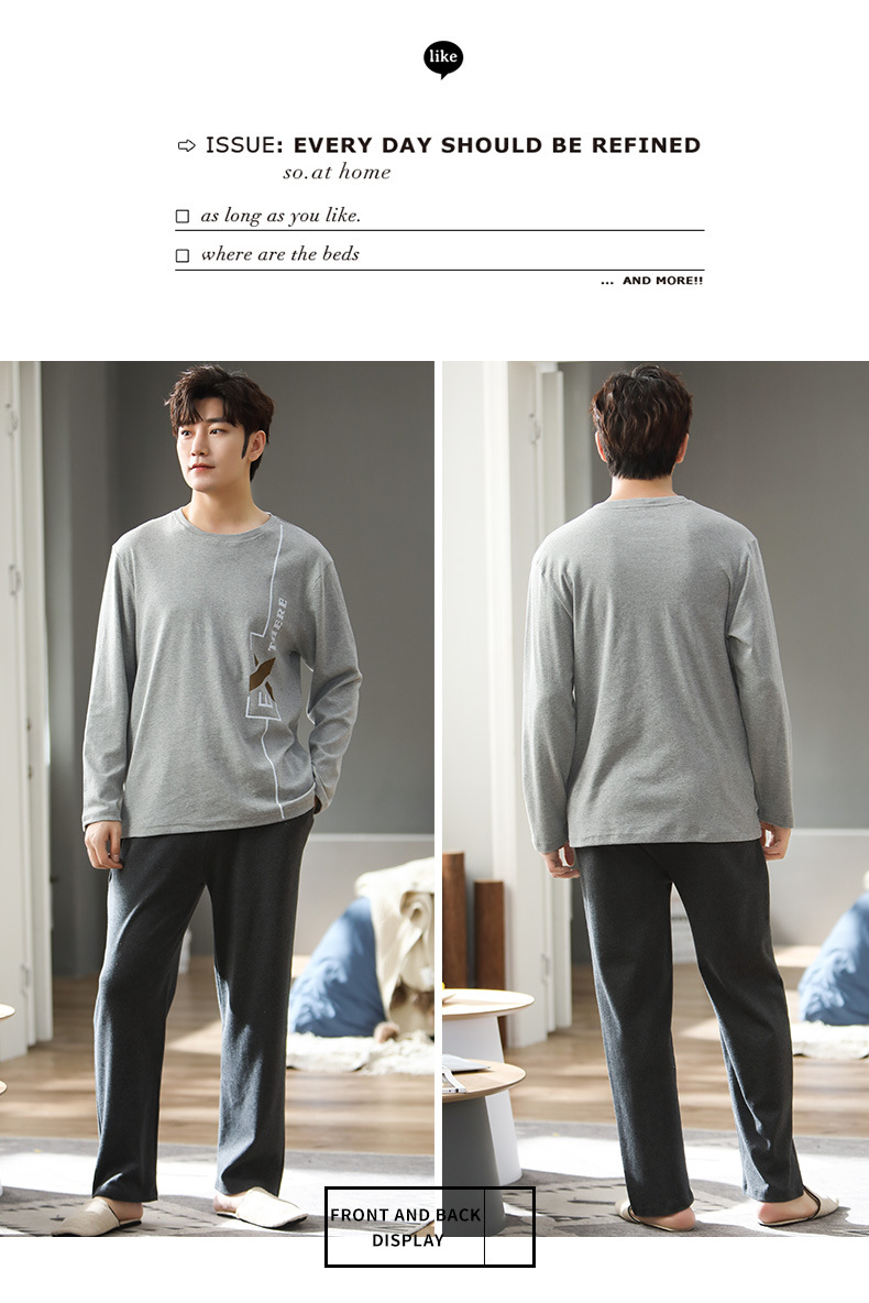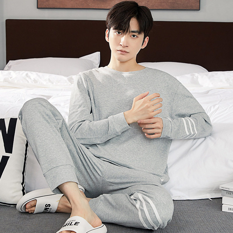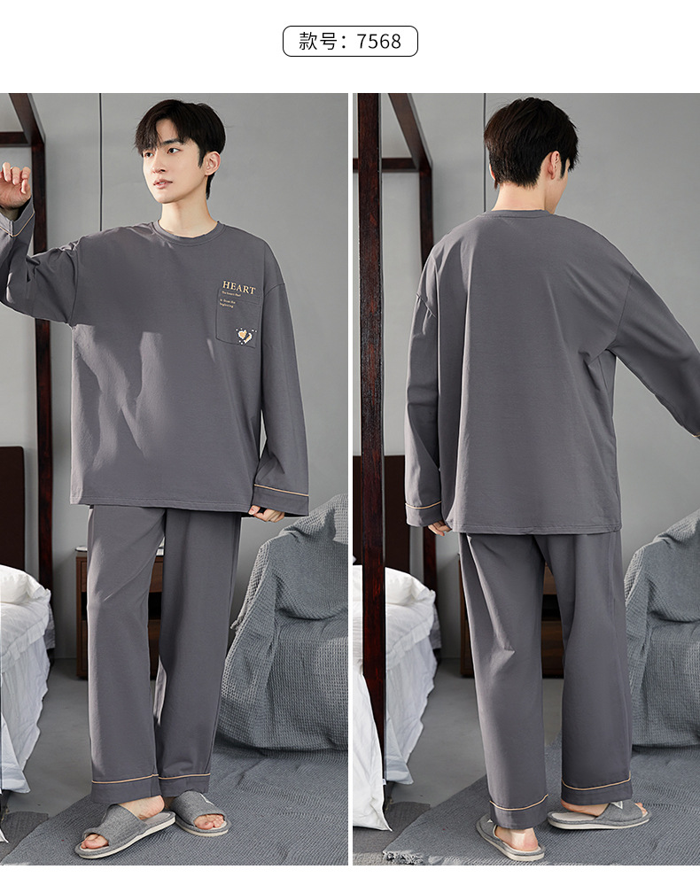 2024 가을과 겨울 남성 홈웨어 세트 긴 소매 바지 라운드 넥 풀오버 코튼 파자마는 캐주얼 입을 수 있습니다.