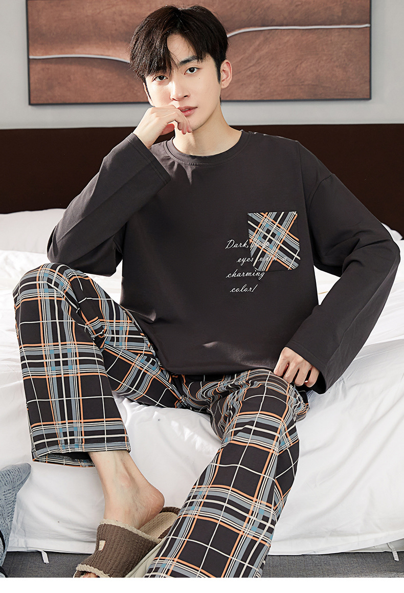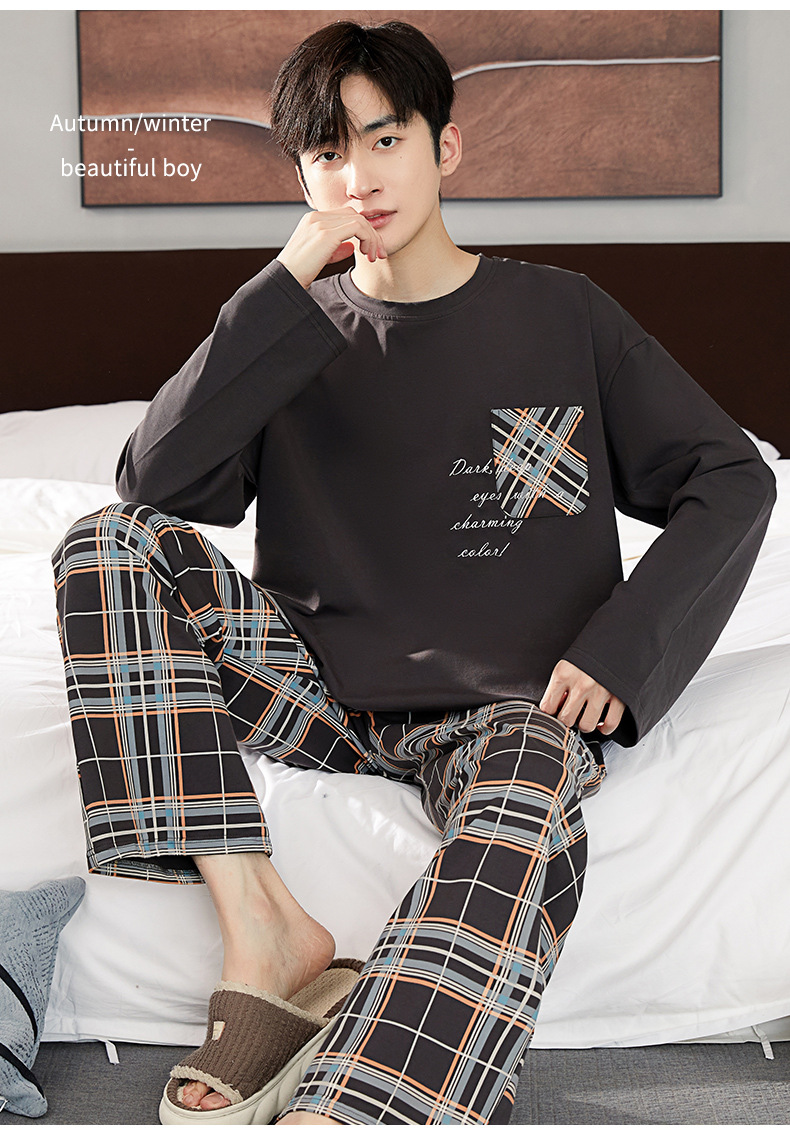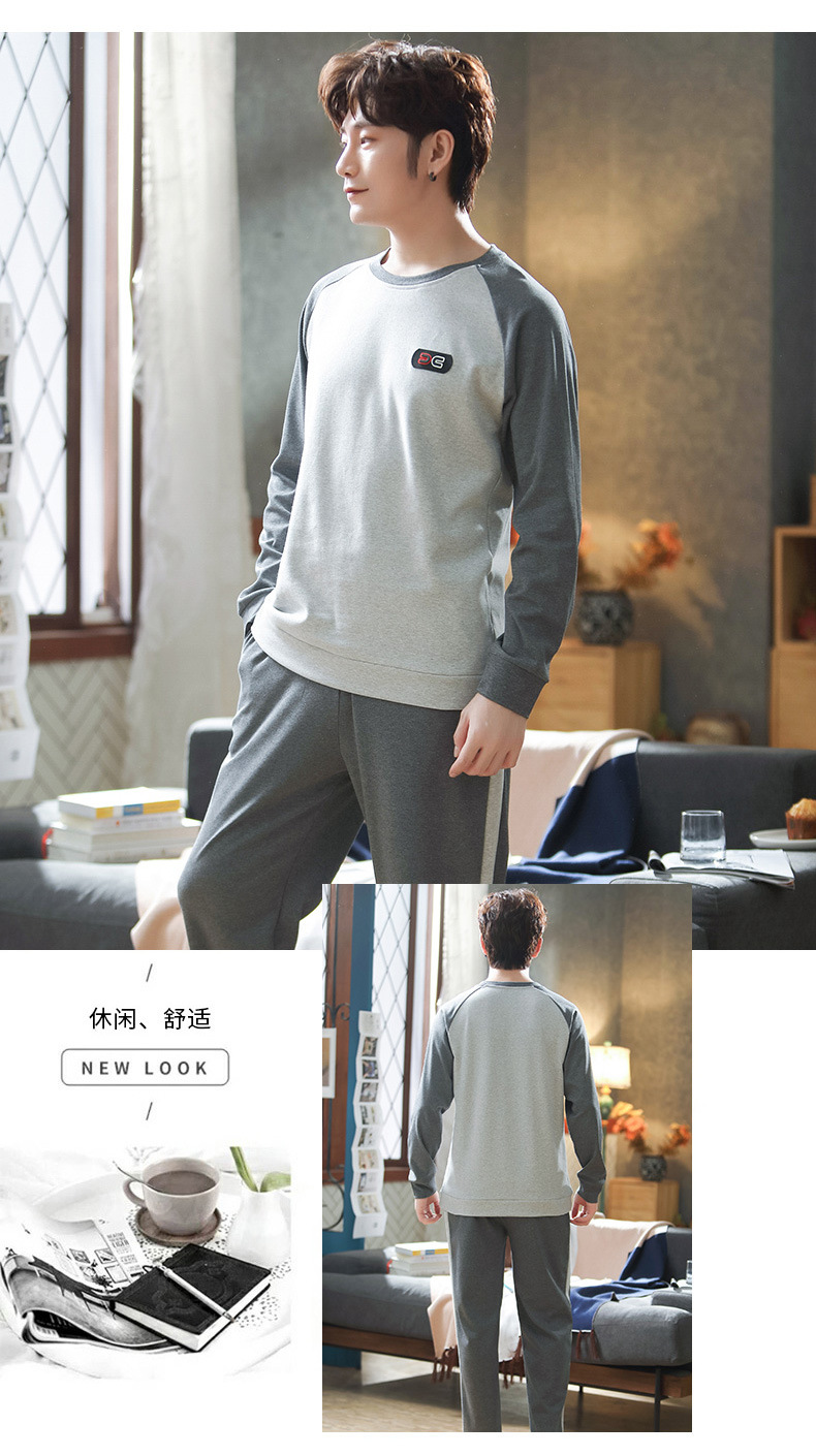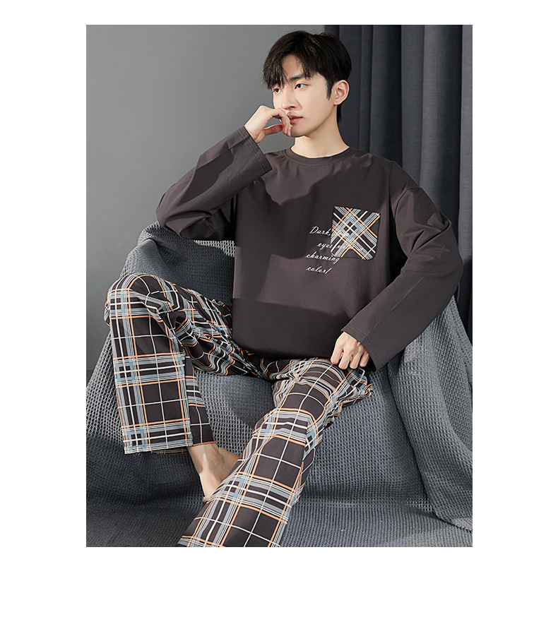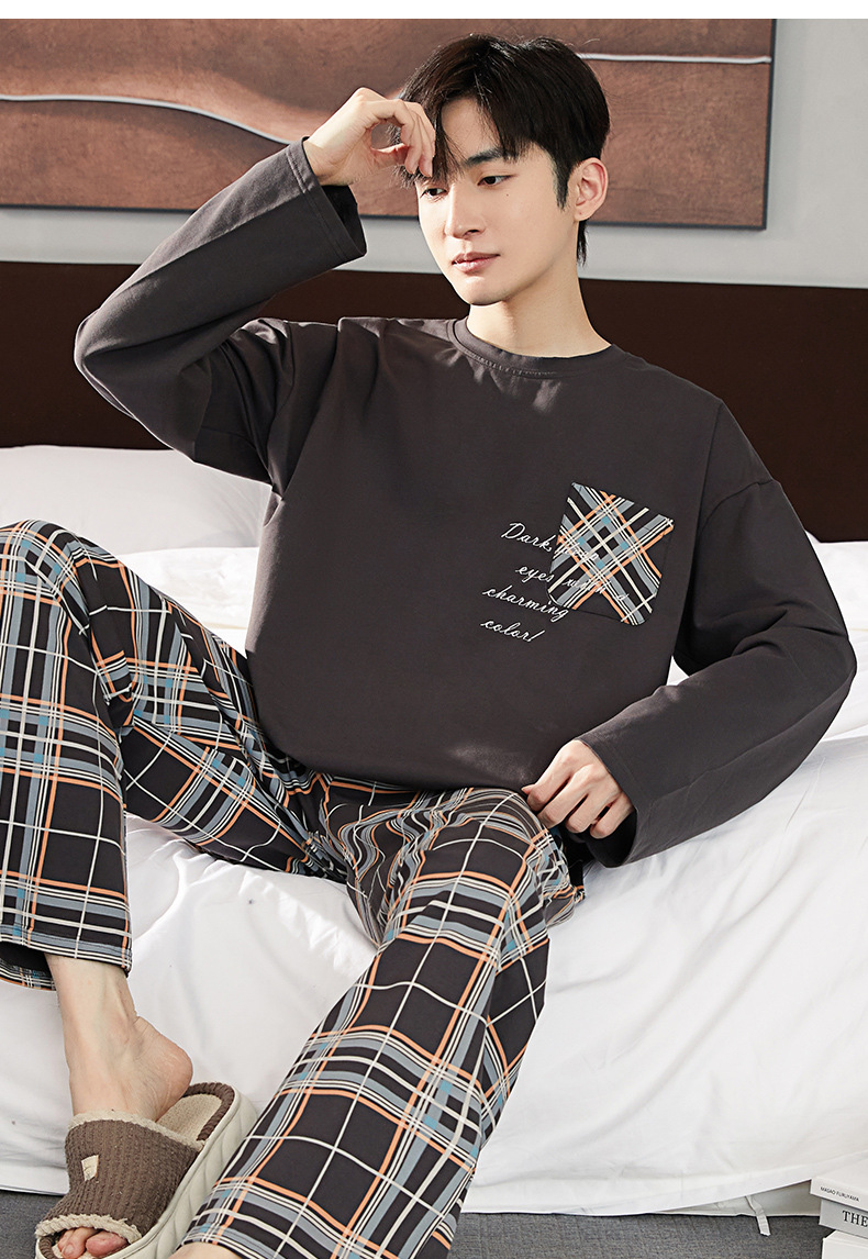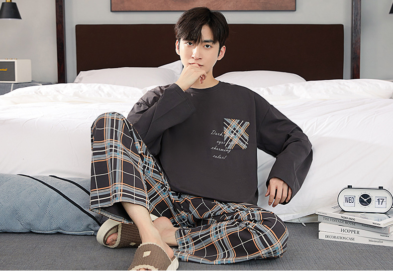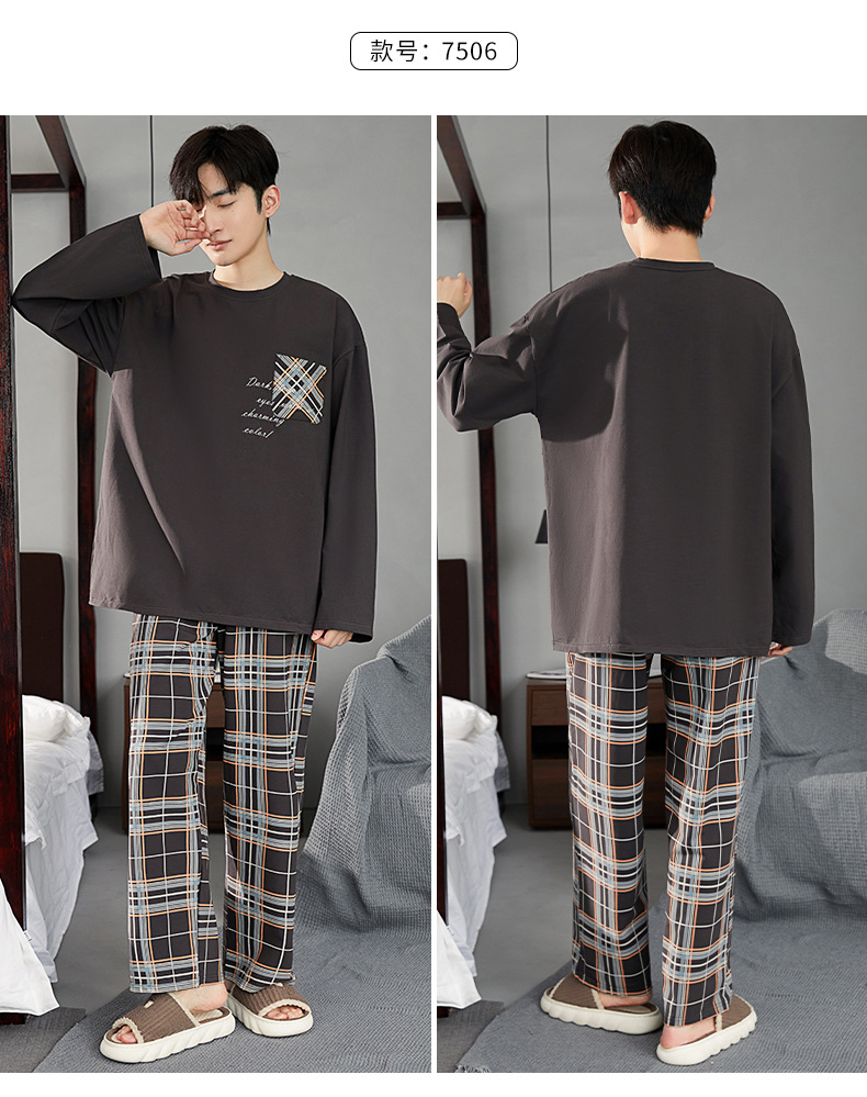 2024 가을과 겨울 남성 홈웨어 세트 긴 소매 바지 라운드 넥 풀오버 코튼 파자마는 캐주얼 입을 수 있습니다.