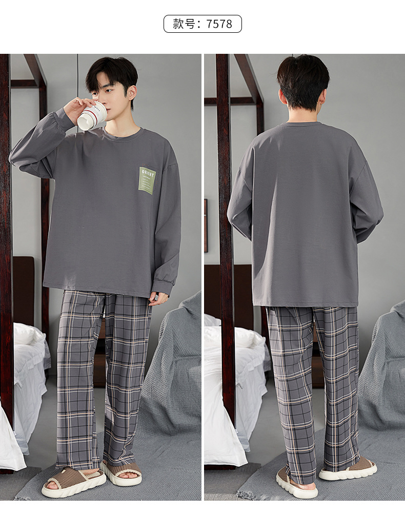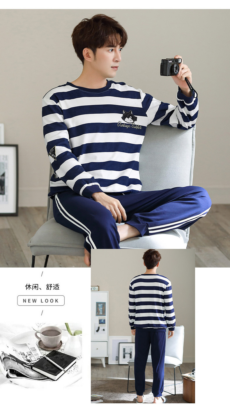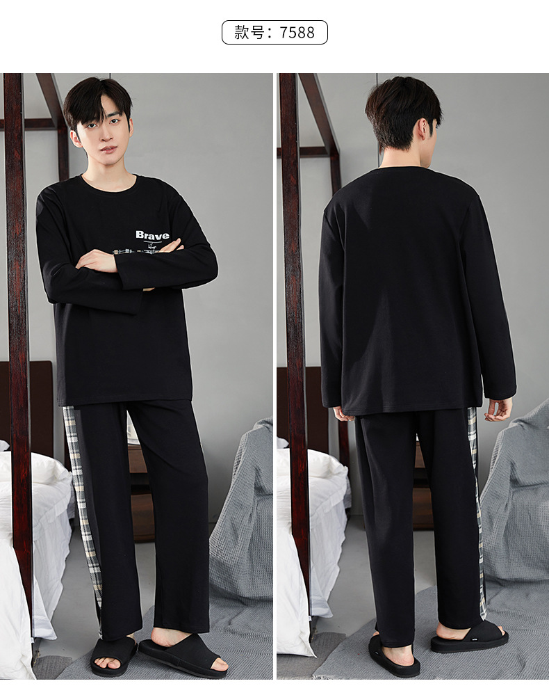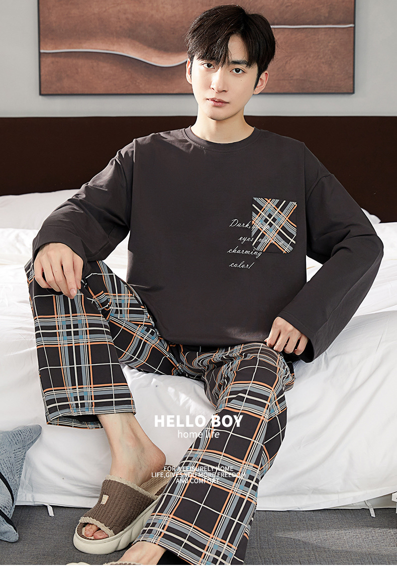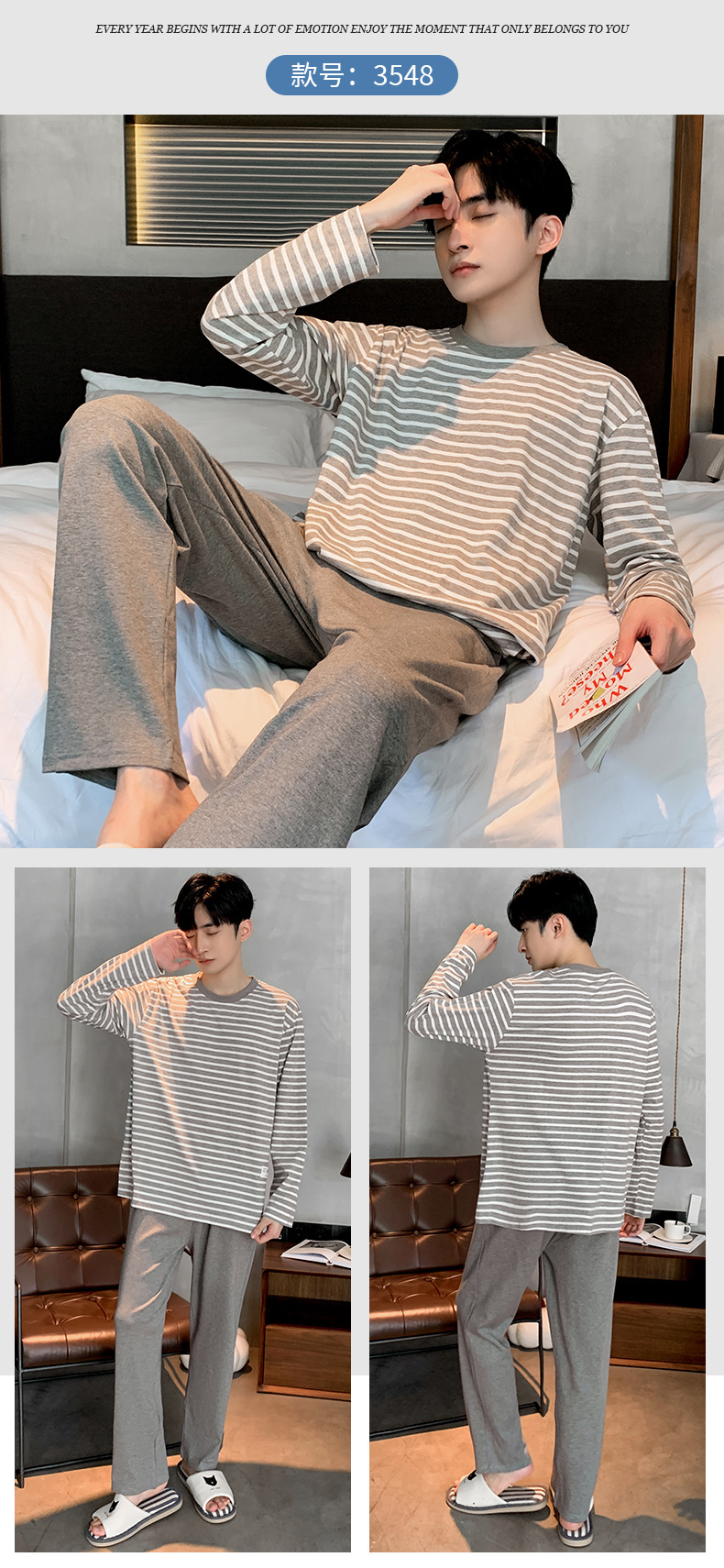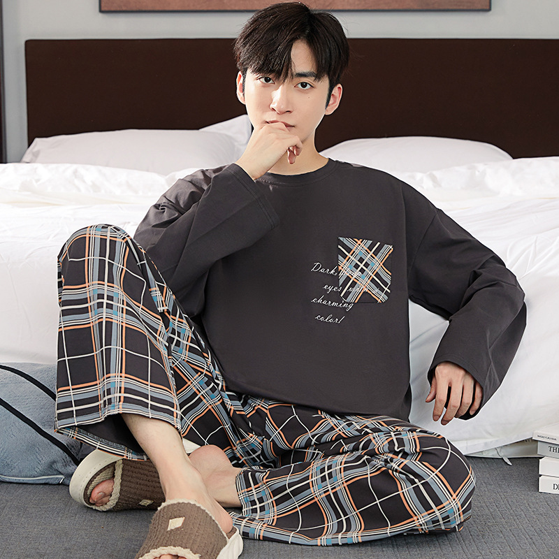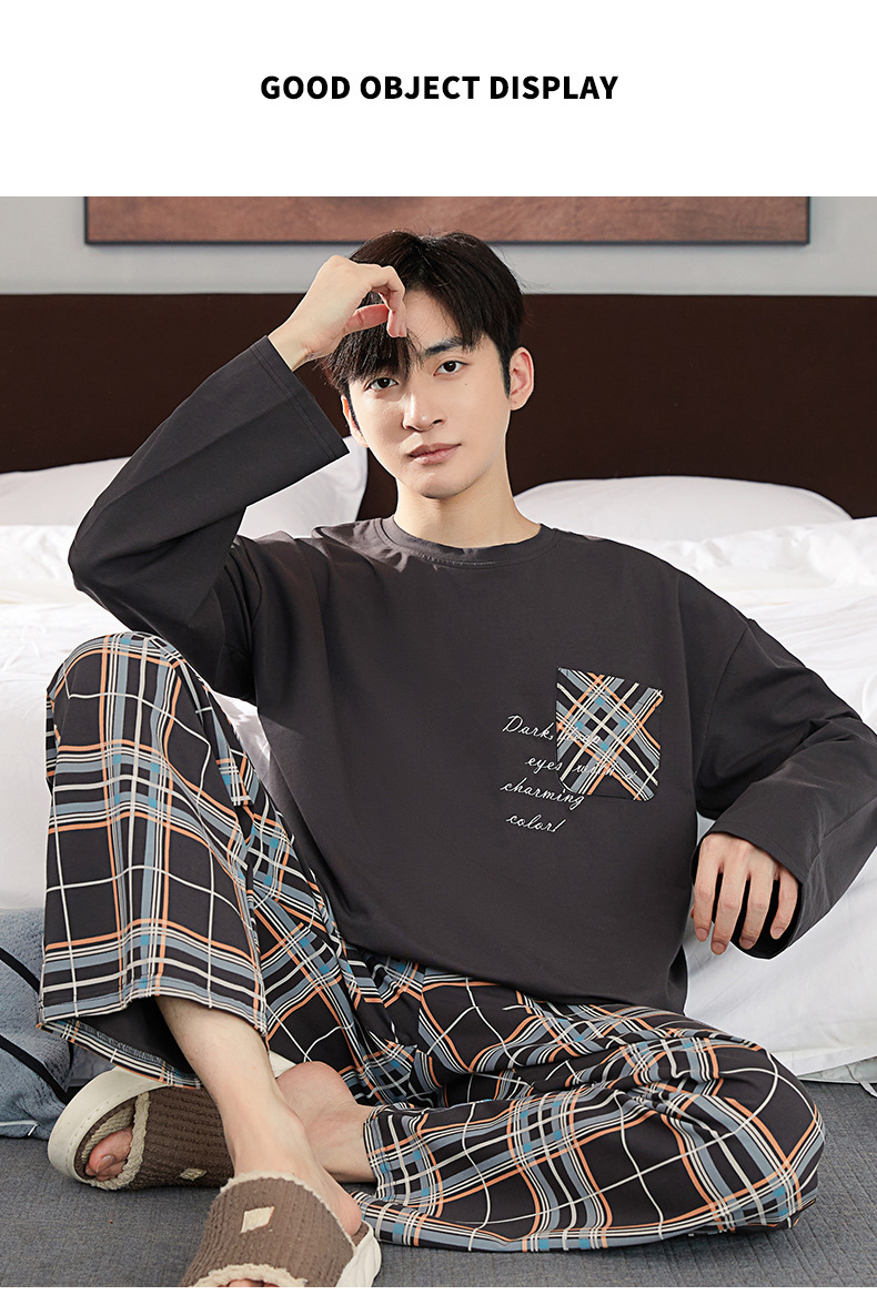 2024 가을과 겨울 남성 홈웨어 세트 긴 소매 바지 라운드 넥 풀오버 코튼 파자마는 캐주얼 입을 수 있습니다.