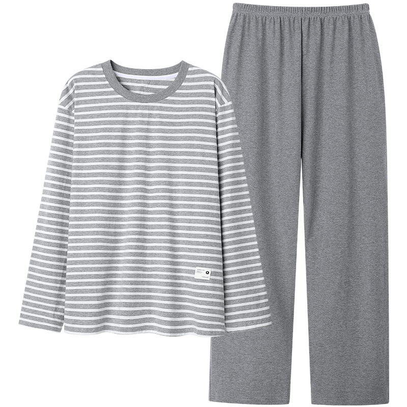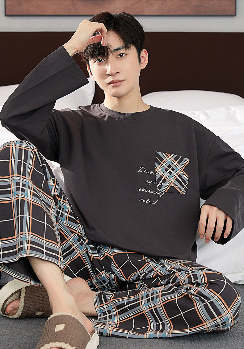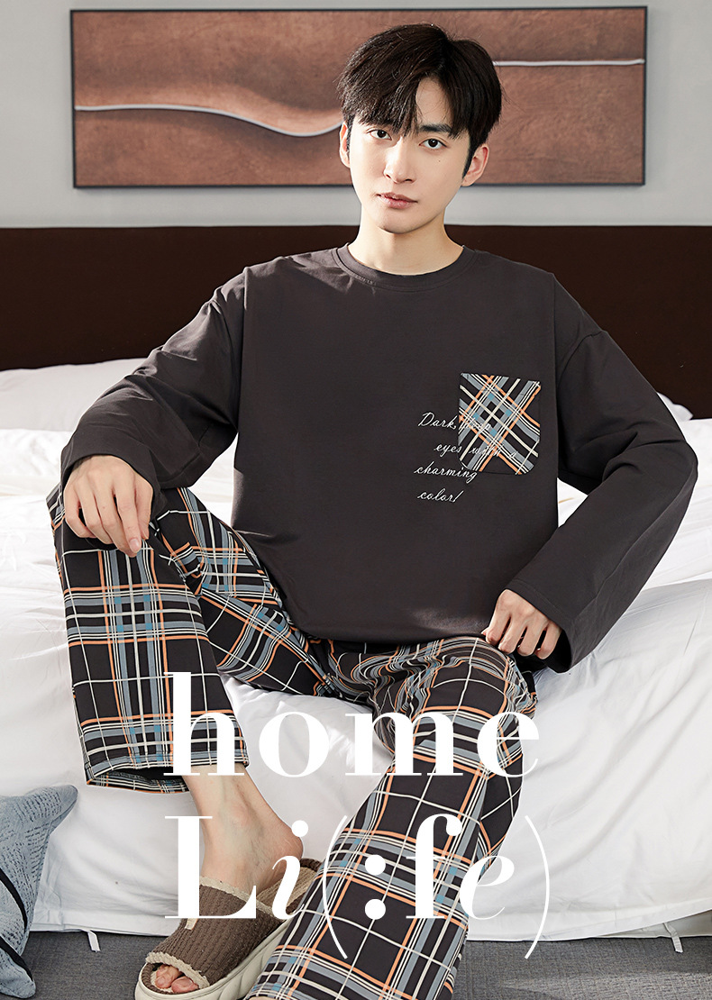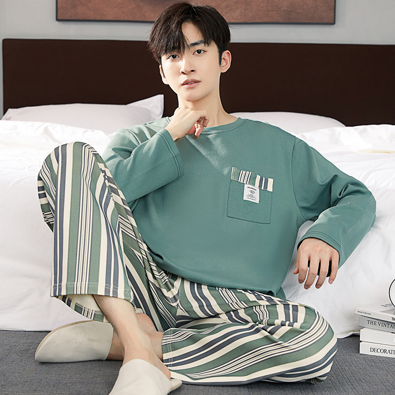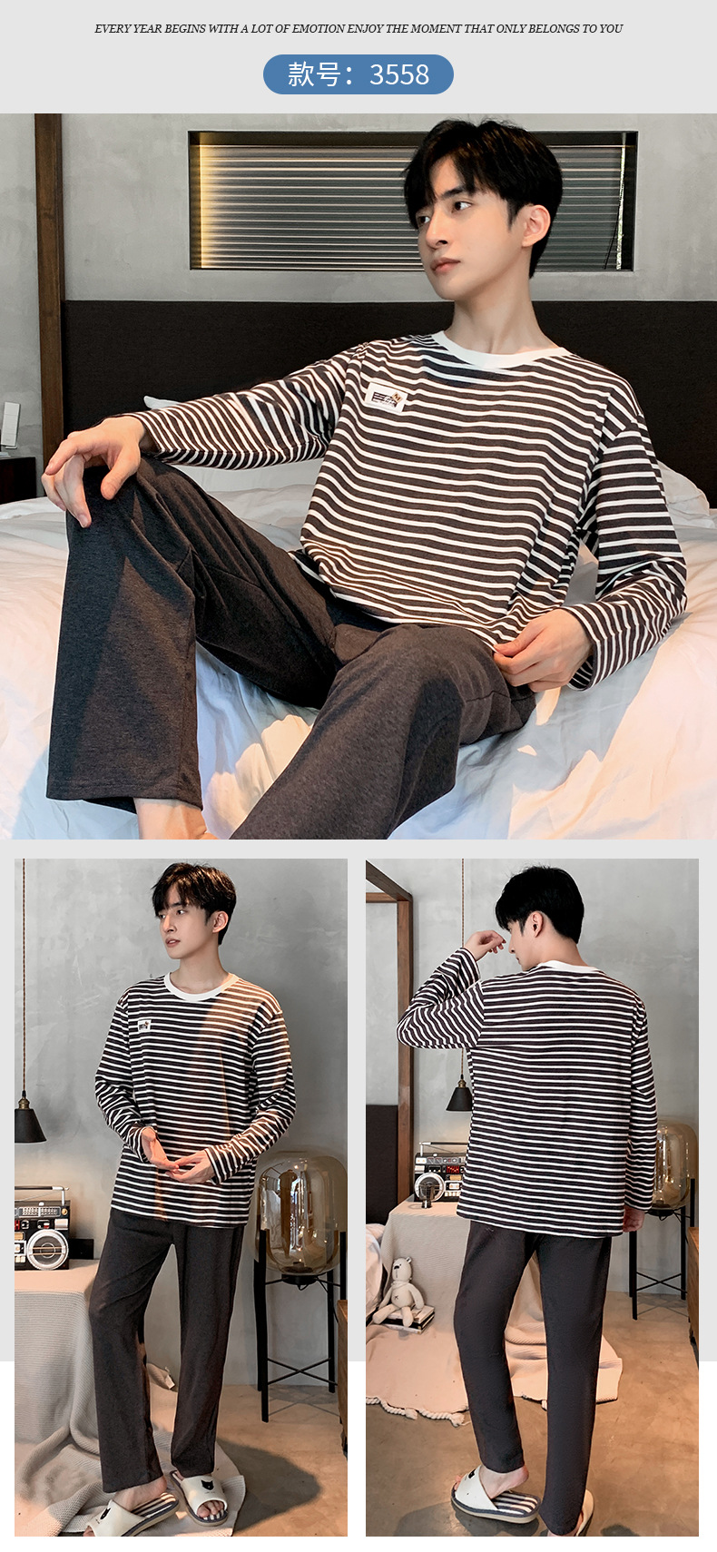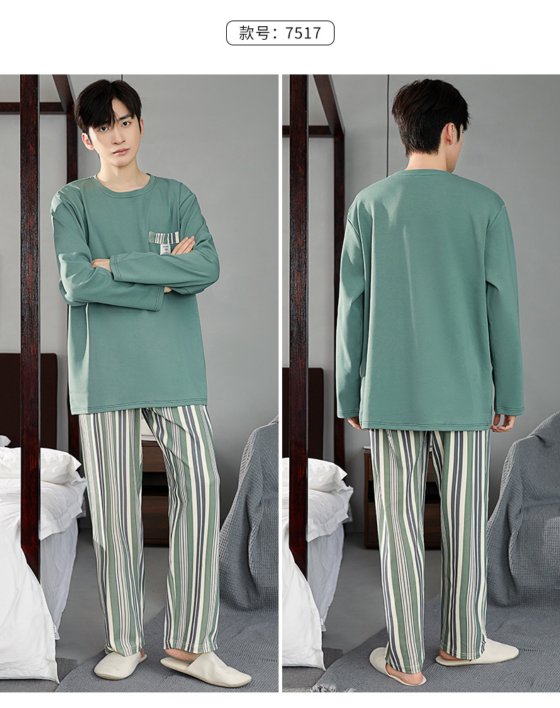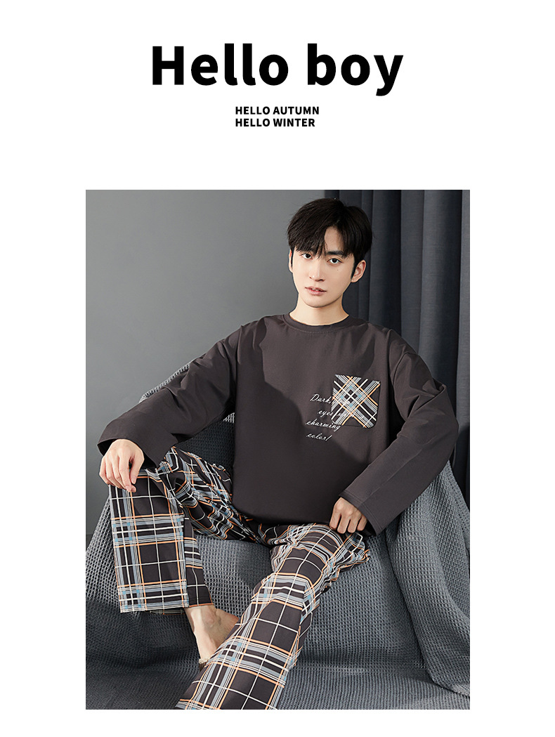 2024 가을과 겨울 남성 홈웨어 세트 긴 소매 바지 라운드 넥 풀오버 코튼 파자마는 캐주얼 입을 수 있습니다.