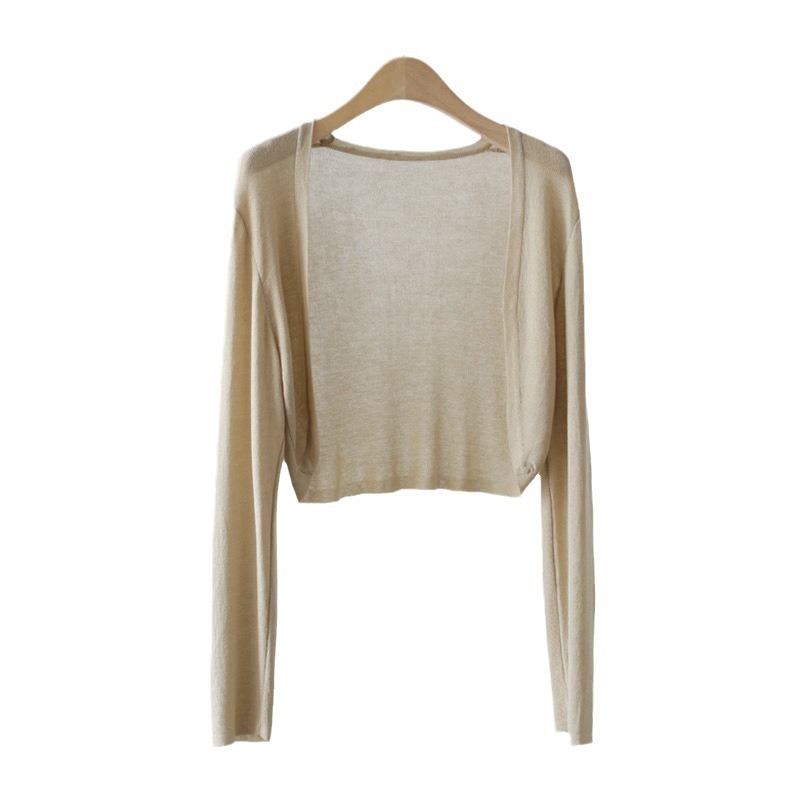 아이스 실크 니트 카디건 재킷 여성 여름 목도리 가을 외부 착용 얇은 Waistle 에어컨 블라우스 쇼트 탑
