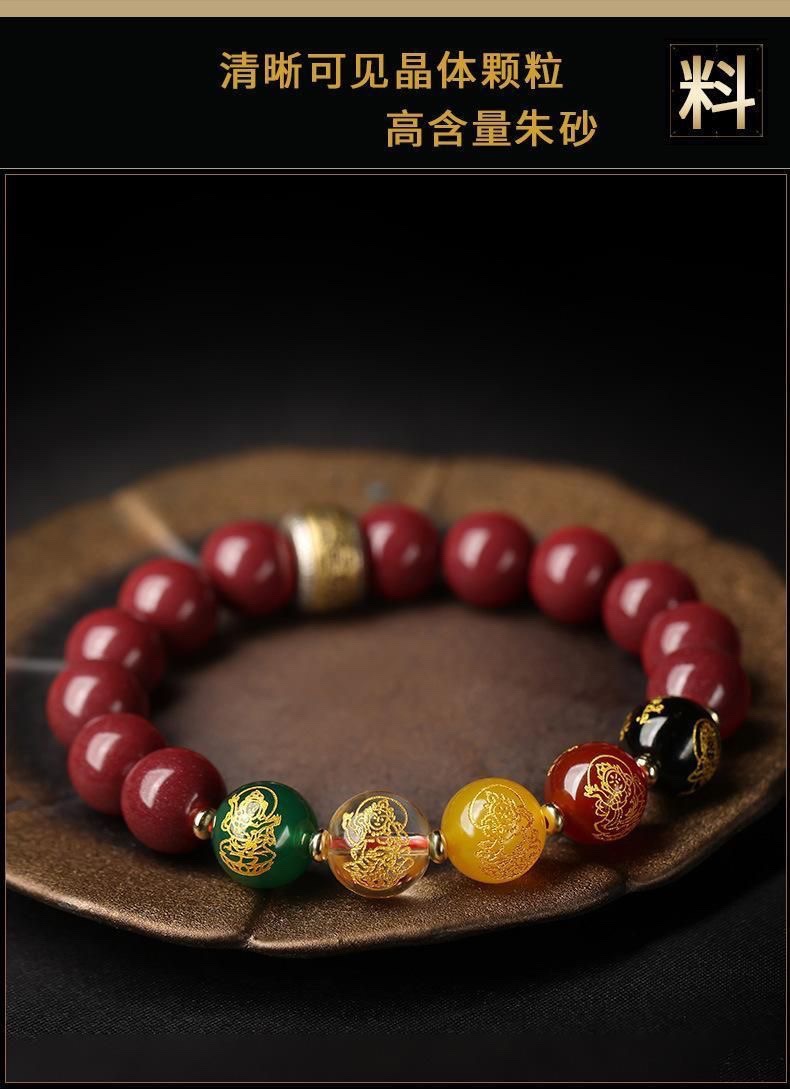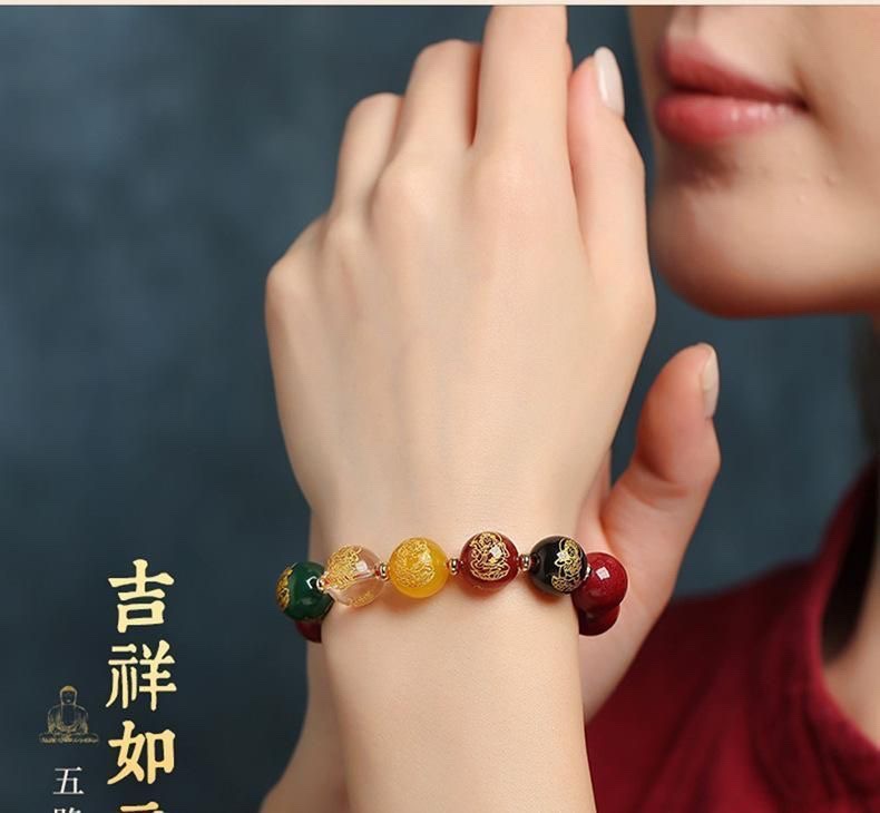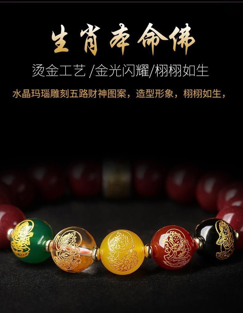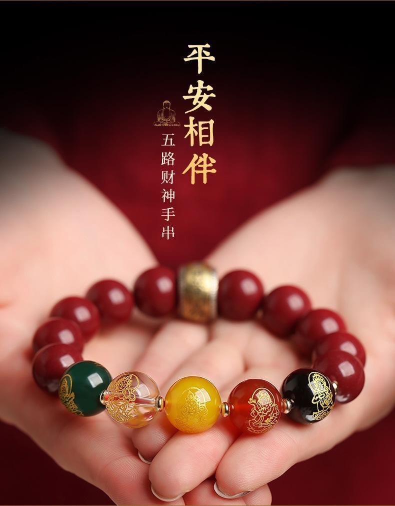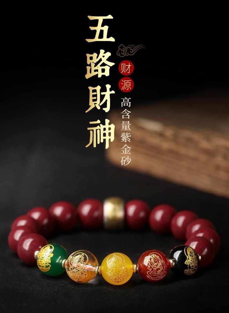 남성용 진사 팔찌, 5방 금상, 원석, 마노, 유리구슬, 천연팔찌, 남녀공용 불상구슬