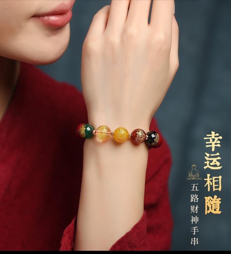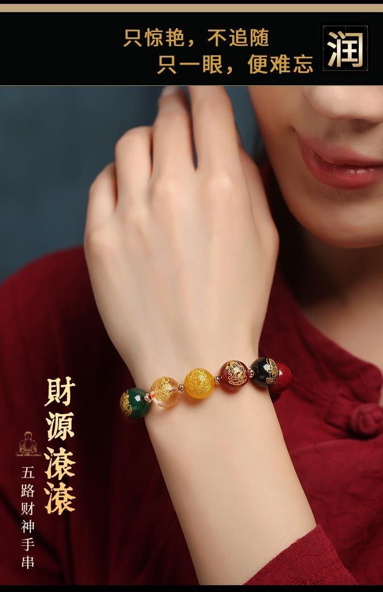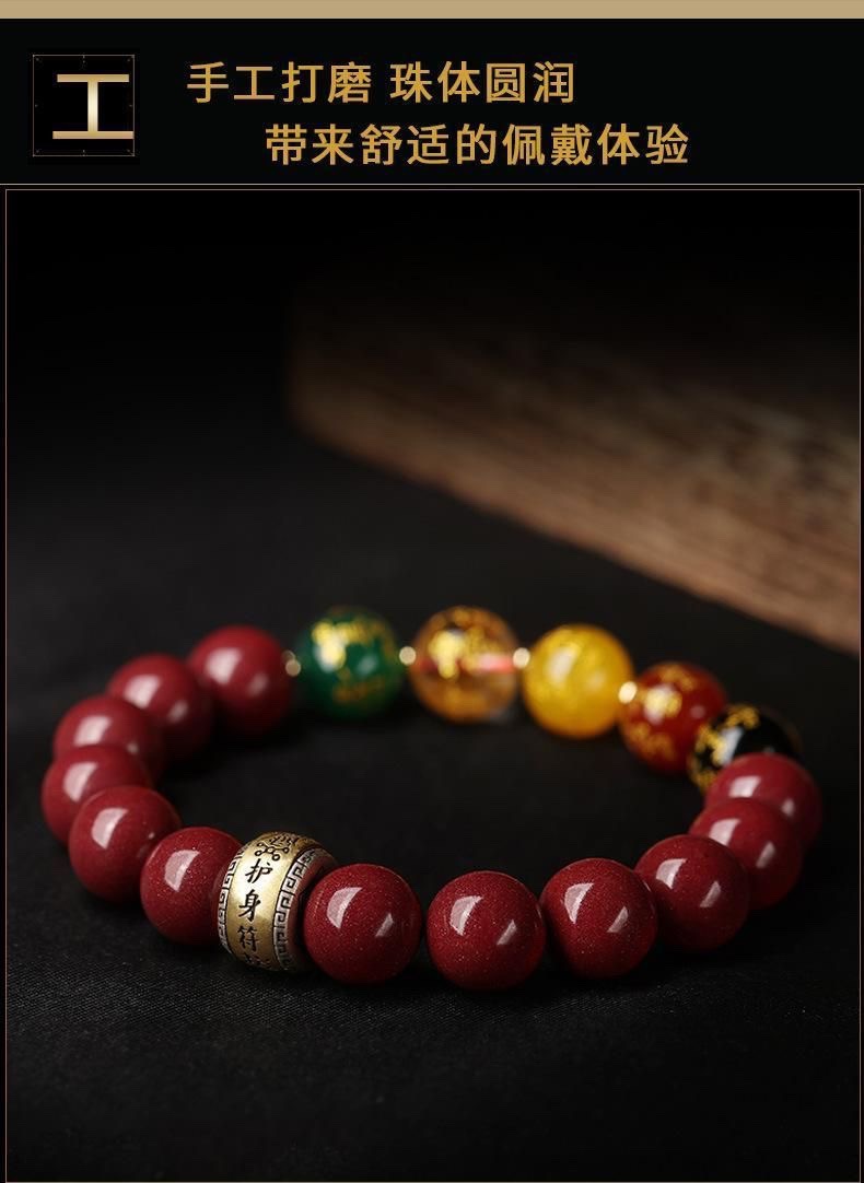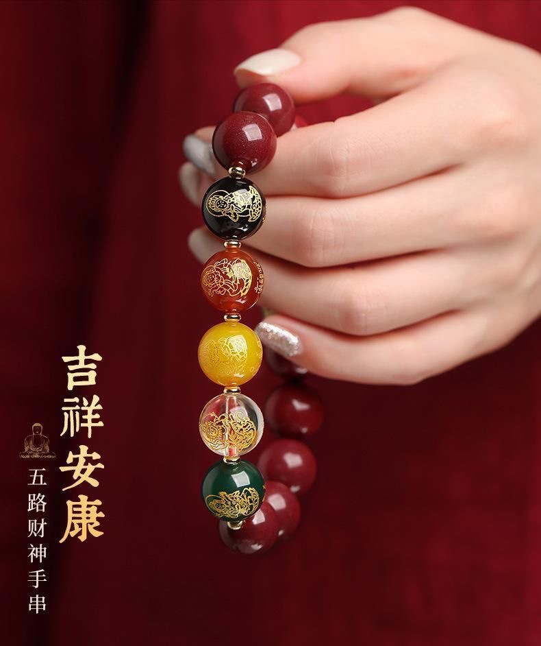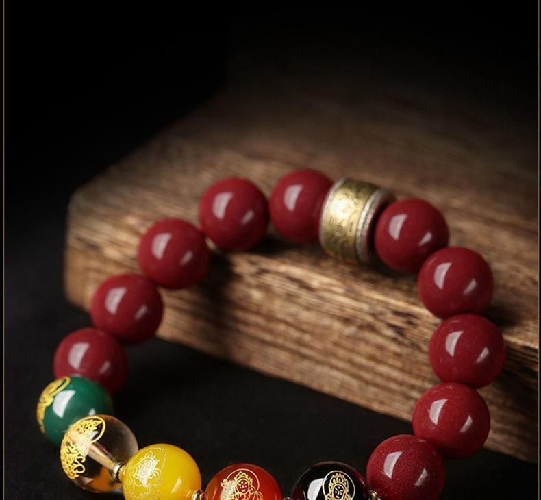 남성용 진사 팔찌, 5방 금상, 원석, 마노, 유리구슬, 천연팔찌, 남녀공용 불상구슬
