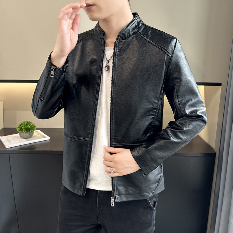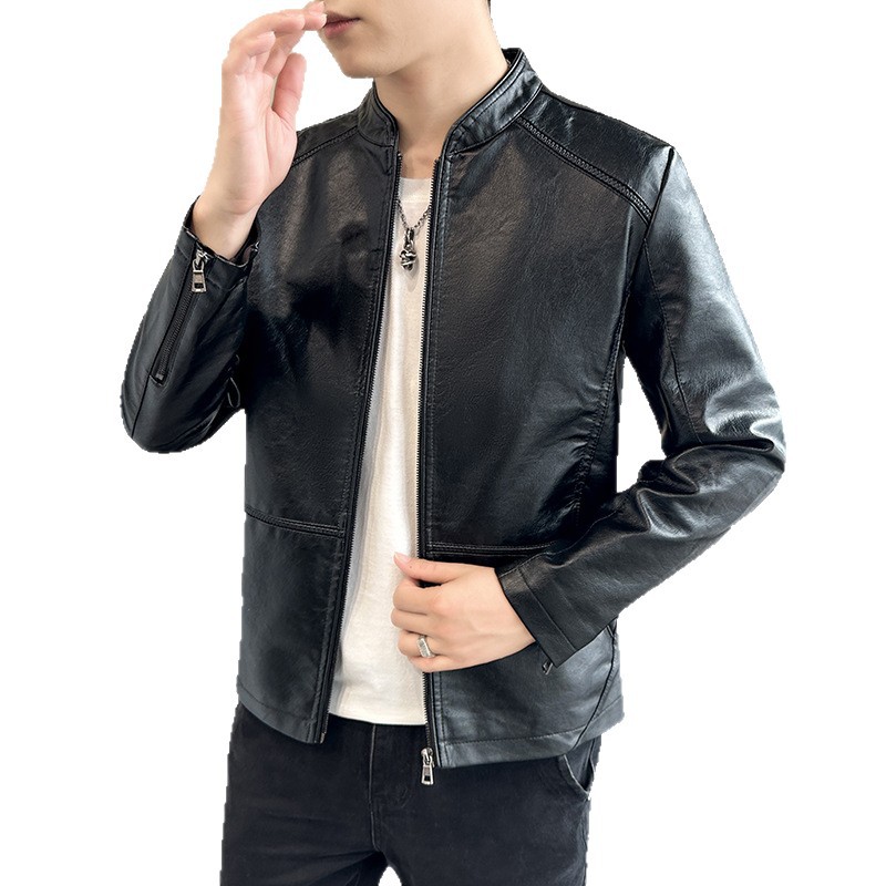 국경 간 협력 직배송 트렌디한 남성용 한국 스타일 슬림핏 캐주얼 스탠드 칼라 가죽 자켓 남성 1688