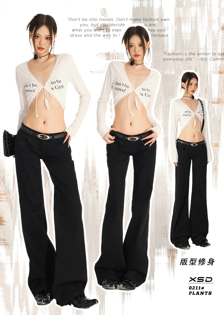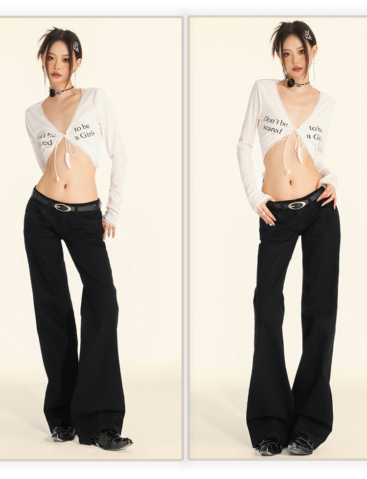 가을 2024 새로운 스파이스 걸스 낮은 허리 넓은 다리 스파클 바지 여성용 아메리칸 청바지 슬림 룩 올매치 플레어 팬츠 트렌디