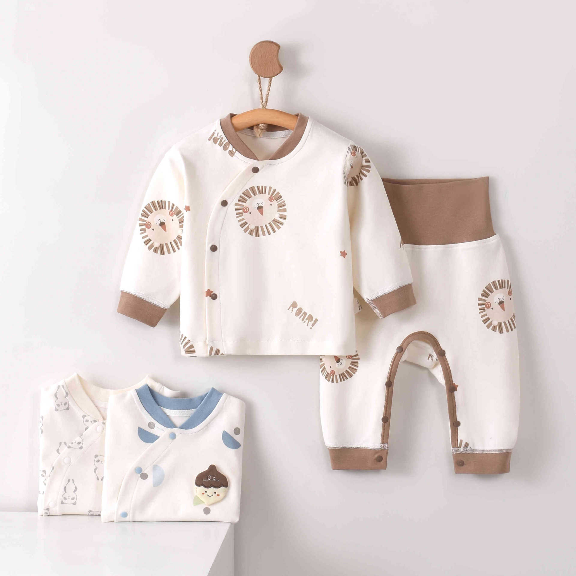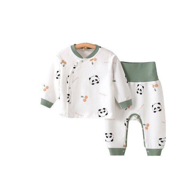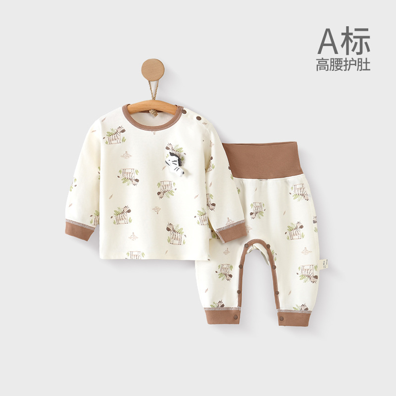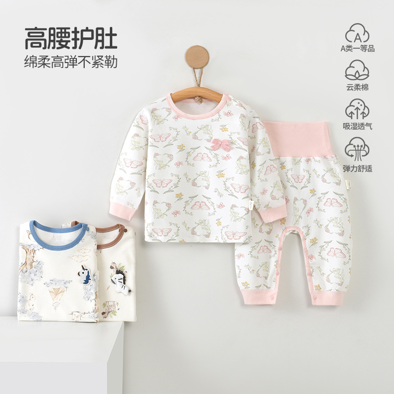 아기옷 순면 하이웨이스트 배 보호 아기 가을옷 가을바지 아기 세트 아기 사계절 홈웨어 잠옷