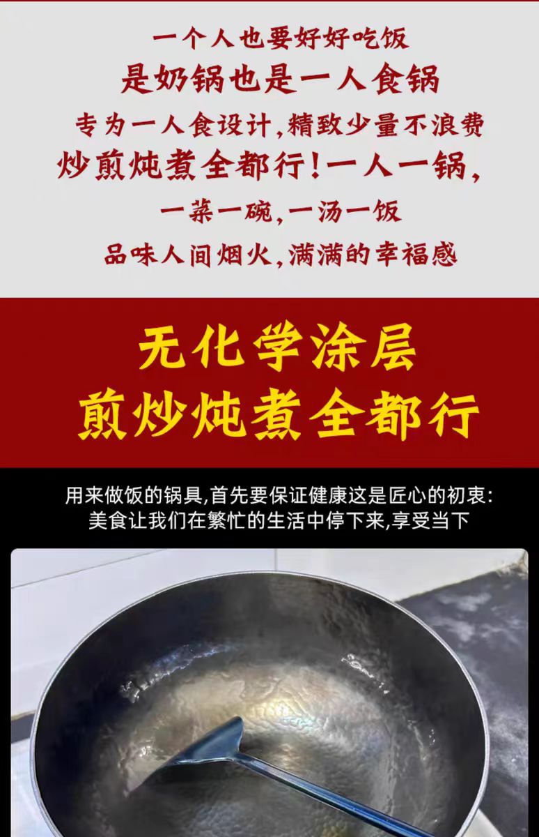 Zhangqiu 작은 우유 냄비 손으로 단조 미니 철 냄비 구식 비 코팅 가정용 스틱 냄비 튀김 팬 식품 보충 철 냄비