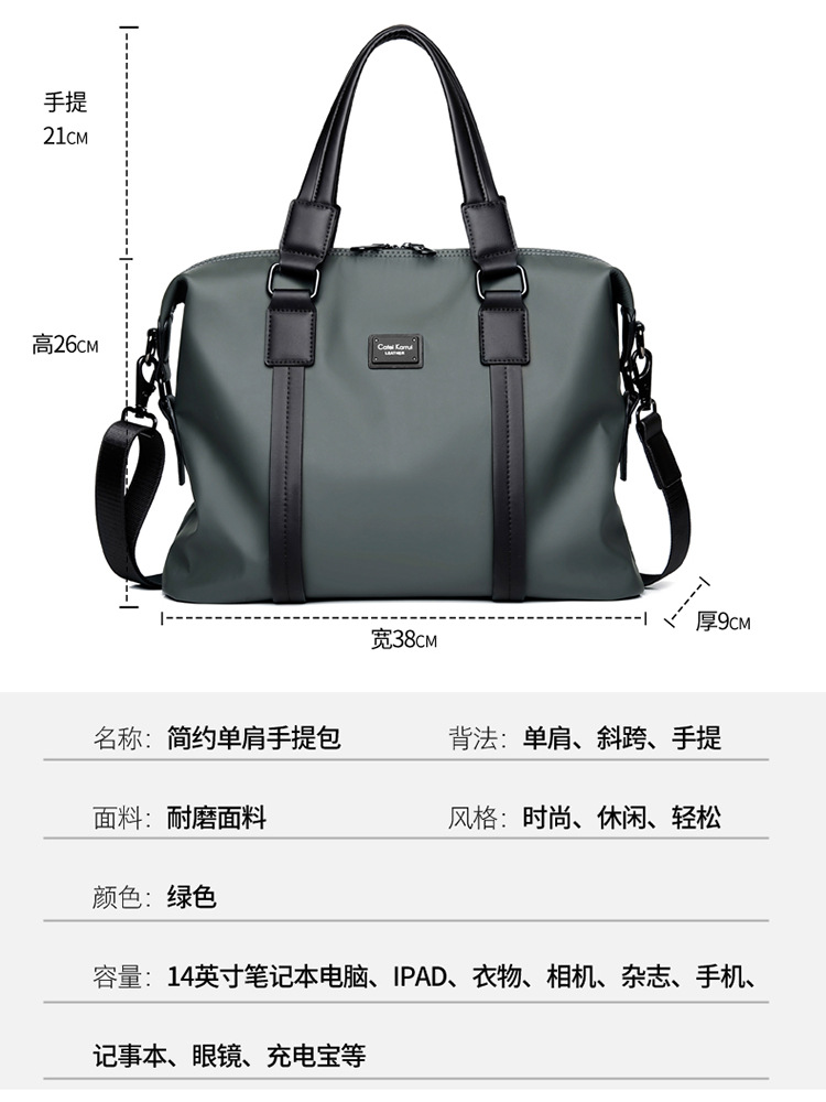 CateiKarrui 남성 가방 대각선 핸드백 여행 비즈니스 레저 통근 컴퓨터 서류 가방 머리카락