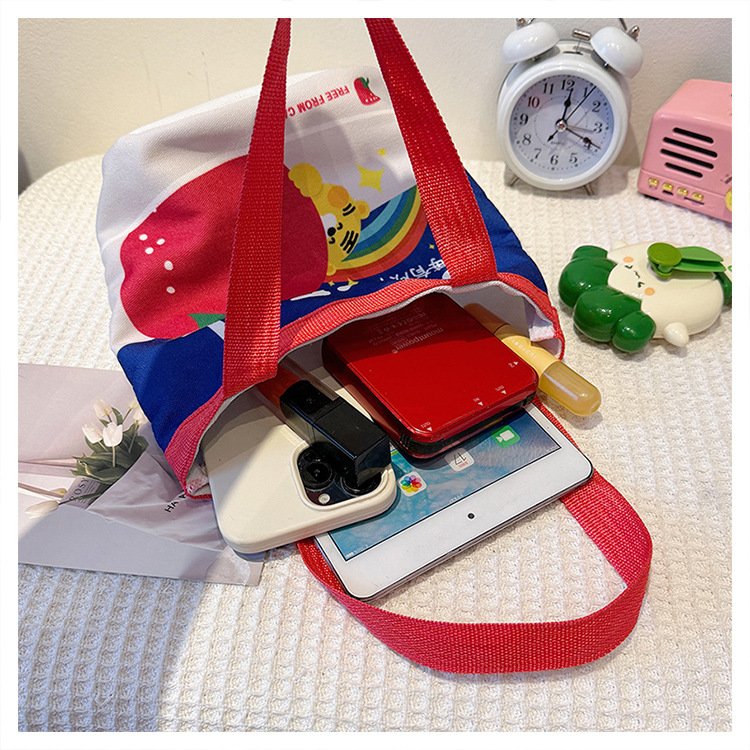 휴대용 새로운 일러스트 버킷 캔버스 가방 나가는 휴대용 인쇄 핸드백 귀여운 엄마 점심 가방