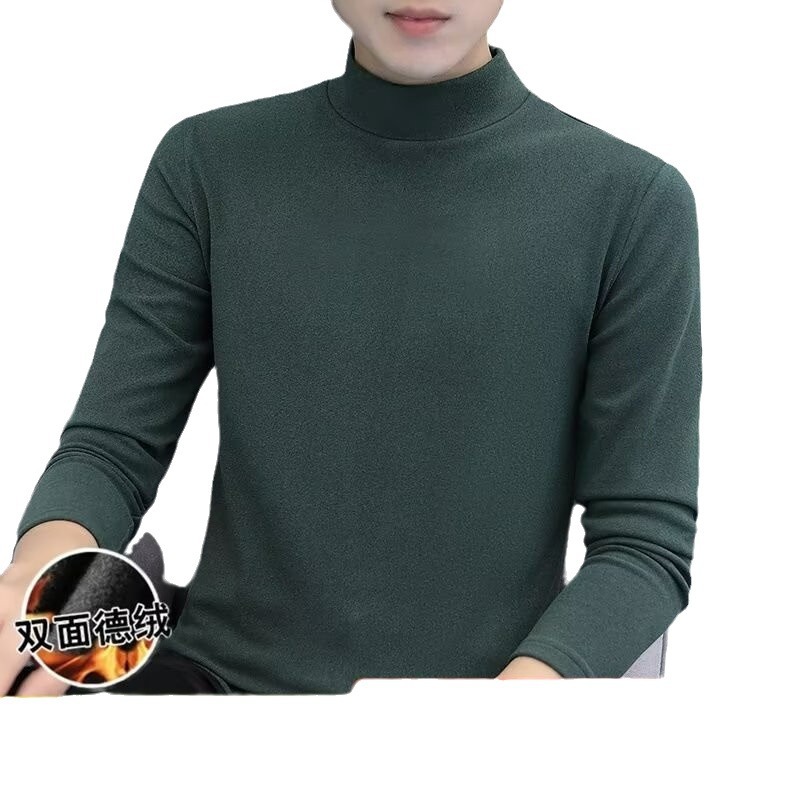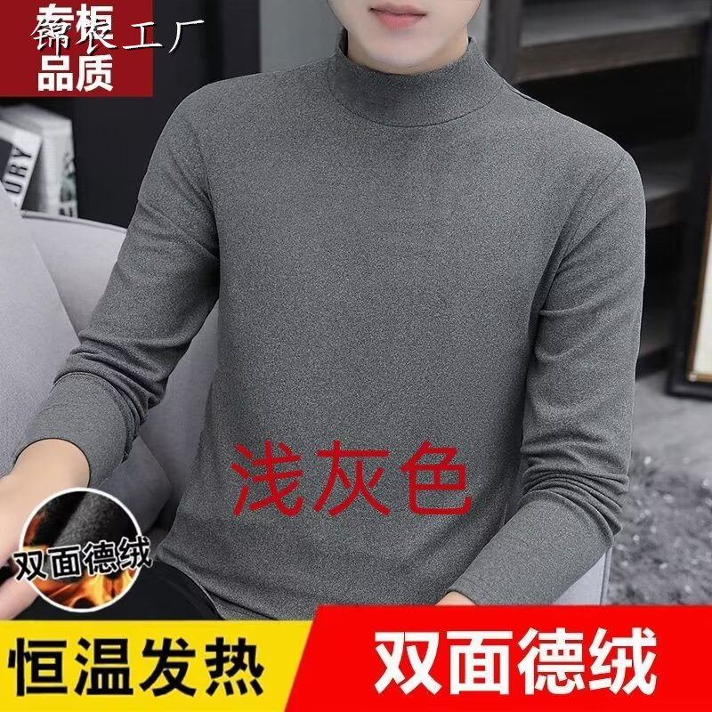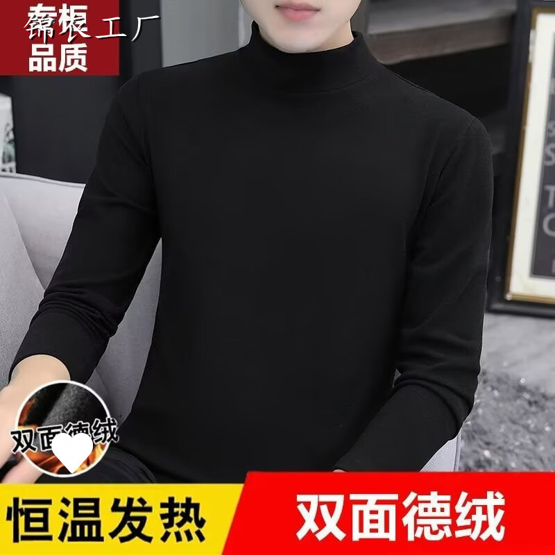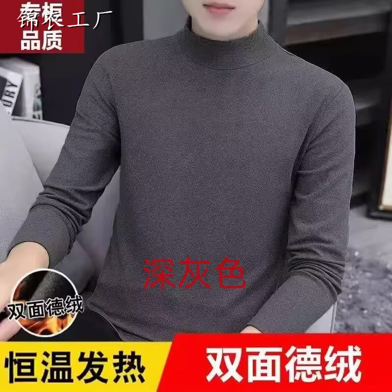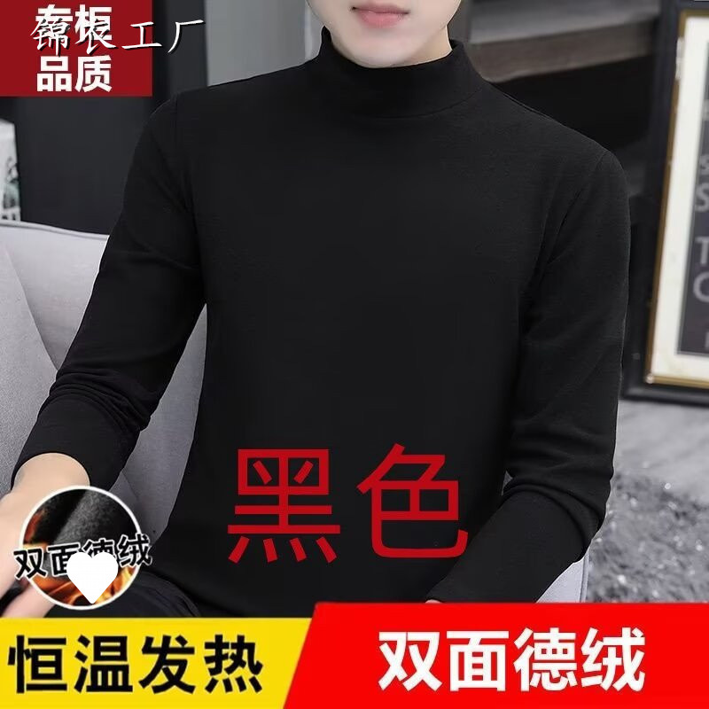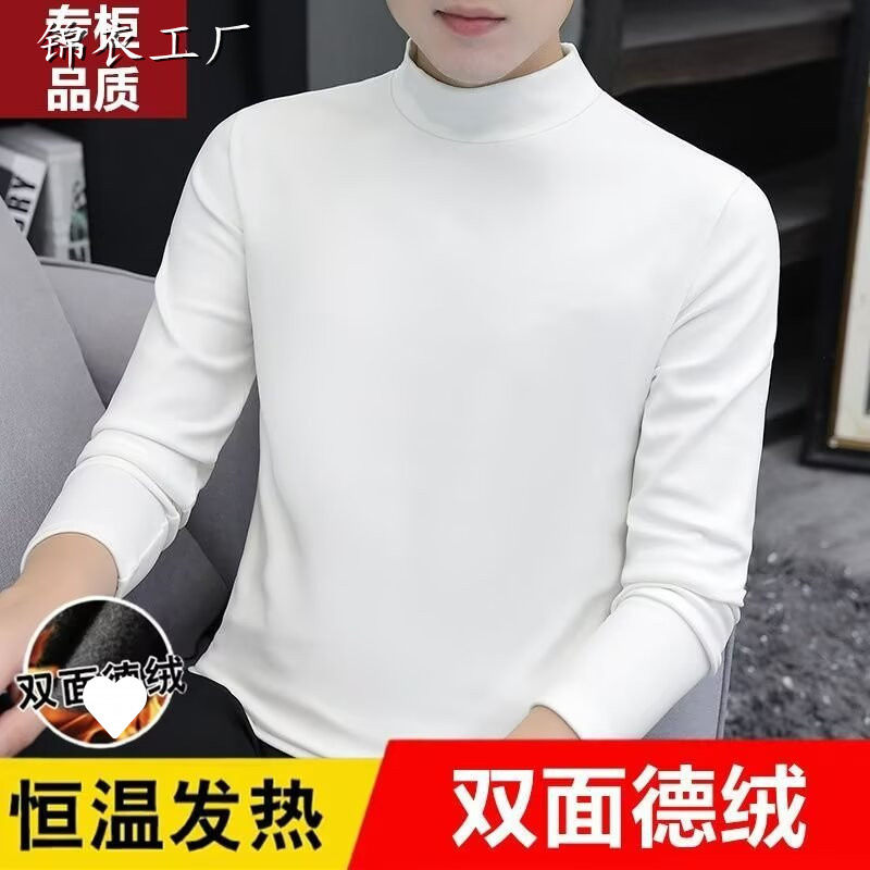 가을과 겨울 남성 반 높은 칼라 일정한 온도 따뜻한 양면 벨벳베이스 셔츠 기모 긴 소매 티셔츠 가을 의류