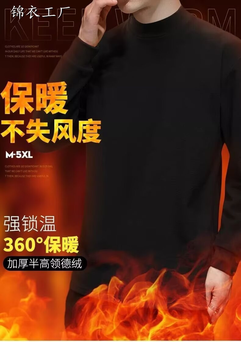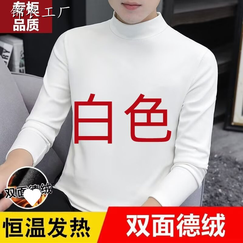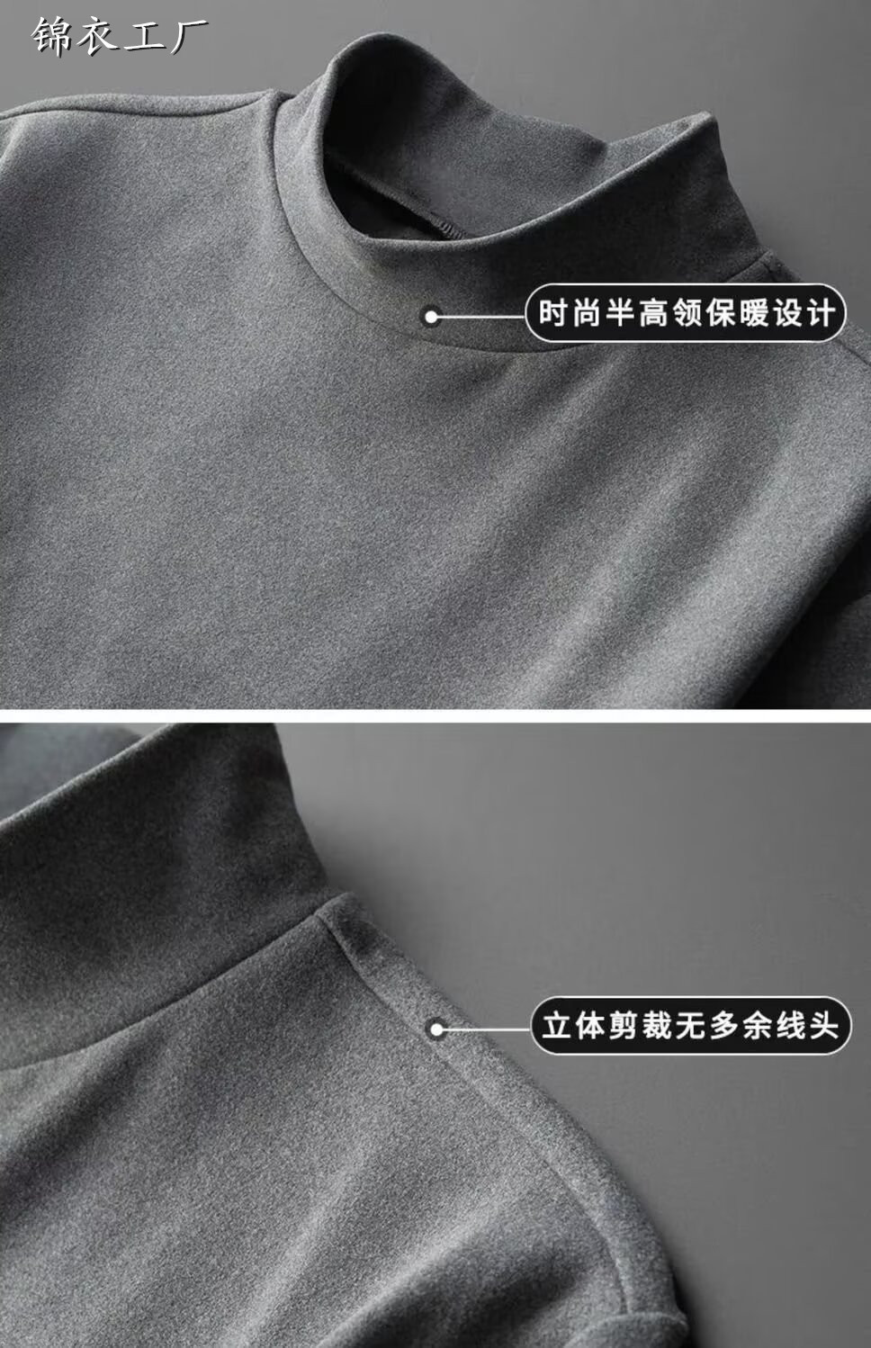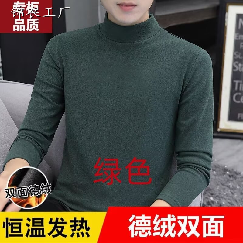 가을과 겨울 남성 반 높은 칼라 일정한 온도 따뜻한 양면 벨벳베이스 셔츠 기모 긴 소매 티셔츠 가을 의류