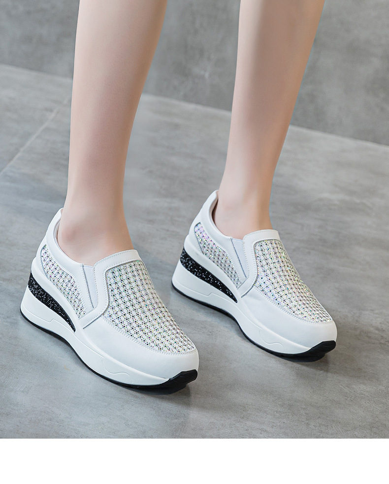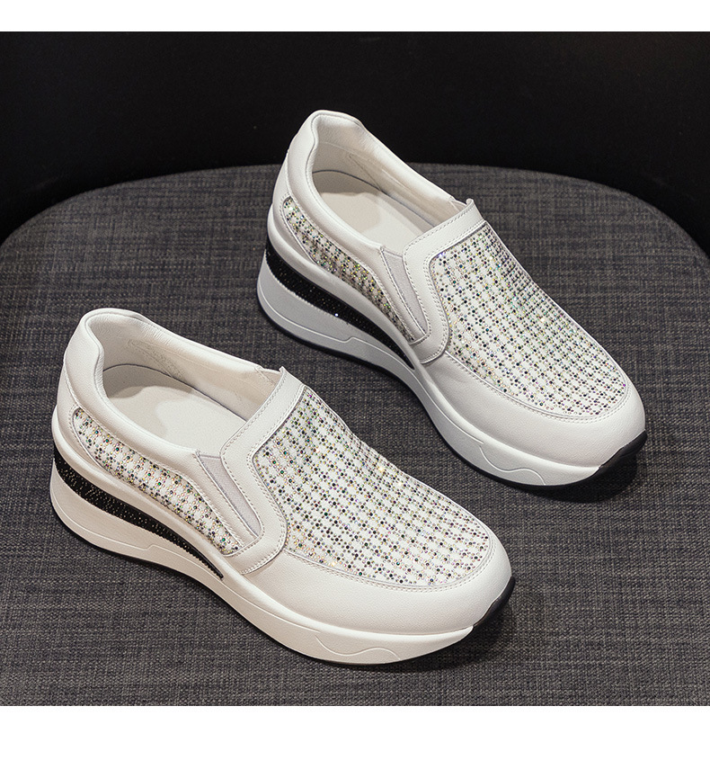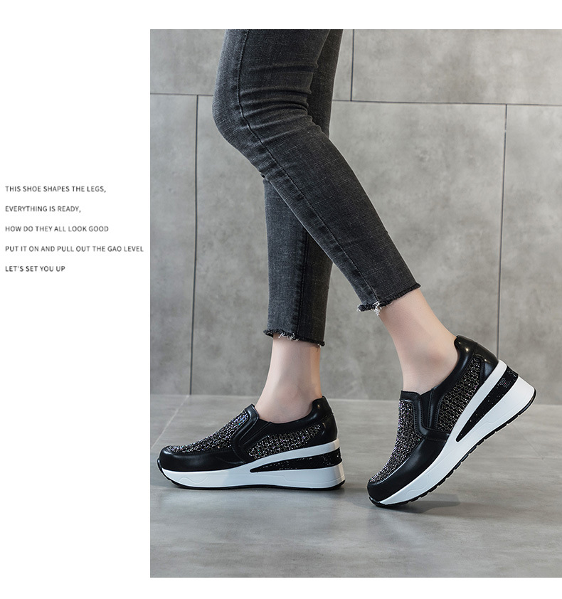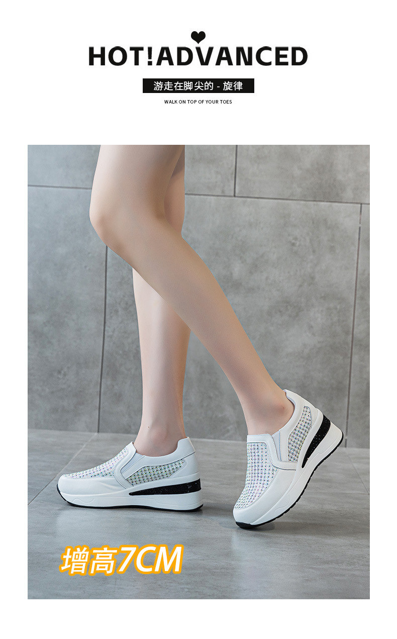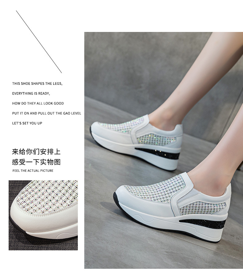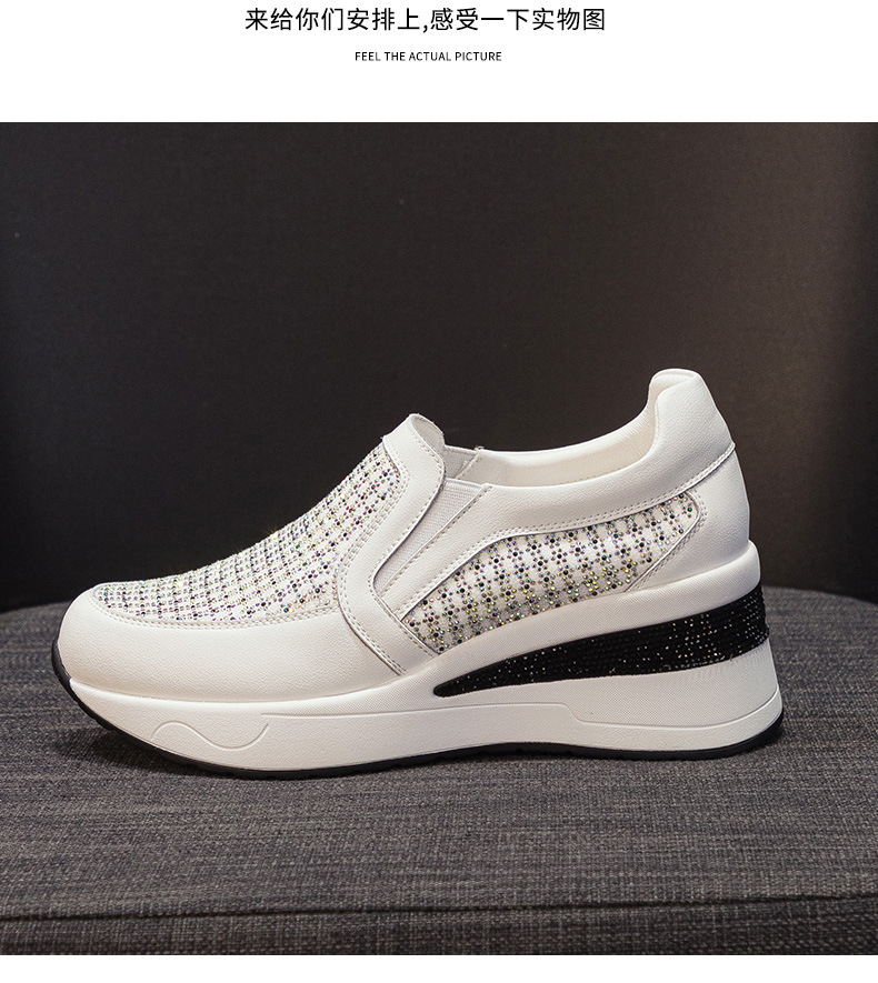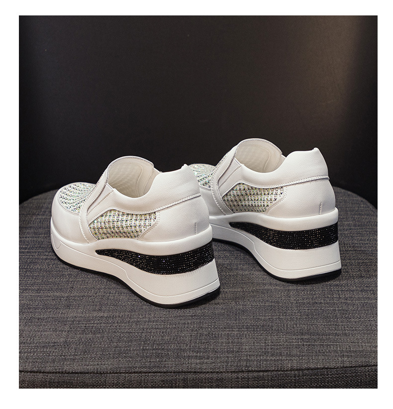 7cm 라인스톤 웨지 캐주얼 신발 여성의 새로운 로퍼 플랫폼 캐주얼 싱글 레이어 신발 경량 여행 신발 화이트 신발