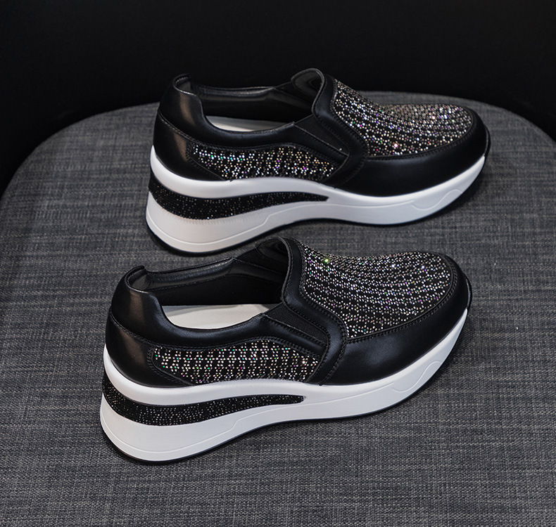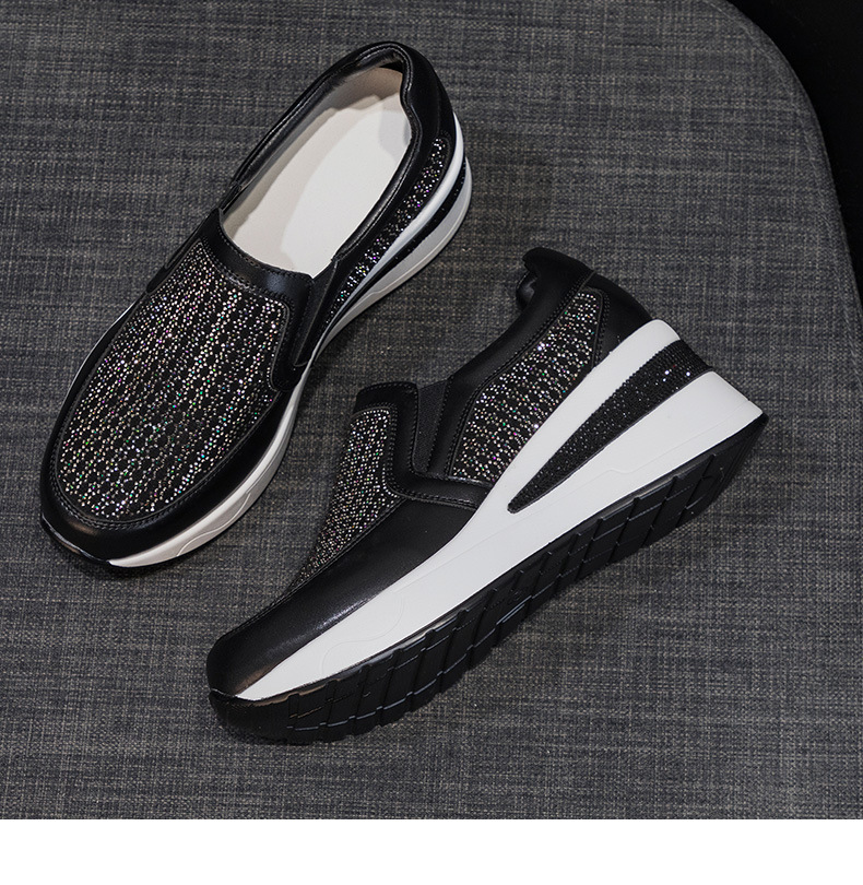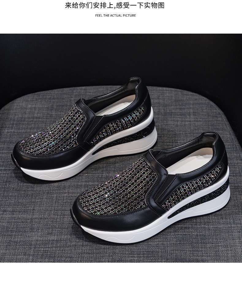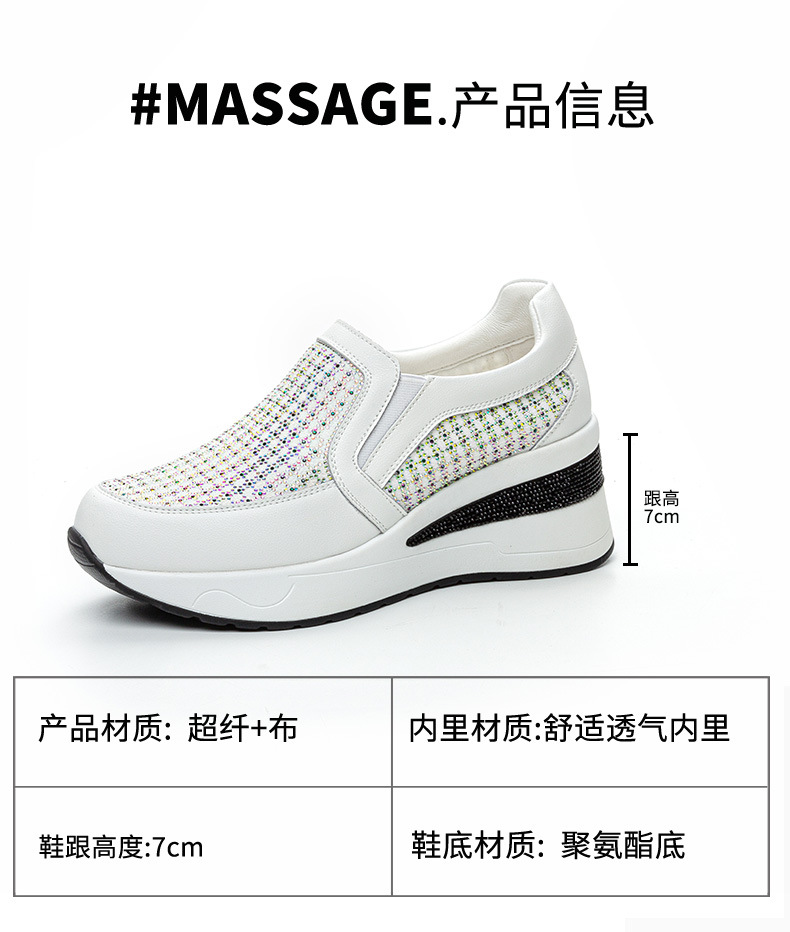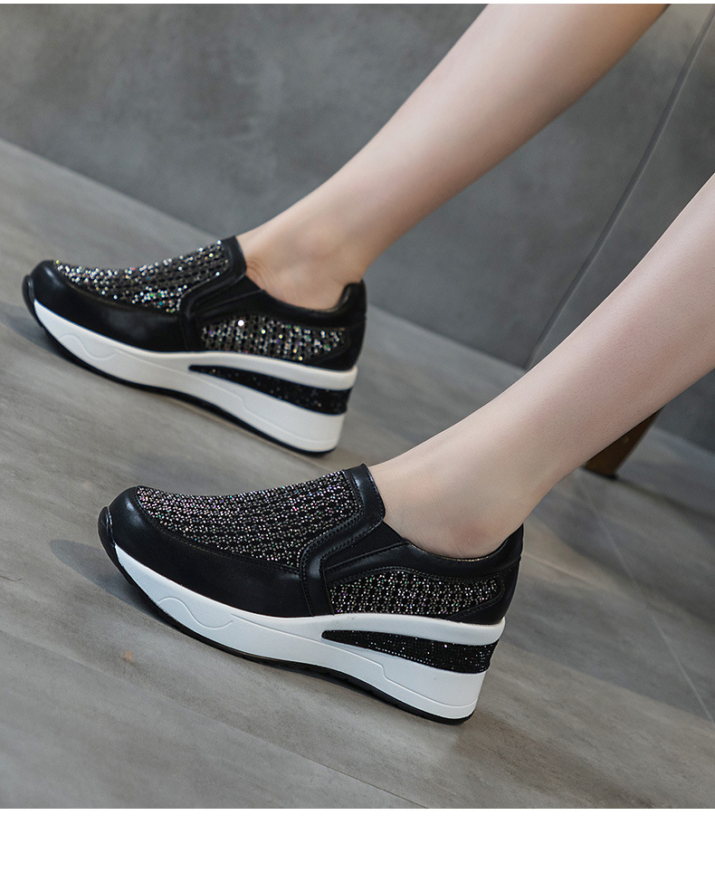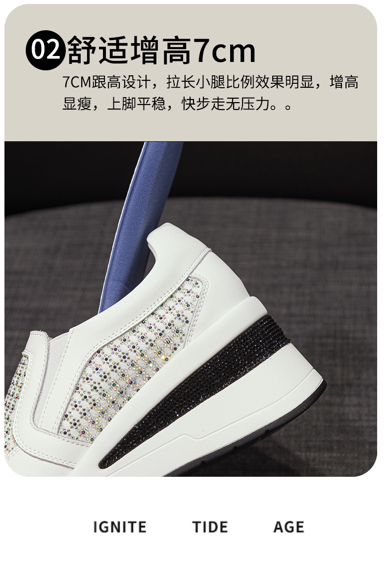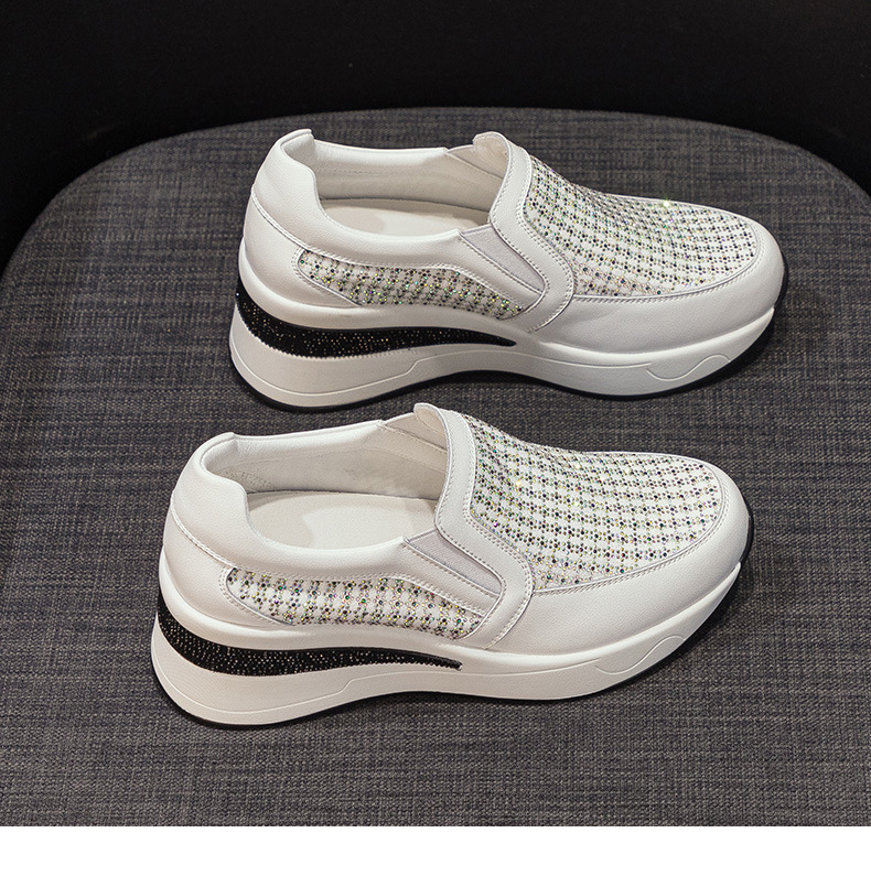 7cm 라인스톤 웨지 캐주얼 신발 여성의 새로운 로퍼 플랫폼 캐주얼 싱글 레이어 신발 경량 여행 신발 화이트 신발