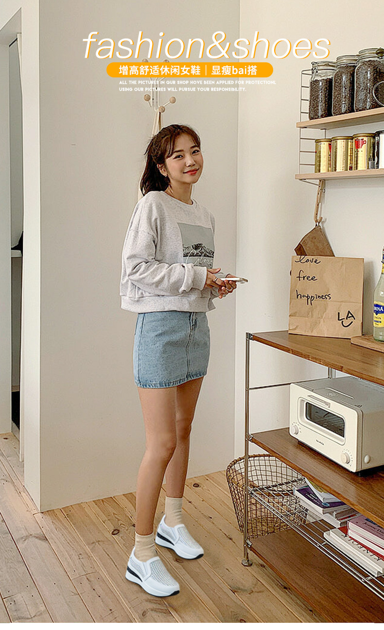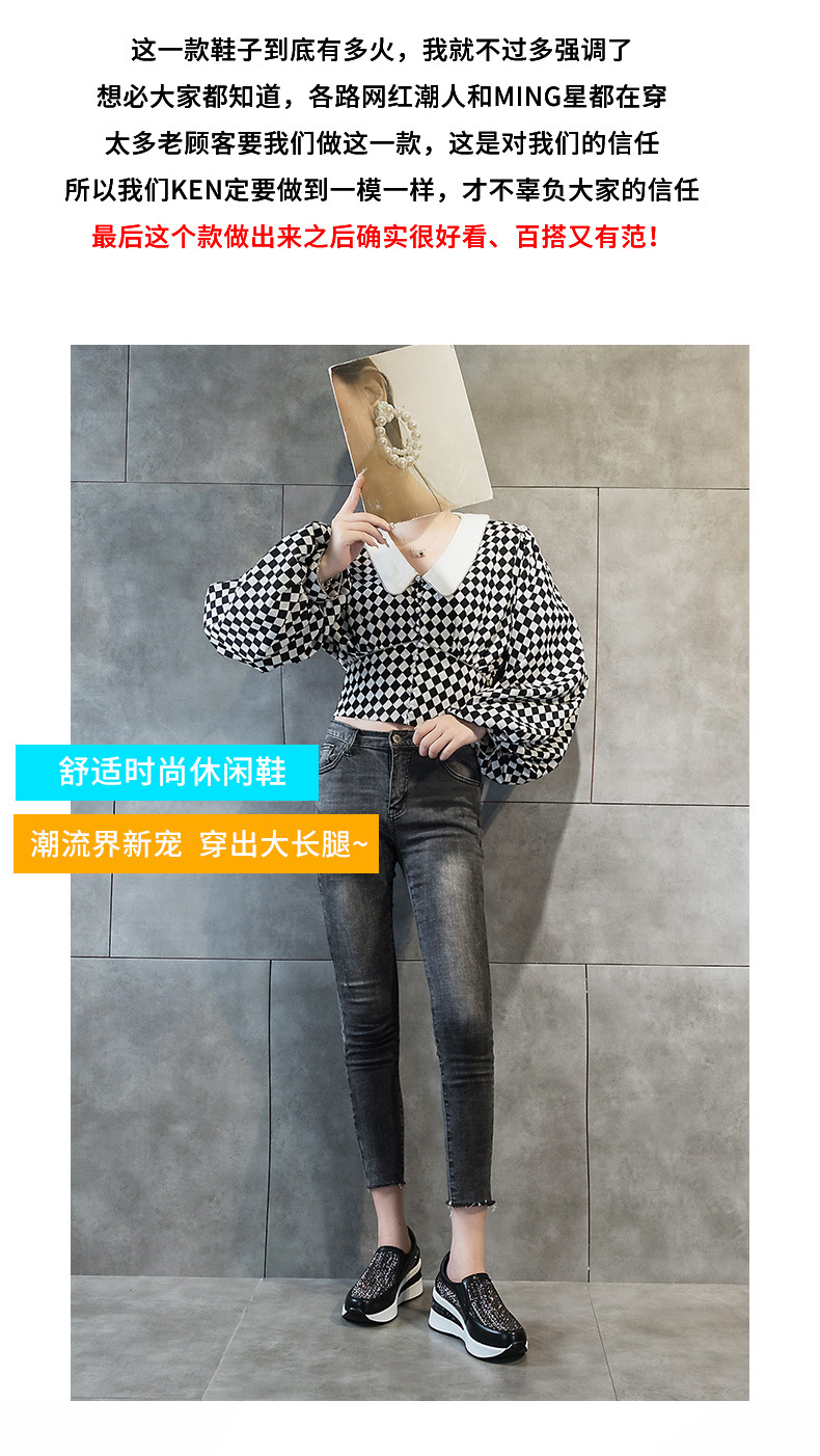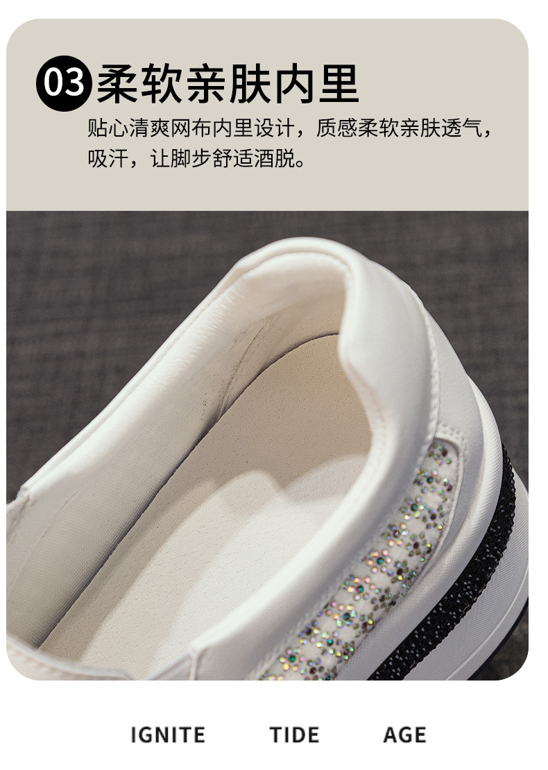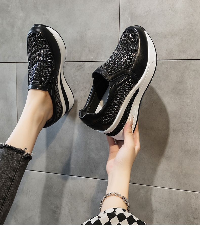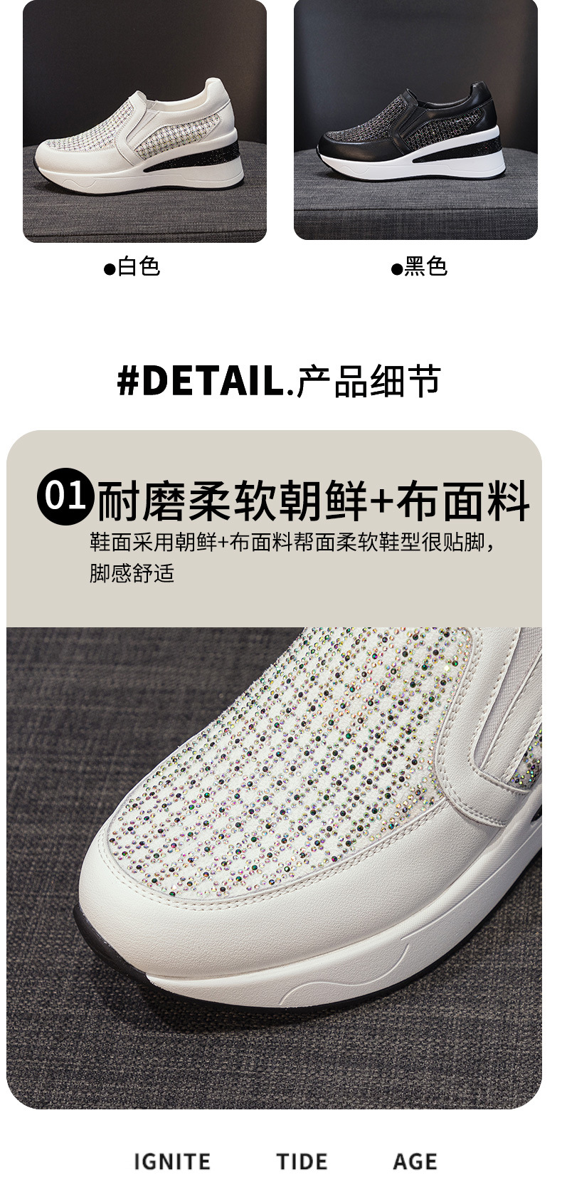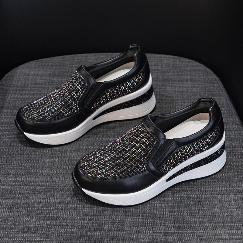 7cm 라인스톤 웨지 캐주얼 신발 여성의 새로운 로퍼 플랫폼 캐주얼 싱글 레이어 신발 경량 여행 신발 화이트 신발