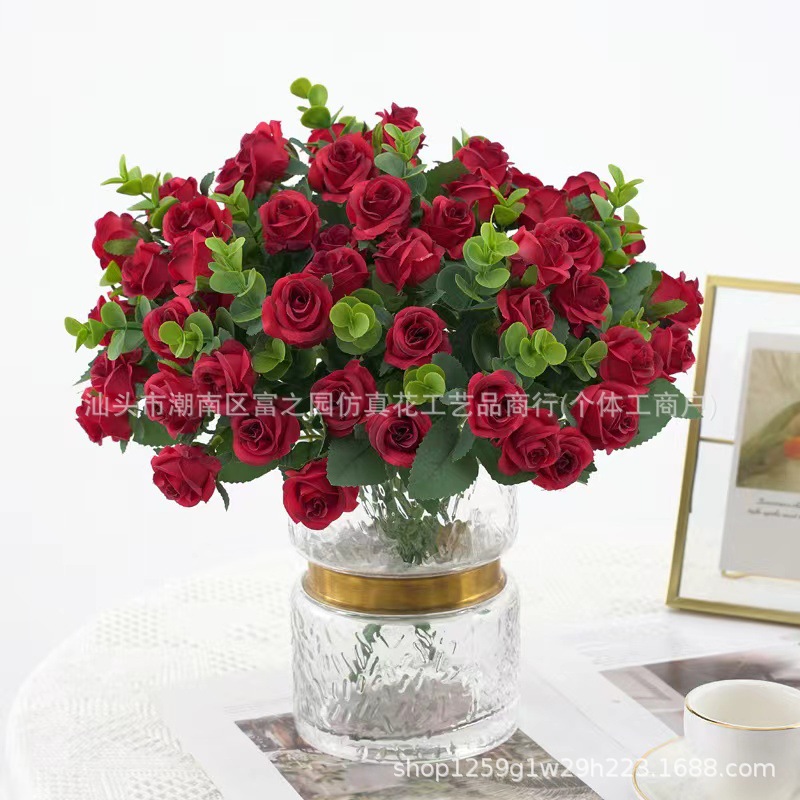 북유럽 빛 럭셔리 높은 인공 꽃 장미 꽃 장식 거실 가짜 꽃 말린 꽃 식사 테이블 하이 엔드 꽃다발 꽃병 장식