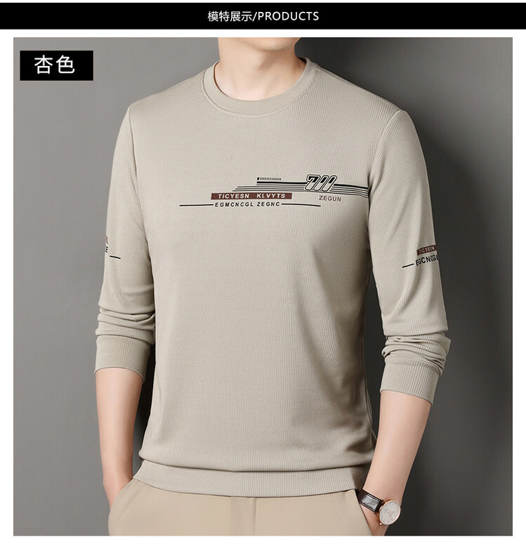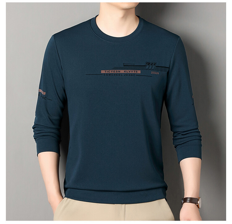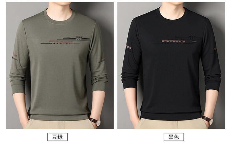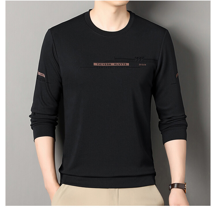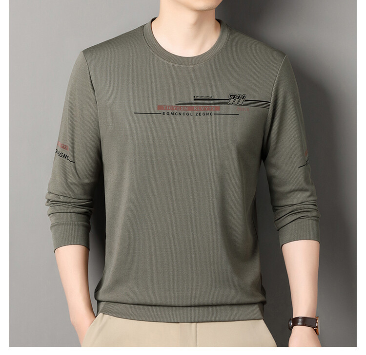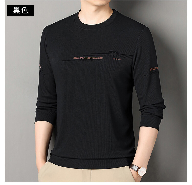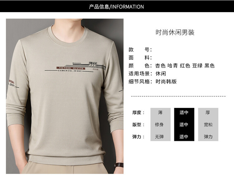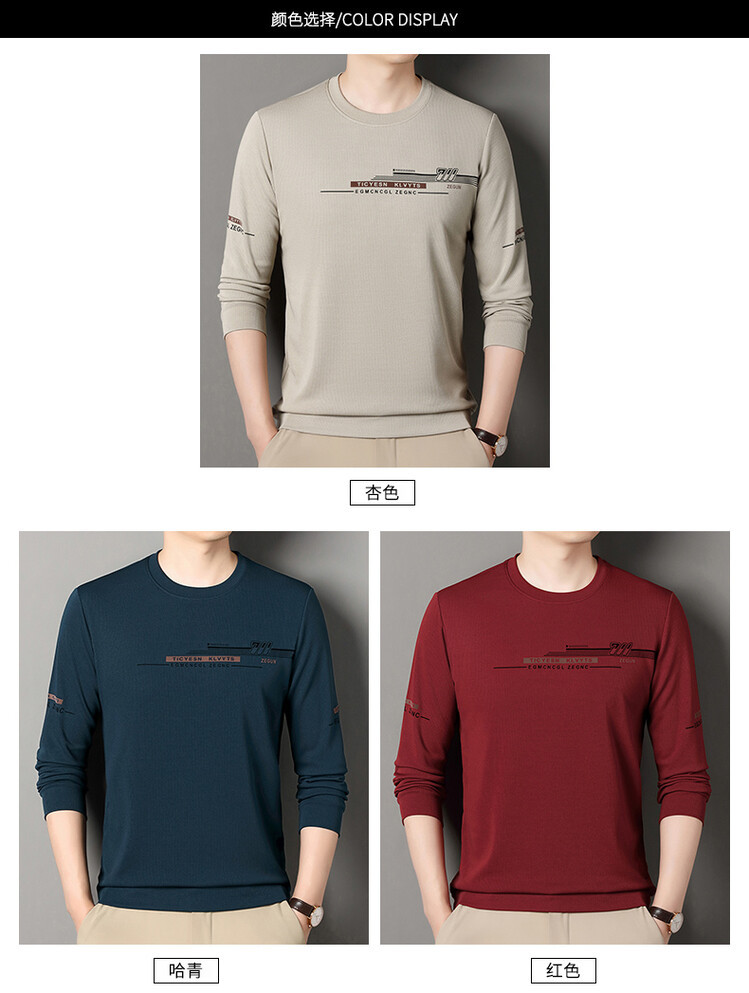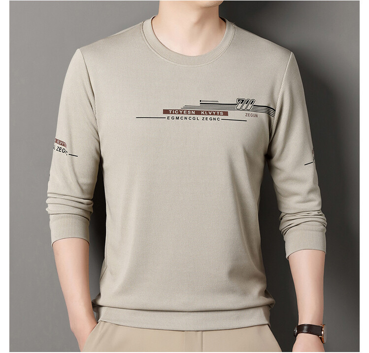 하이 퀄리티 면 봄과 가을 면 남성용 긴팔 티셔츠 라운드 넥 스웨터 남성용 인쇄 얇은 캐주얼 가을베이스 셔츠