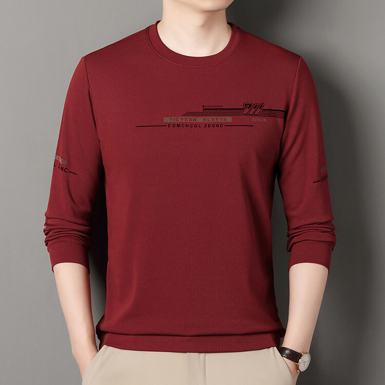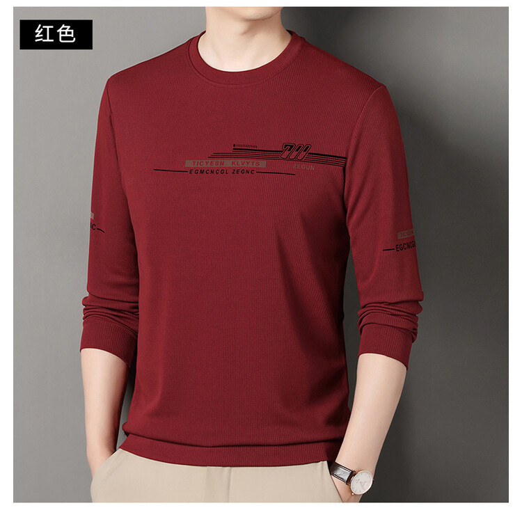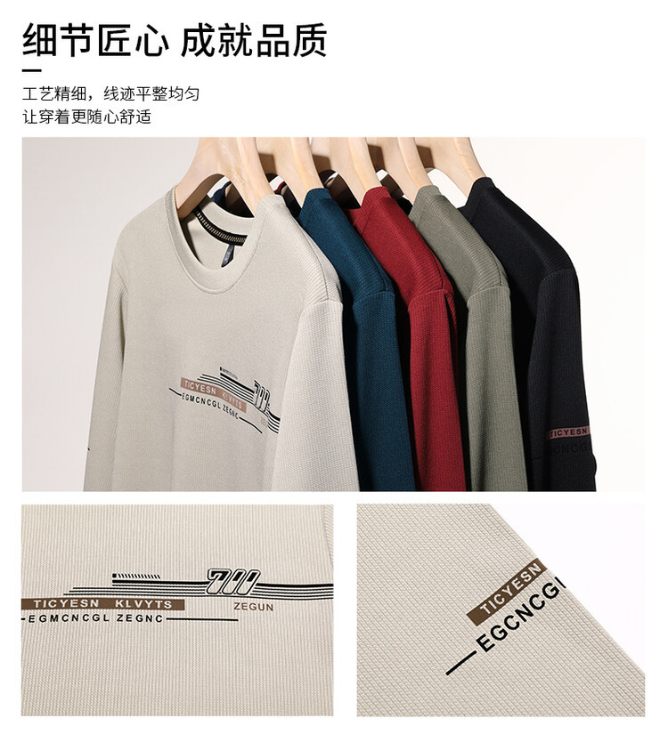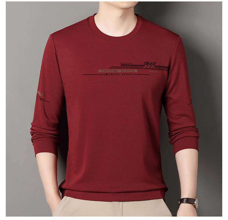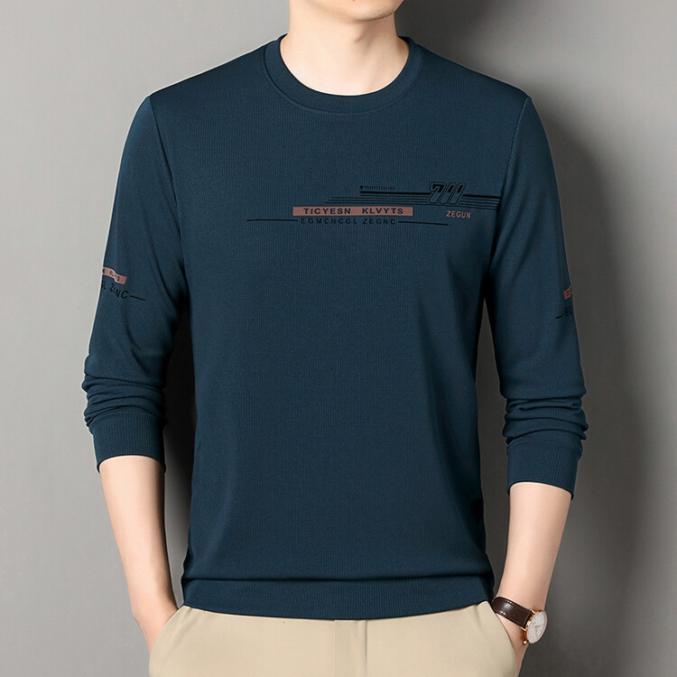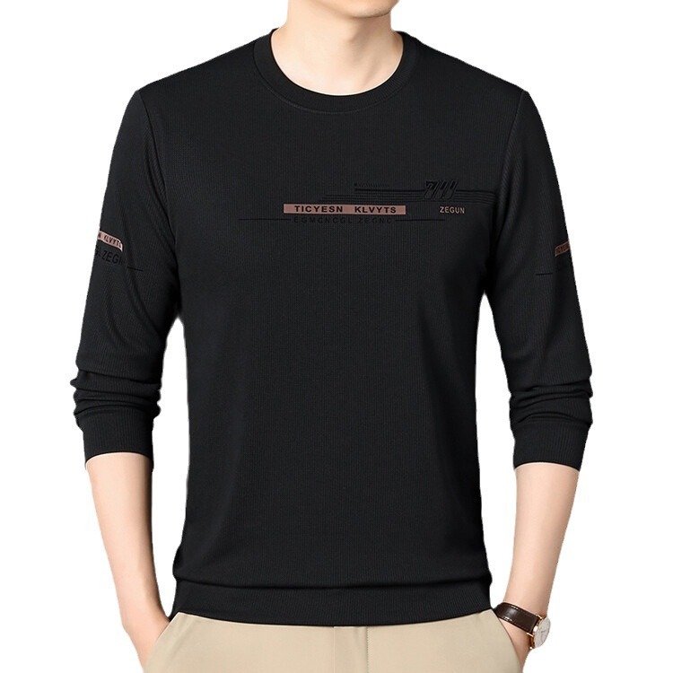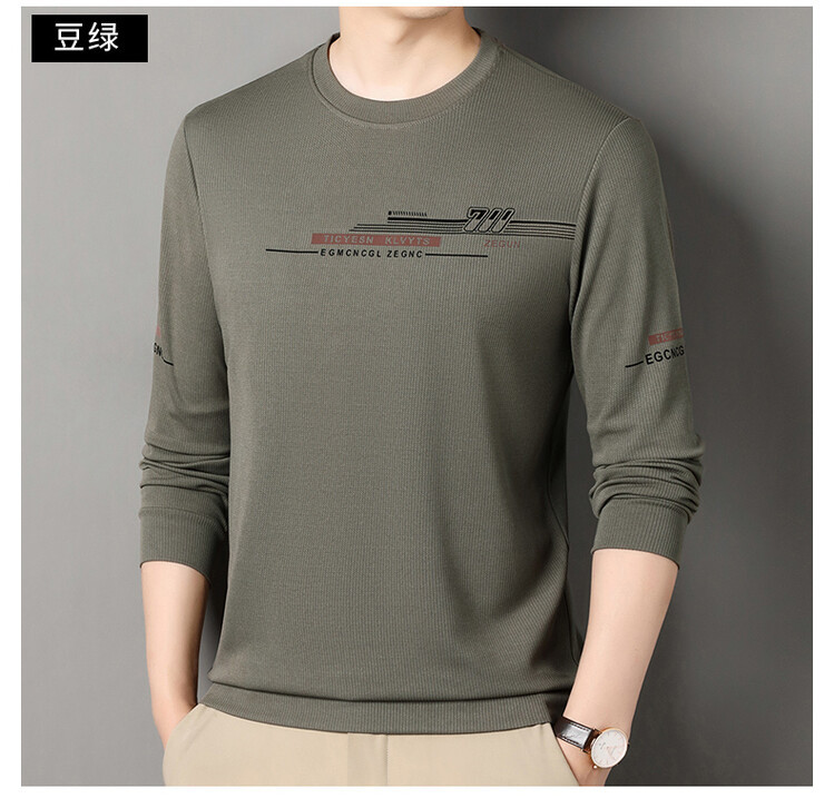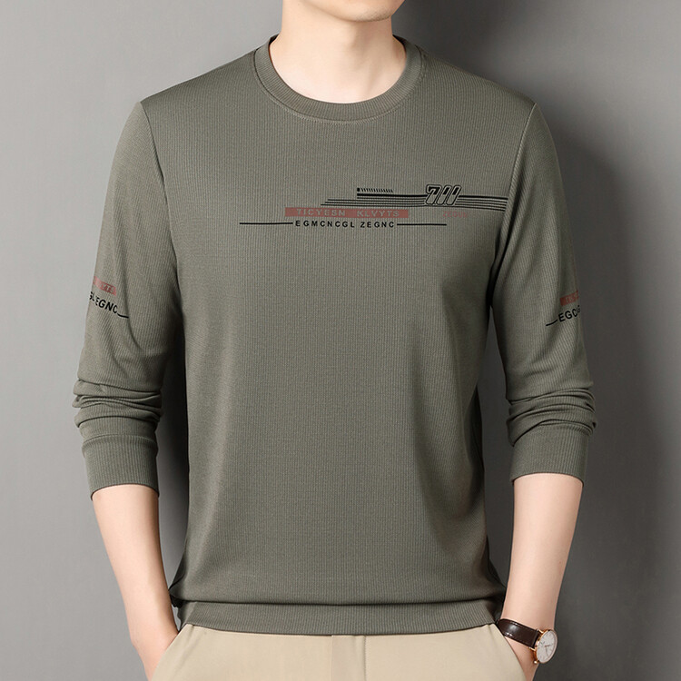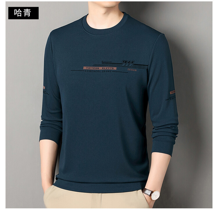 하이 퀄리티 면 봄과 가을 면 남성용 긴팔 티셔츠 라운드 넥 스웨터 남성용 인쇄 얇은 캐주얼 가을베이스 셔츠