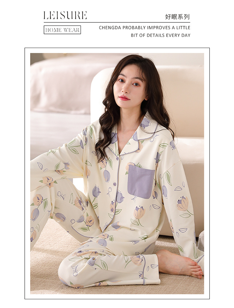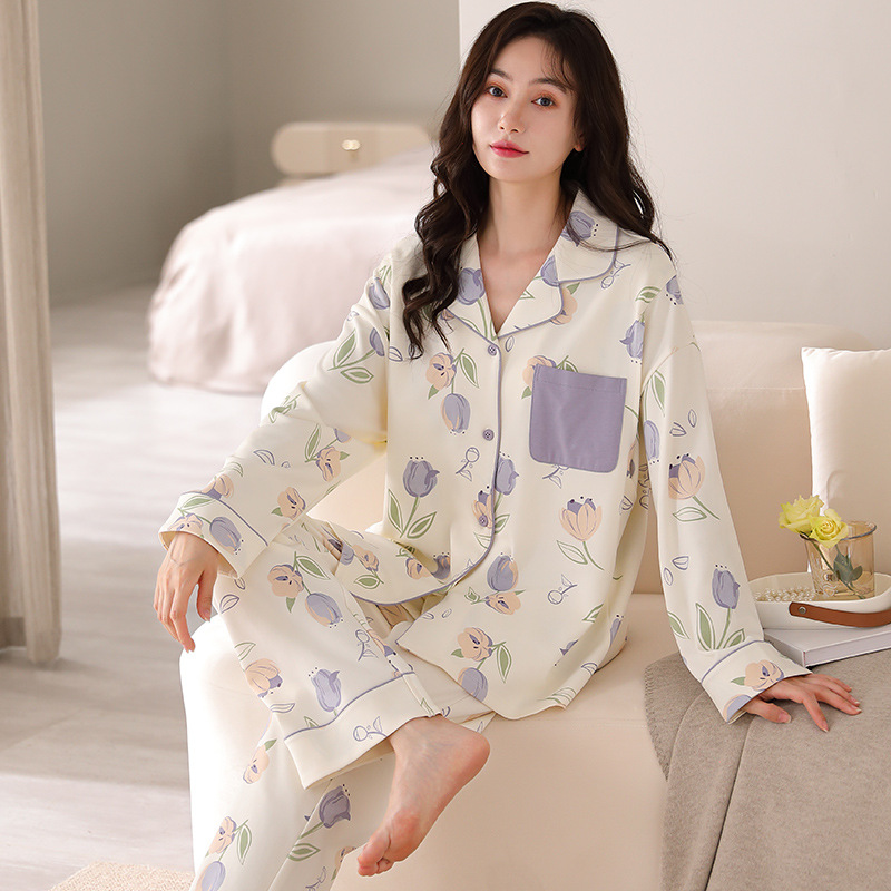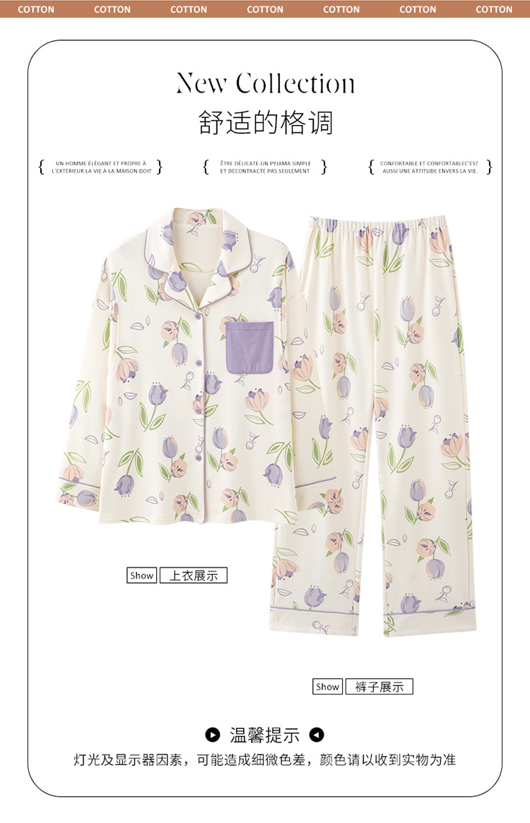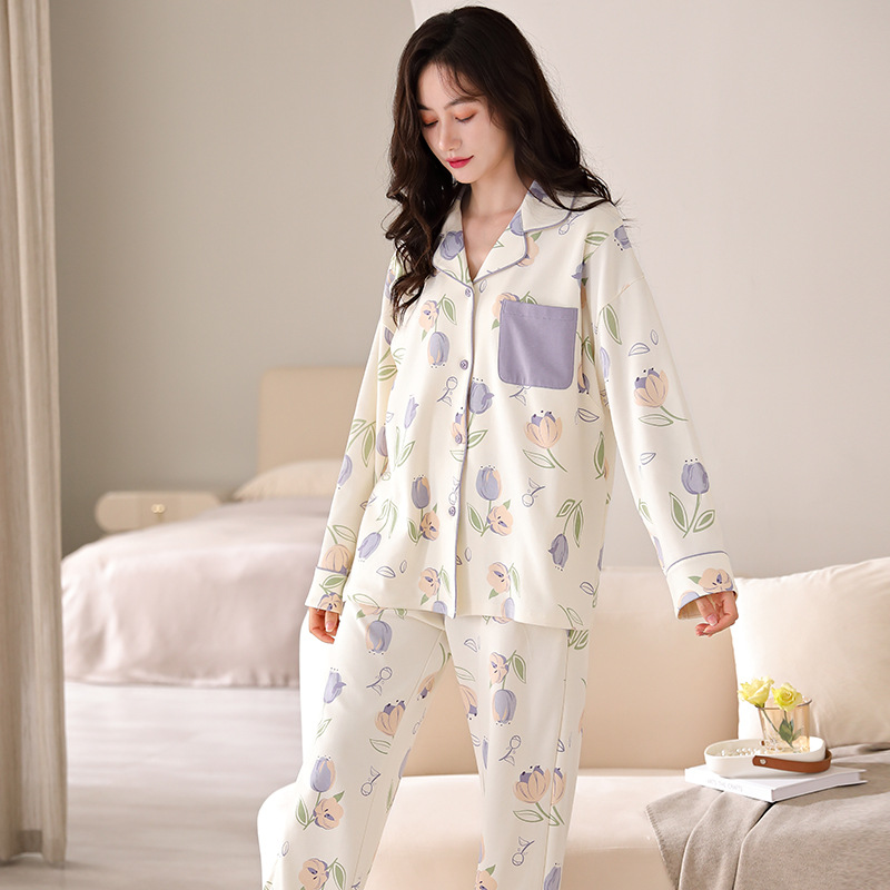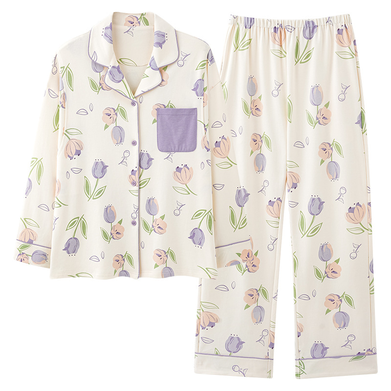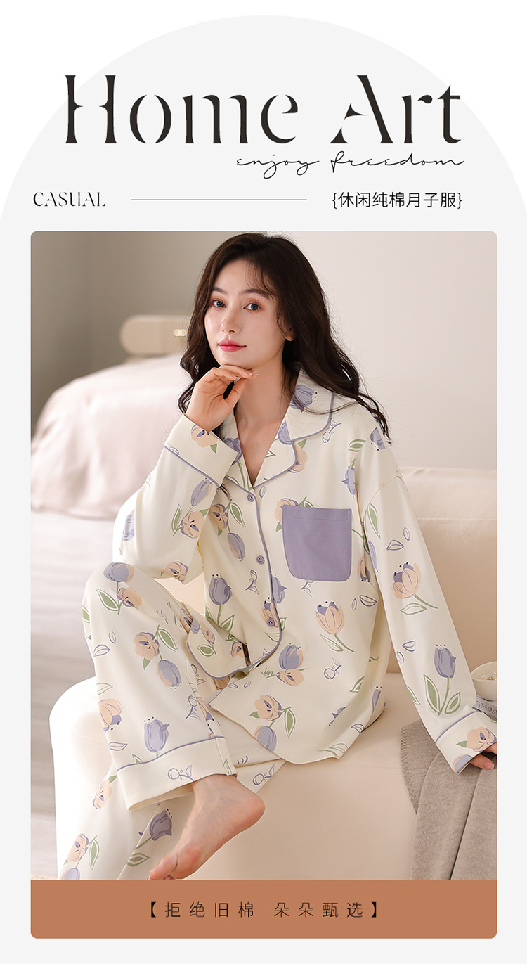 튤립 모성 산후 수유 출산 의류 봄 및 가을 면화 긴팔 카디건 플러스 사이즈 느슨한 캐주얼 임산부 파자마
