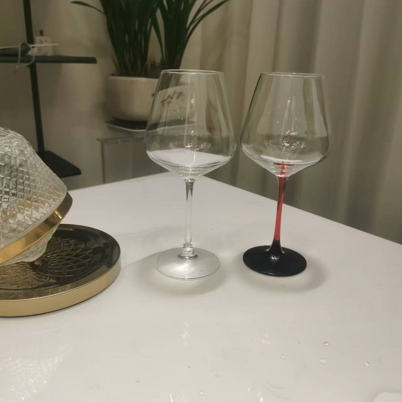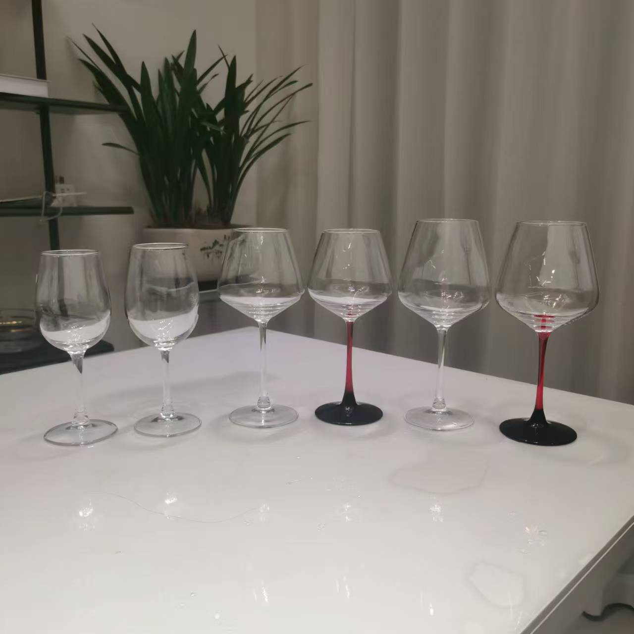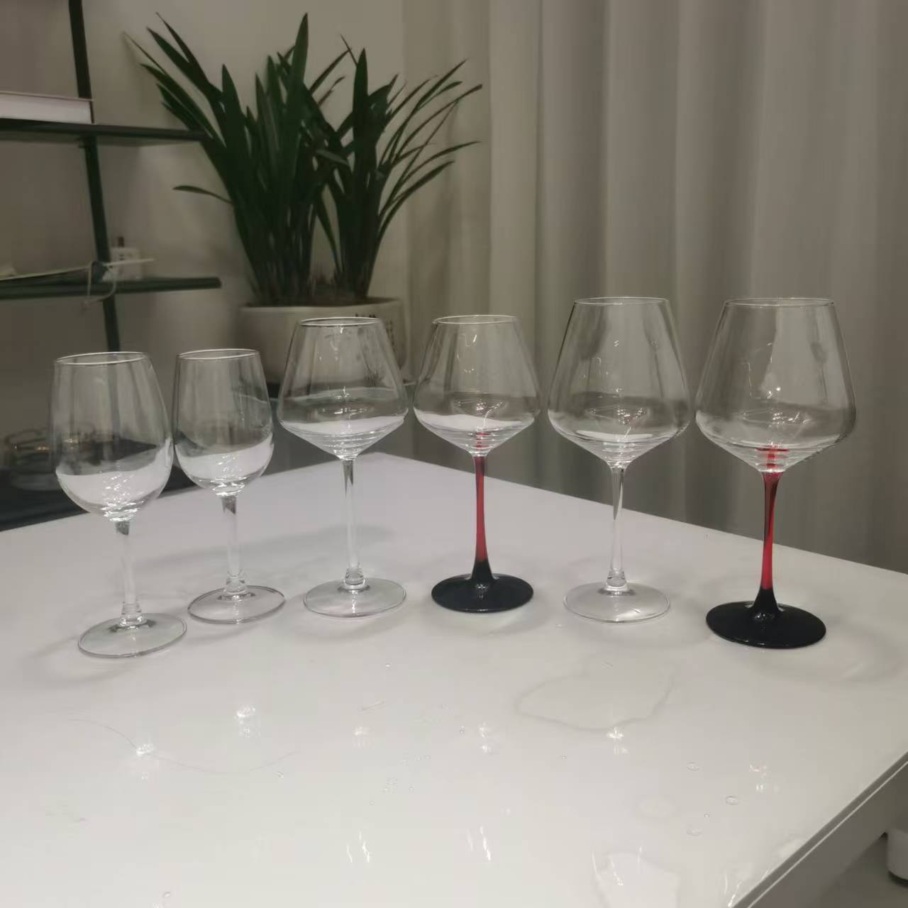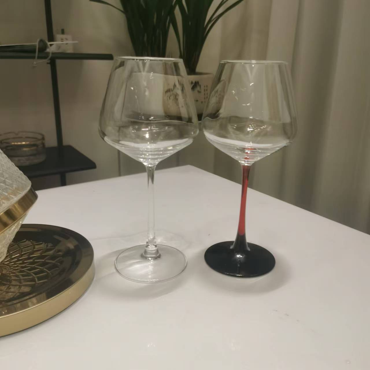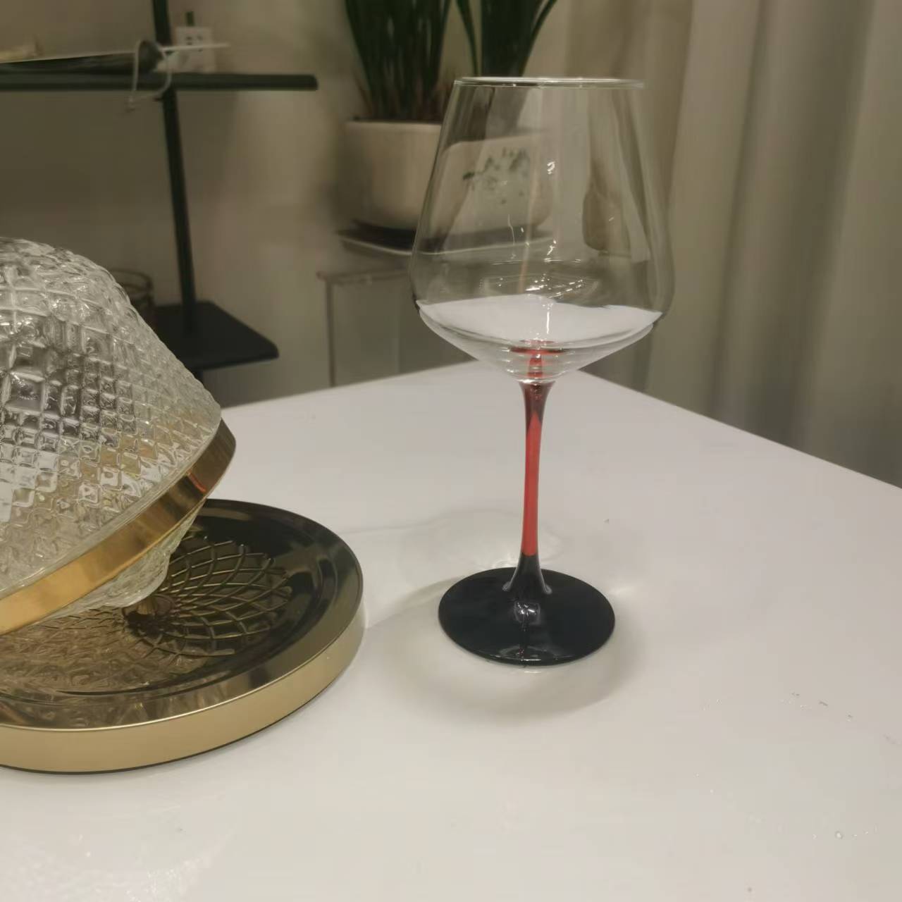 처리 가능한 레드 와인 유리 레드 로드 블랙 하단 고급 콜드 컷 와인 유리 레드와 블랙 고블릿 빅 벨리 컵