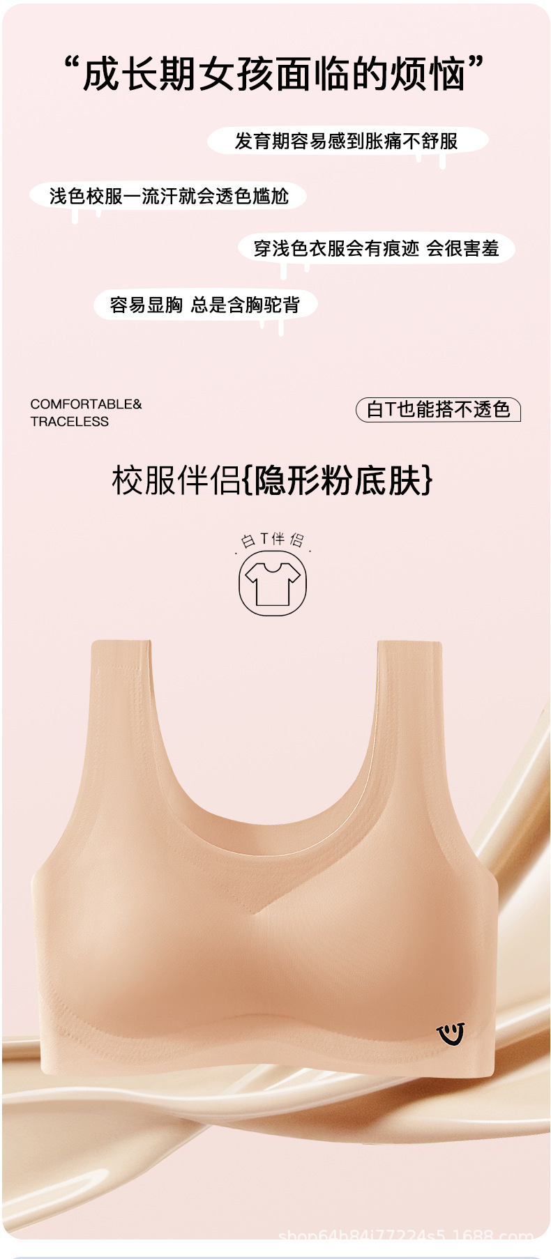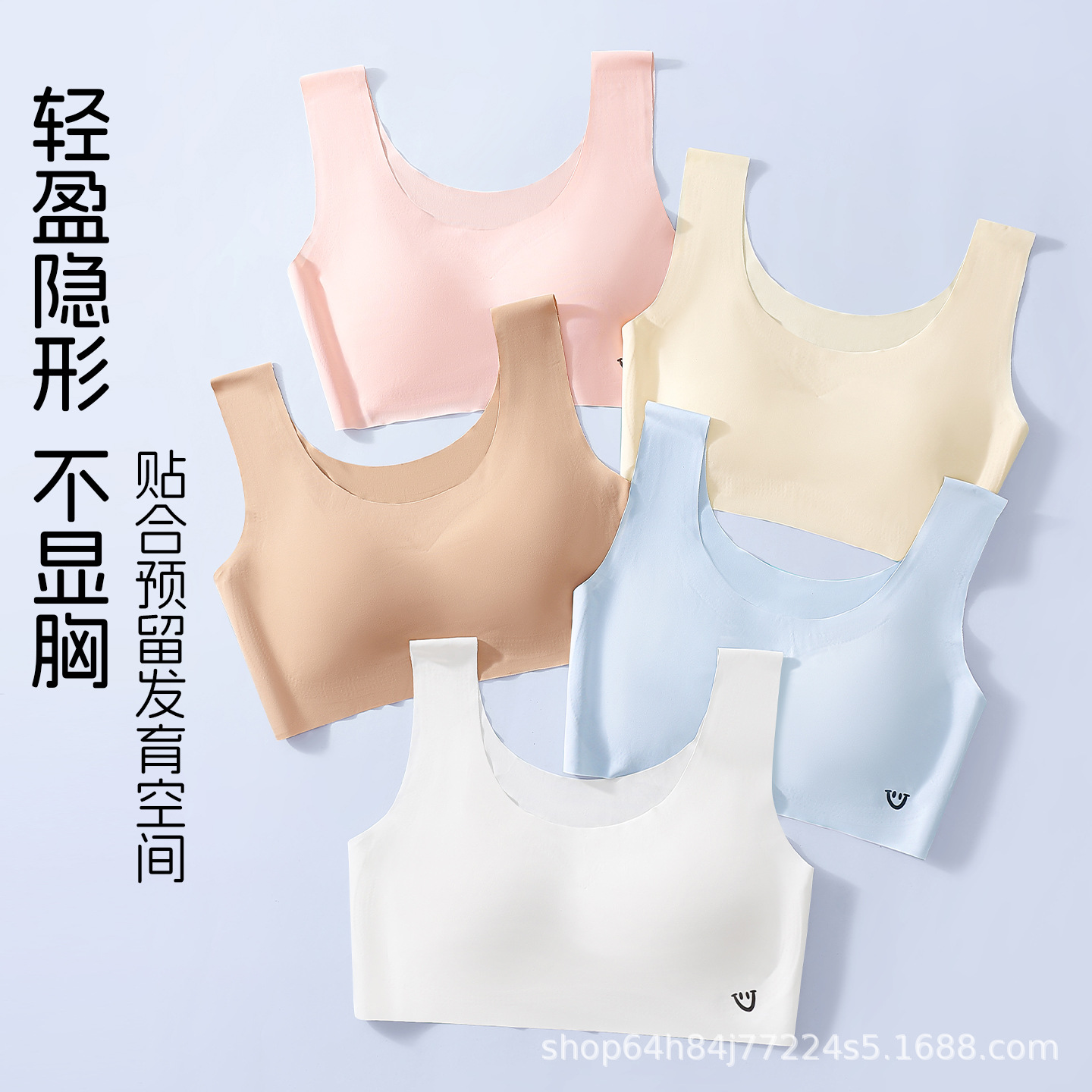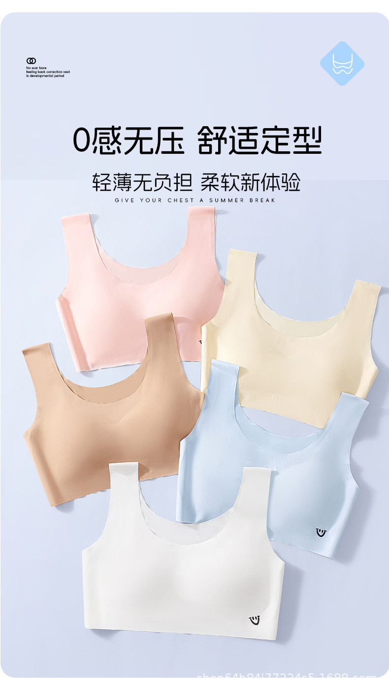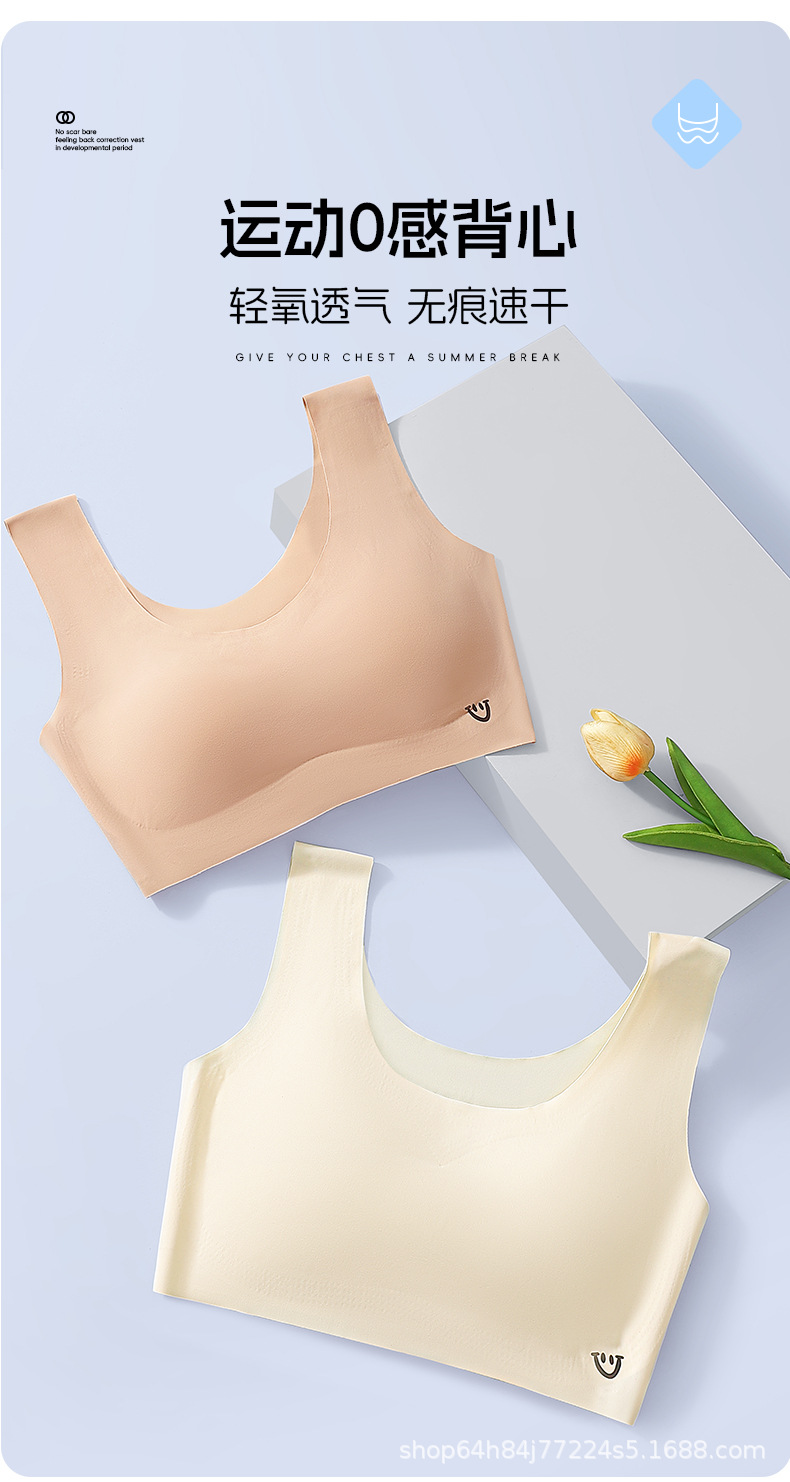원활한 아이스 실크 속옷 여성 발달 스포츠 충격 방지 조끼 중학교 학생 통기성 비 림 브라 여름 얇은