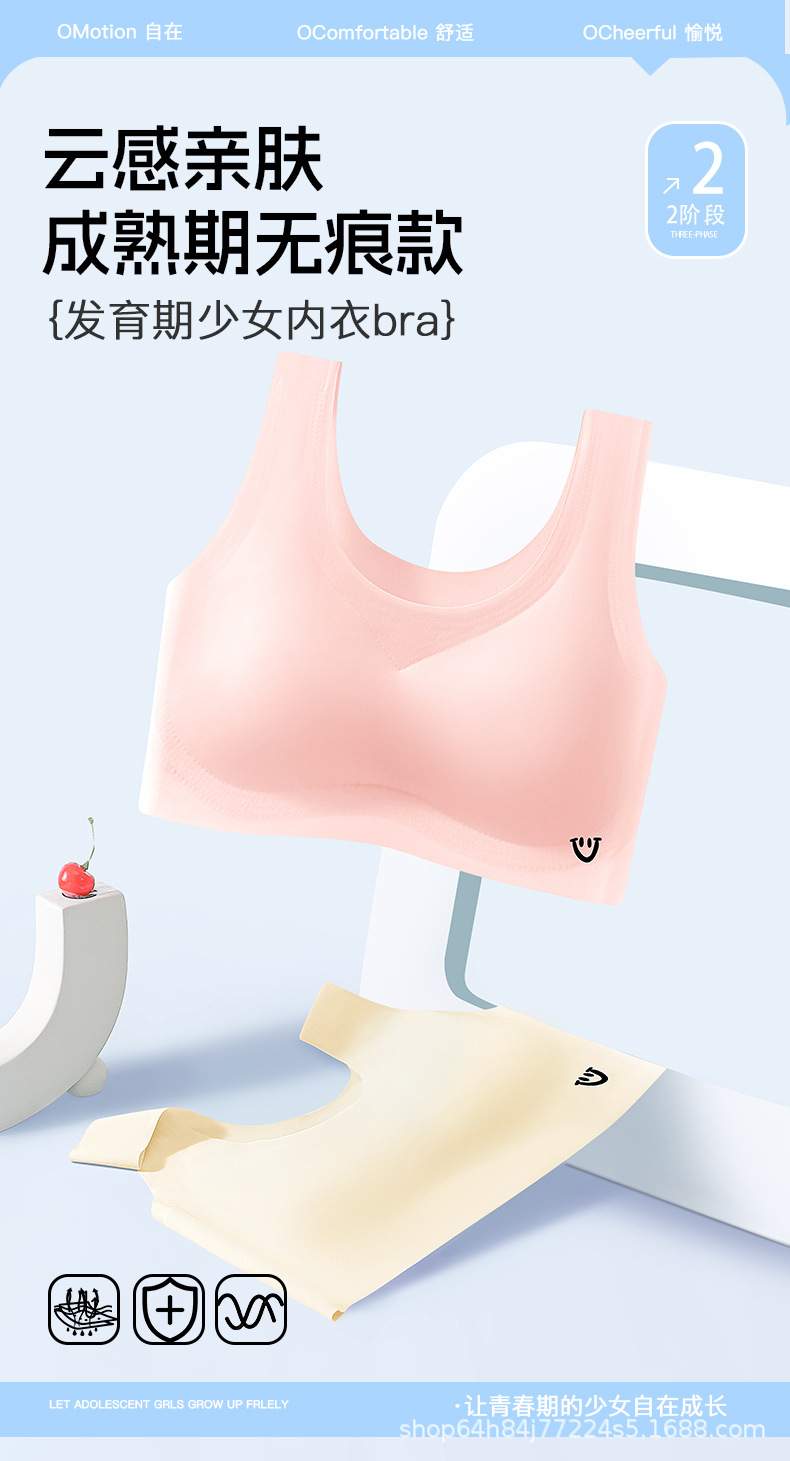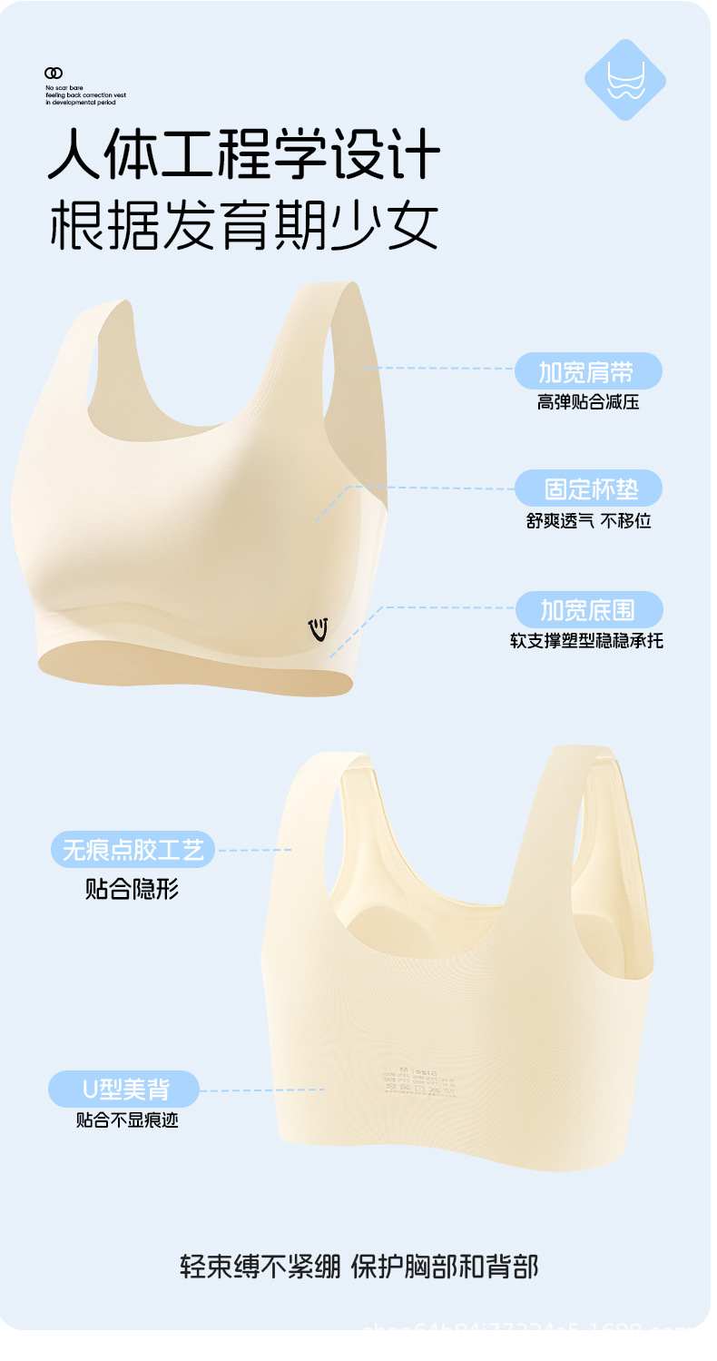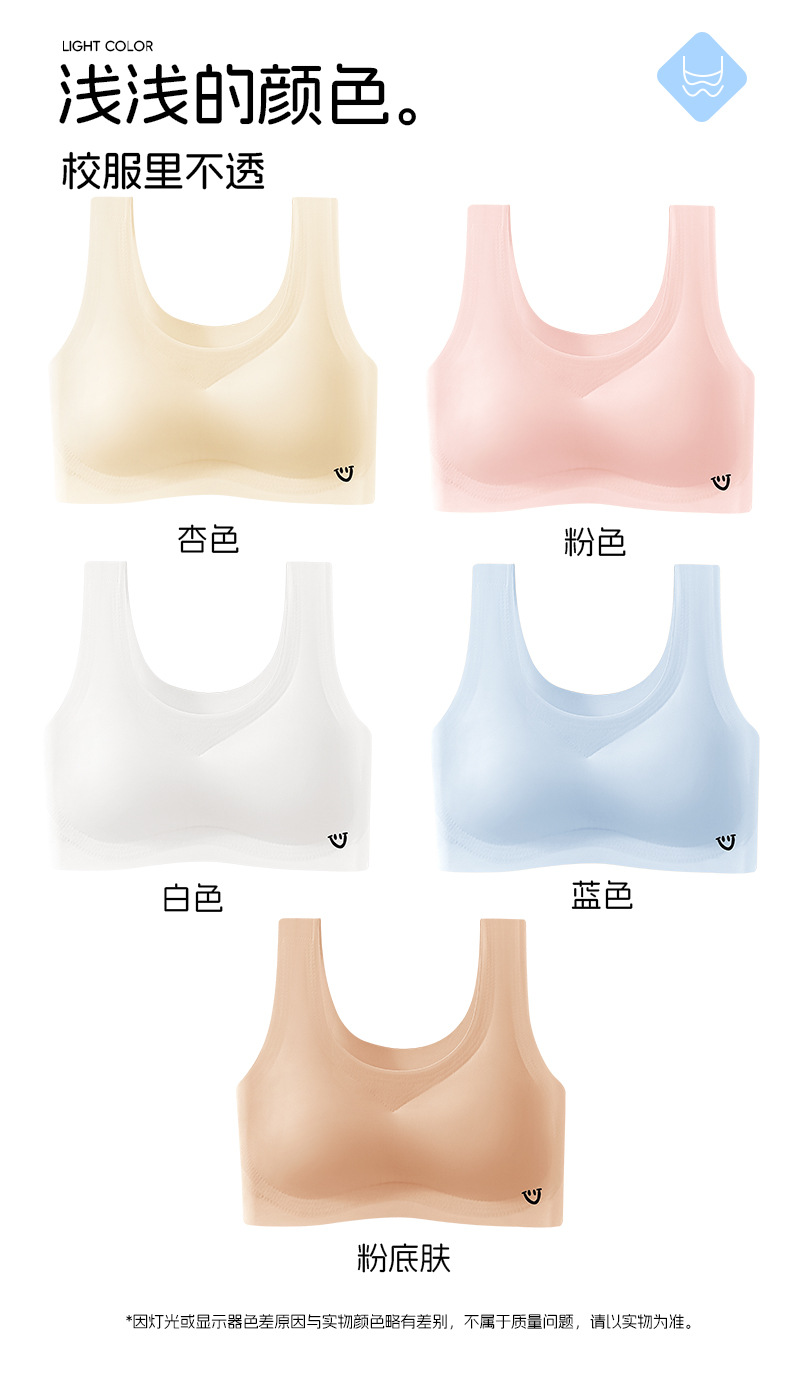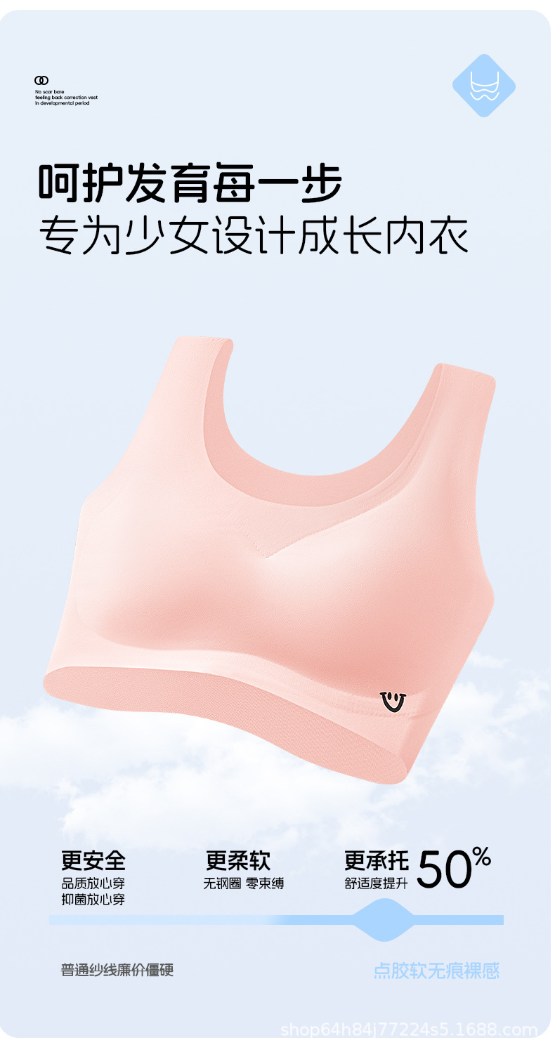 원활한 아이스 실크 속옷 여성 발달 스포츠 충격 방지 조끼 중학교 학생 통기성 비 림 브라 여름 얇은