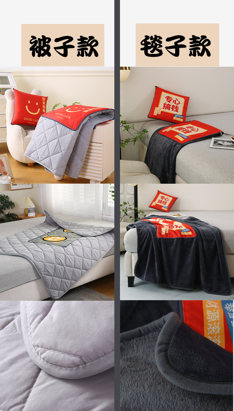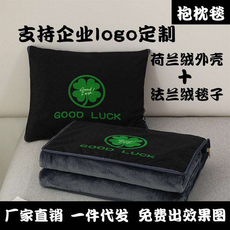 기업 로고 맞춤형 플란넬 베개 담요 선물용 베개 다기능 베개 겸용 이불 2 in 1