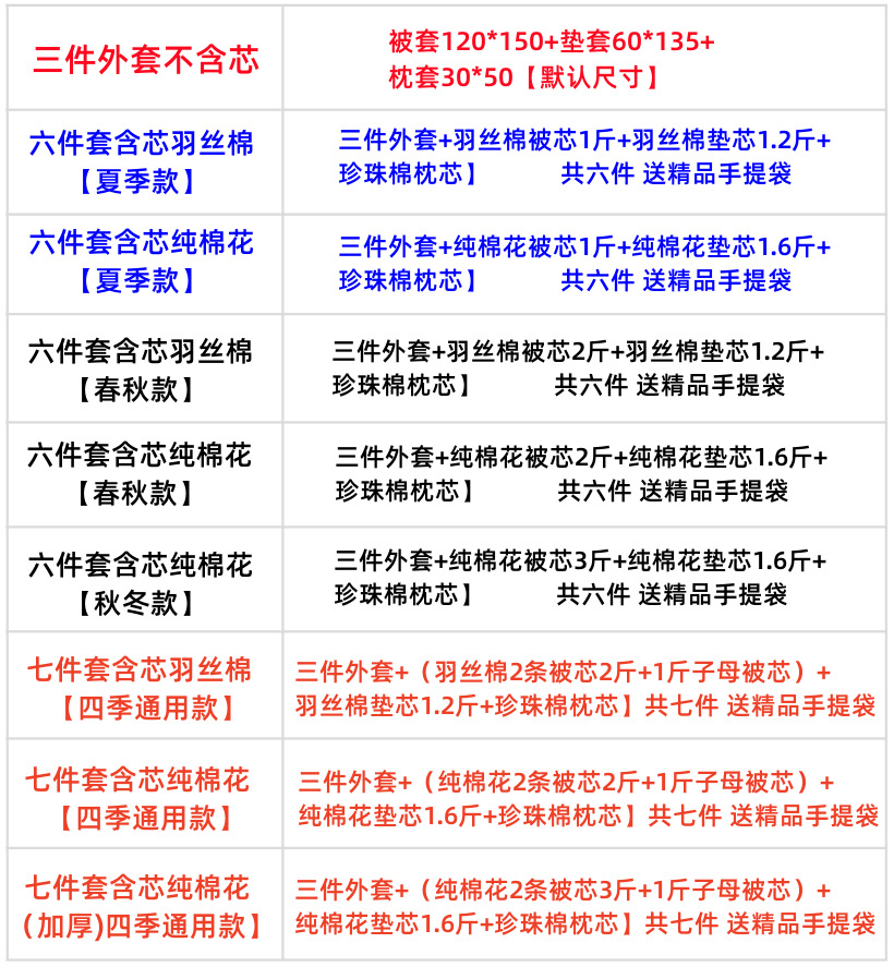 사계절 유니버설 모델] 코어 깃털 실크 코튼 더블 퀼트 코어 2+ 0.5kg 7종 세트