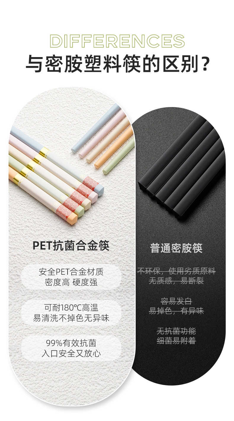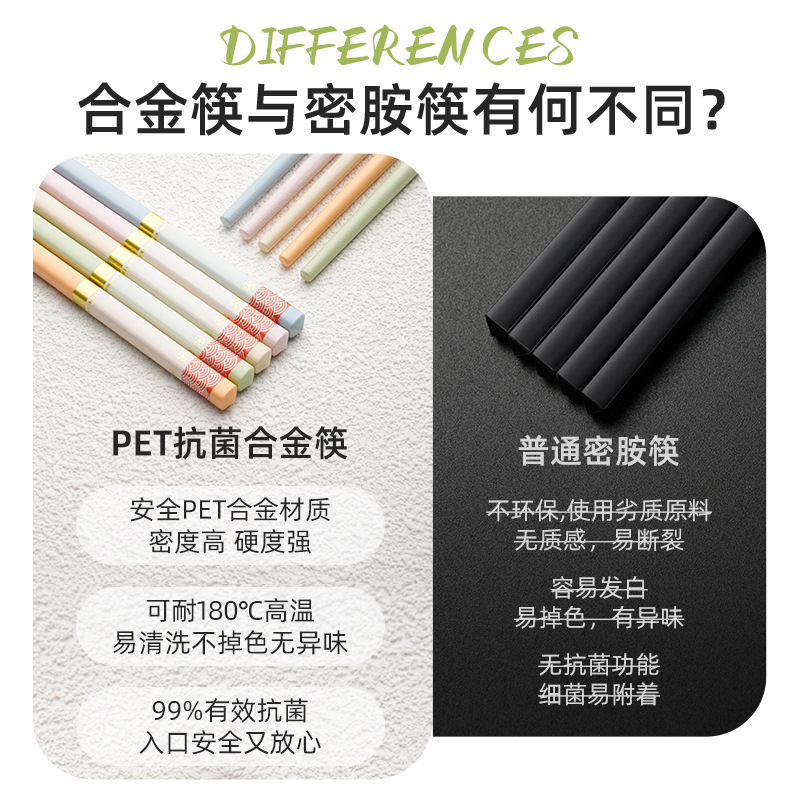 2025 새로운 하이 엔드 가정용 고 가치 가족 식사 젓가락 미끄럼 방지 곰팡이 방지 고온 내성 합금 젓가락