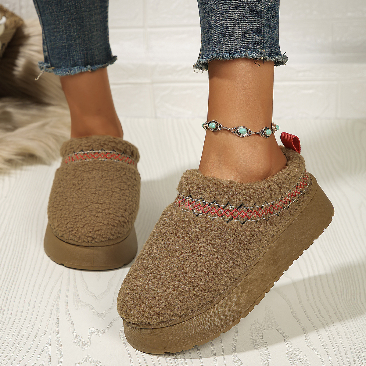 두꺼운 밑창 스노우 부츠 여성의 2024 대외 무역 플러스 사이즈 기모 따뜻한 바오 터우 색상과 유럽과 미국의 레저 착용 마오 마오 코튼 드래그