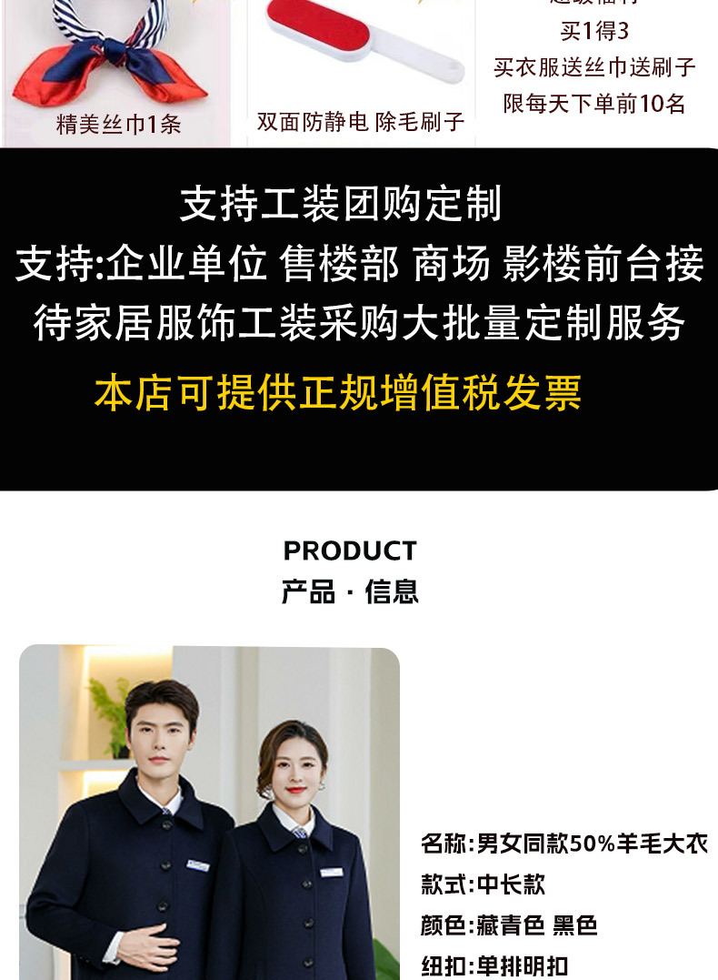 전문 모직 코트 남녀 동일 누빔안감 판매 사무실 CCB 툴링 고급 작업복 모직 코트