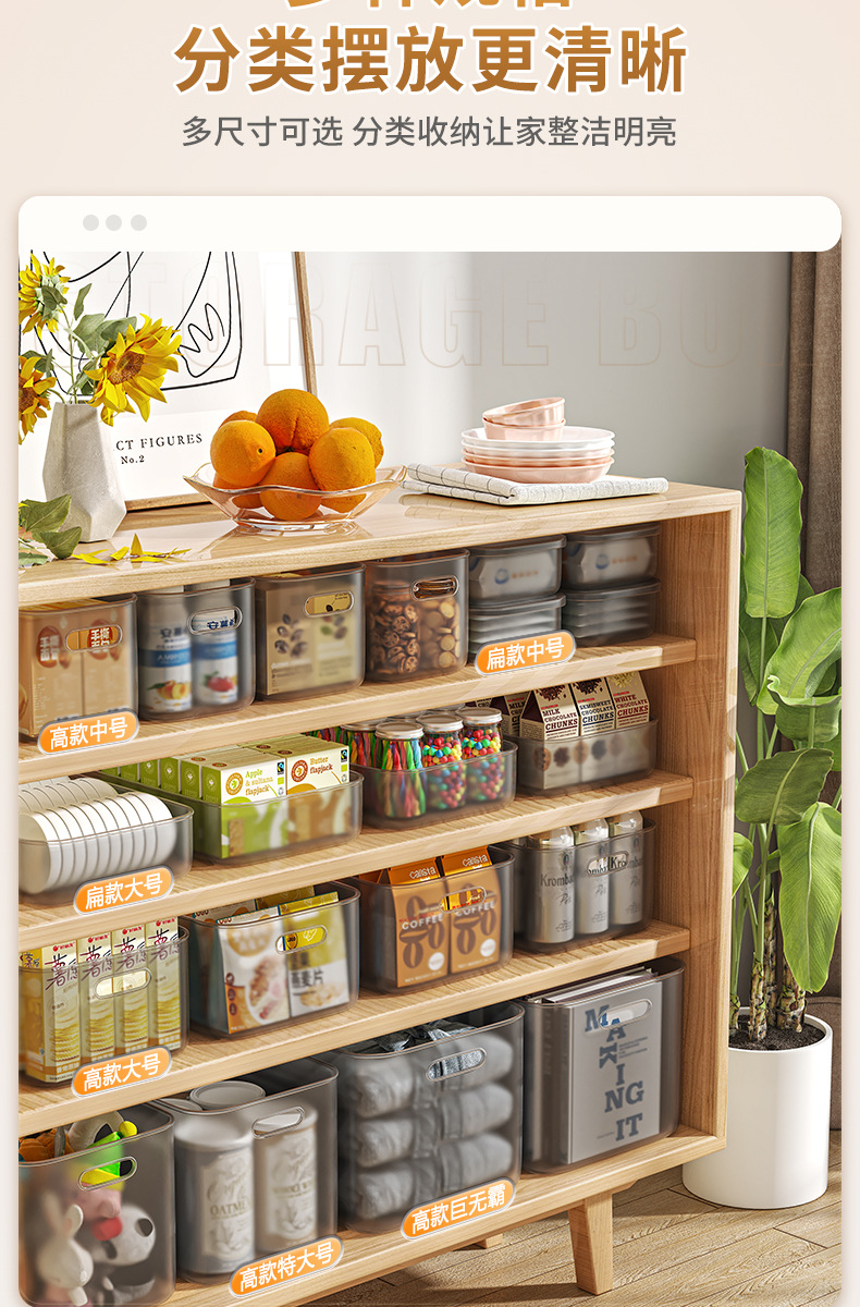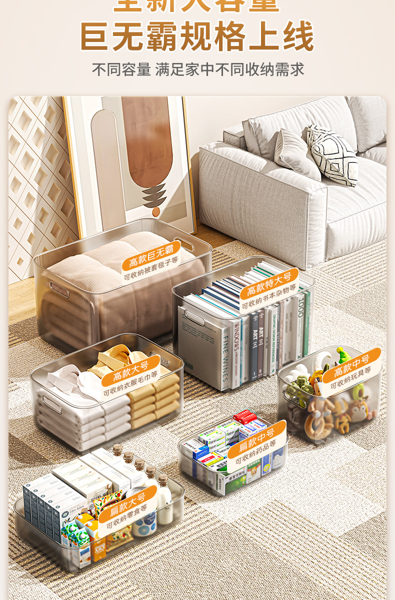 투명한 보관 상자 데스크탑 거실 주방 식료품 바구니 장난감 간식 옷 가구 피팅 바구니 보관 상자
