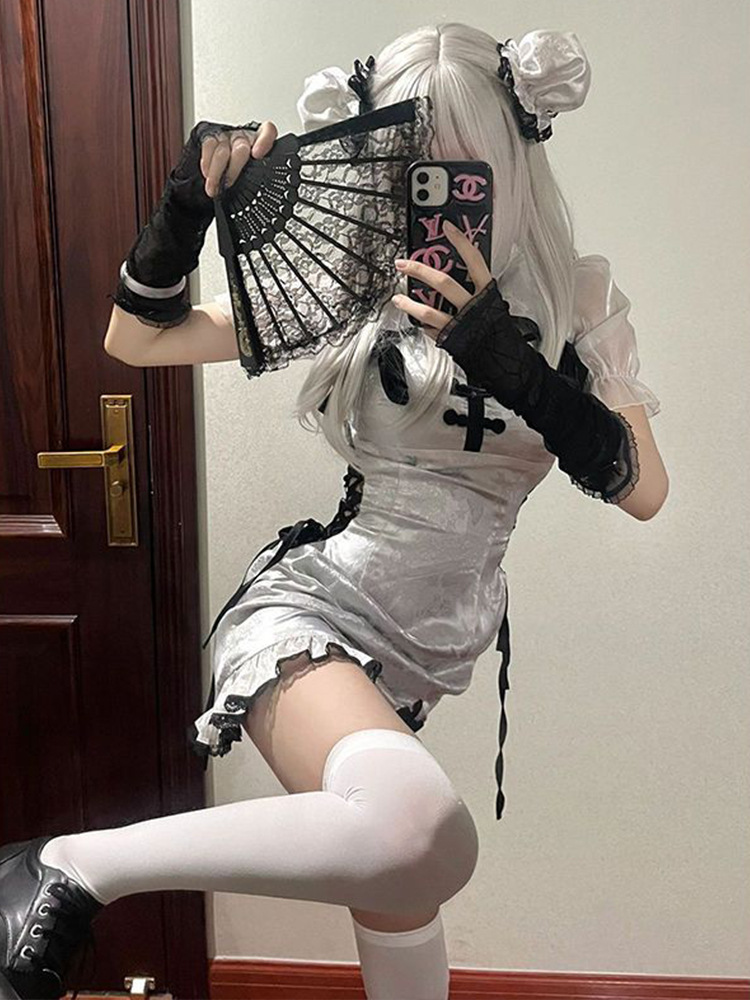 국가 스타일 새로운 중국 스타일 우아한 수직 칼라 청삼 원피스 슬림핏 엉덩이 짧은 치마 여름 새로운 달콤한 스파이스 소녀 여성 의류