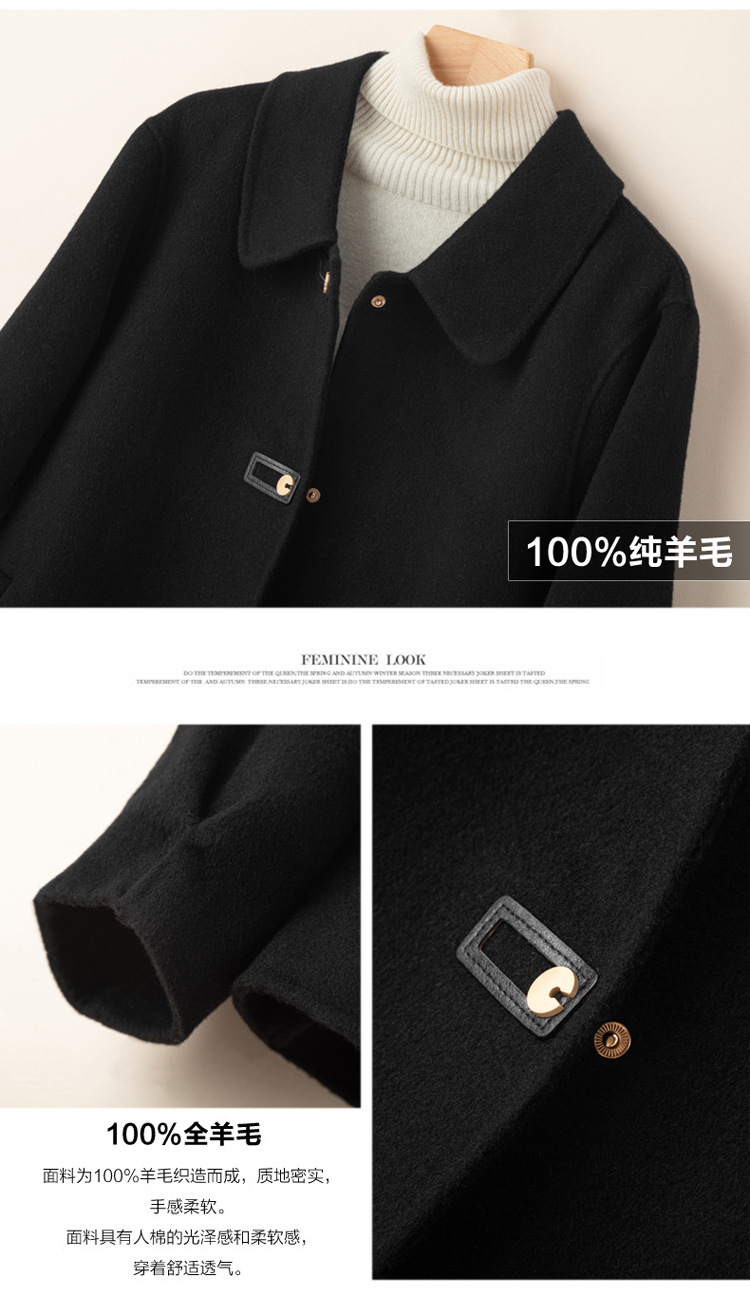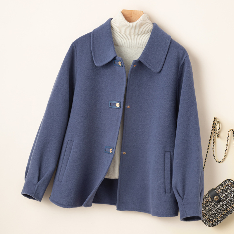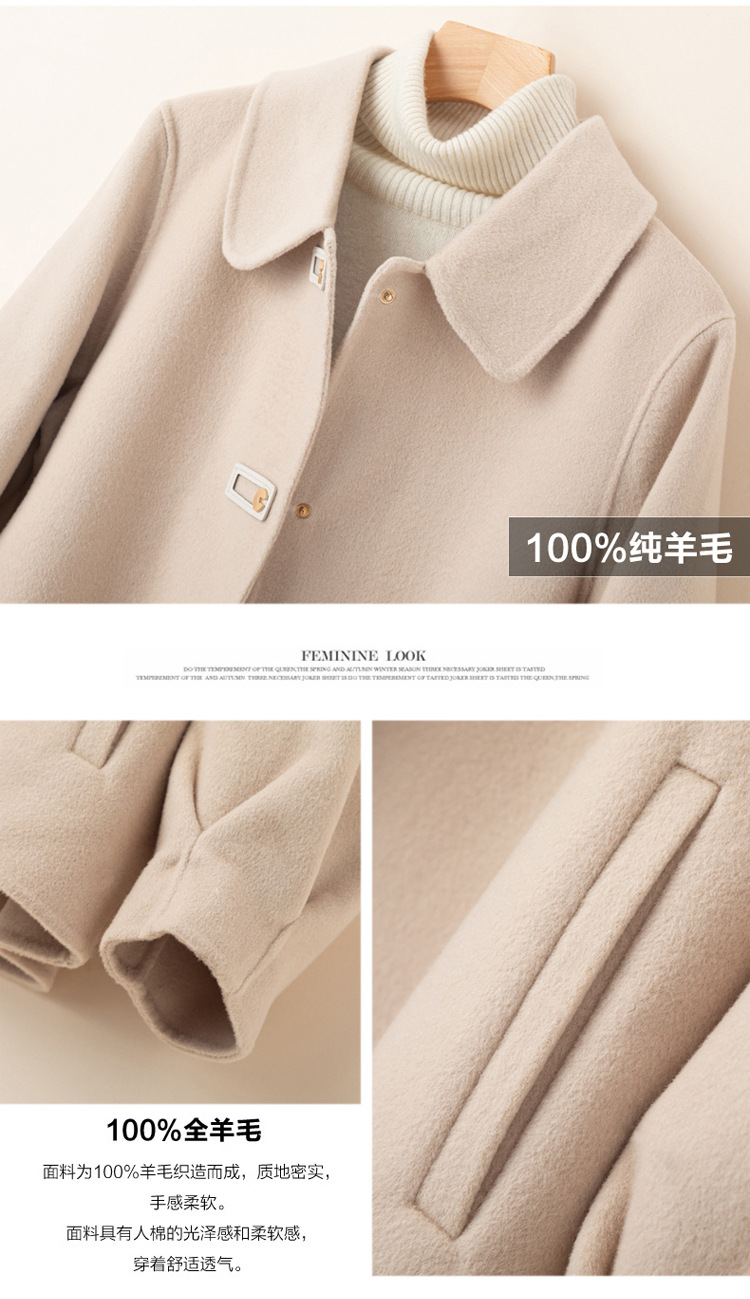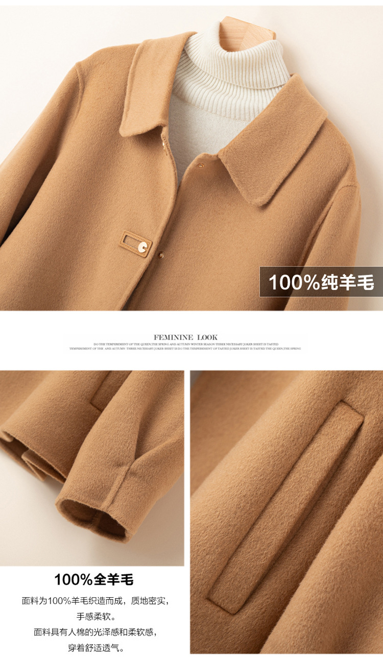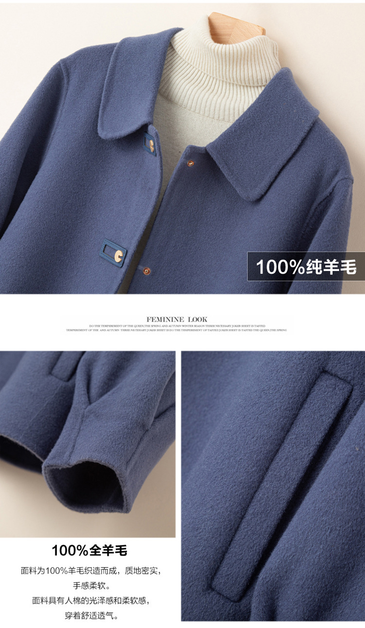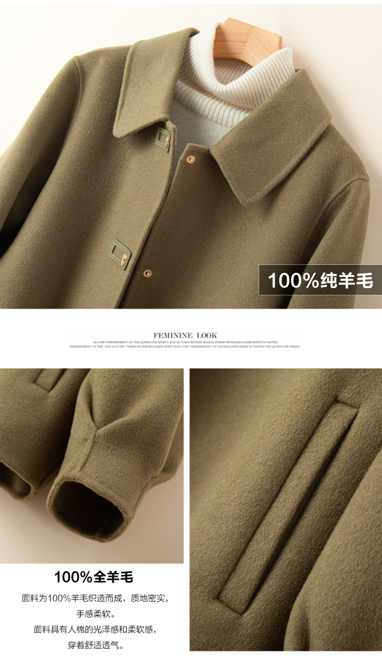 2024 가을 겨울 옷깃 100 순수 양모 여성용 느슨한 양면 양모 코트 작은 모직 코트 탑