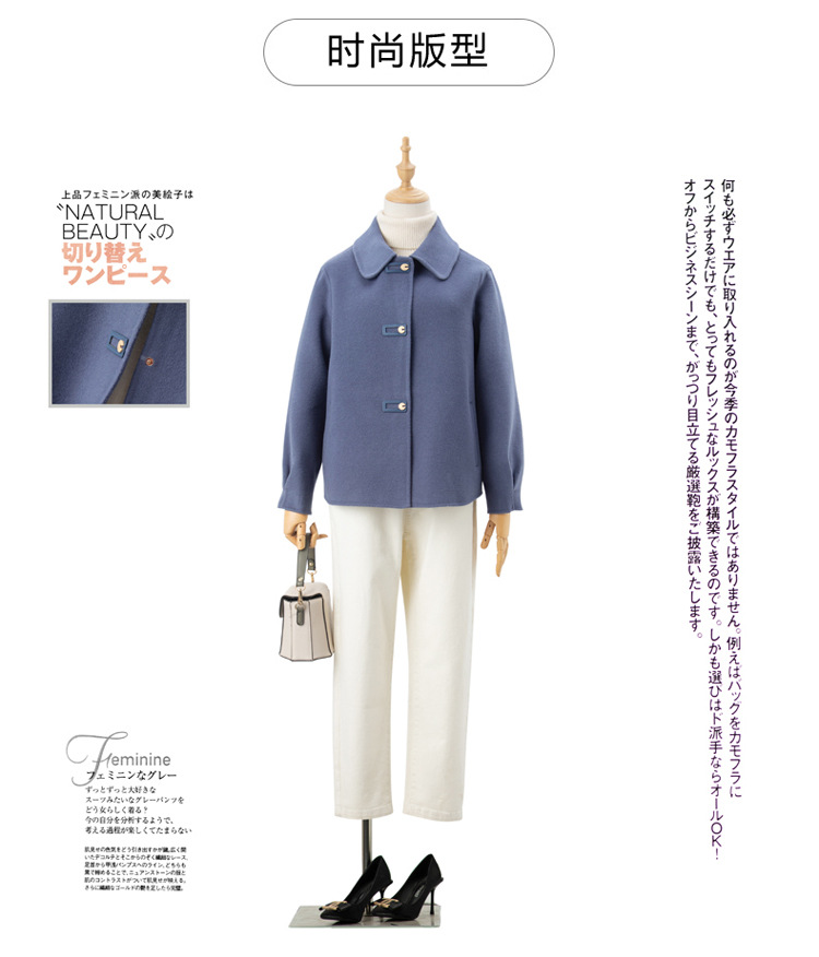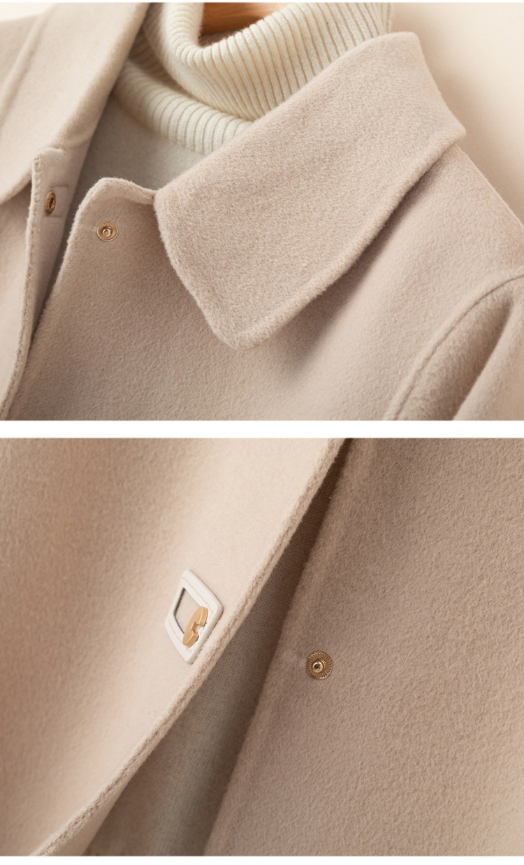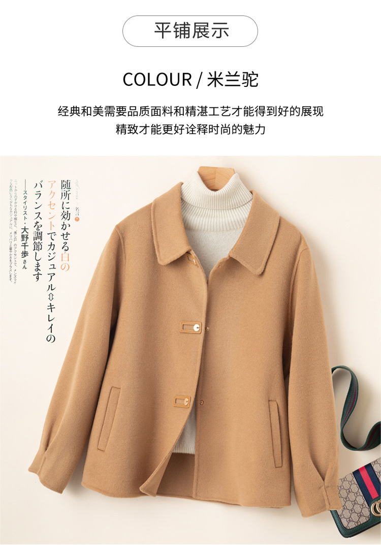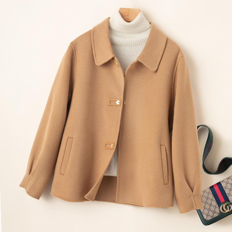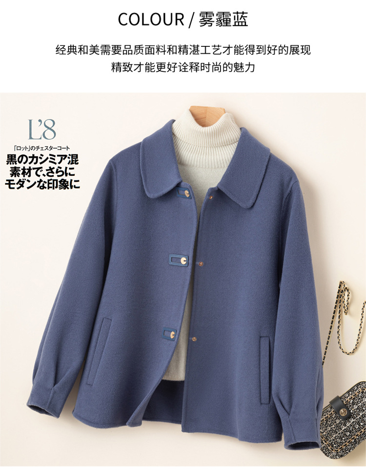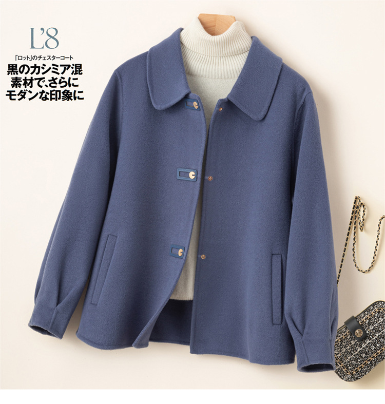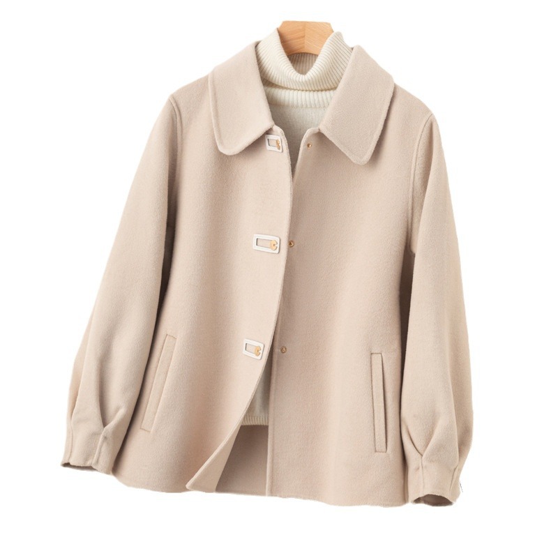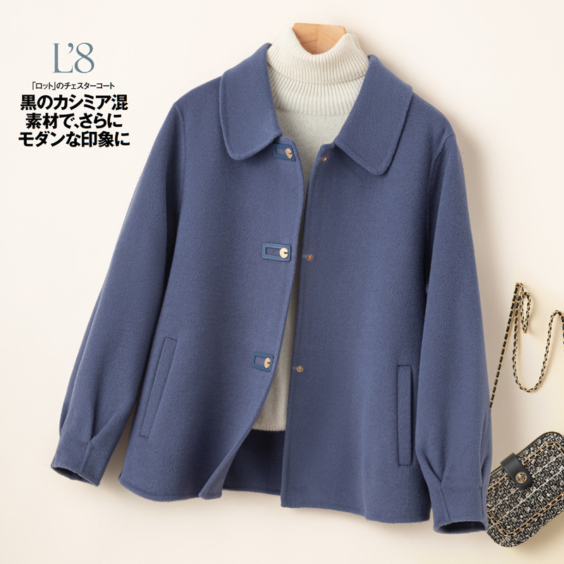 2024 가을 겨울 옷깃 100 순수 양모 여성용 느슨한 양면 양모 코트 작은 모직 코트 탑