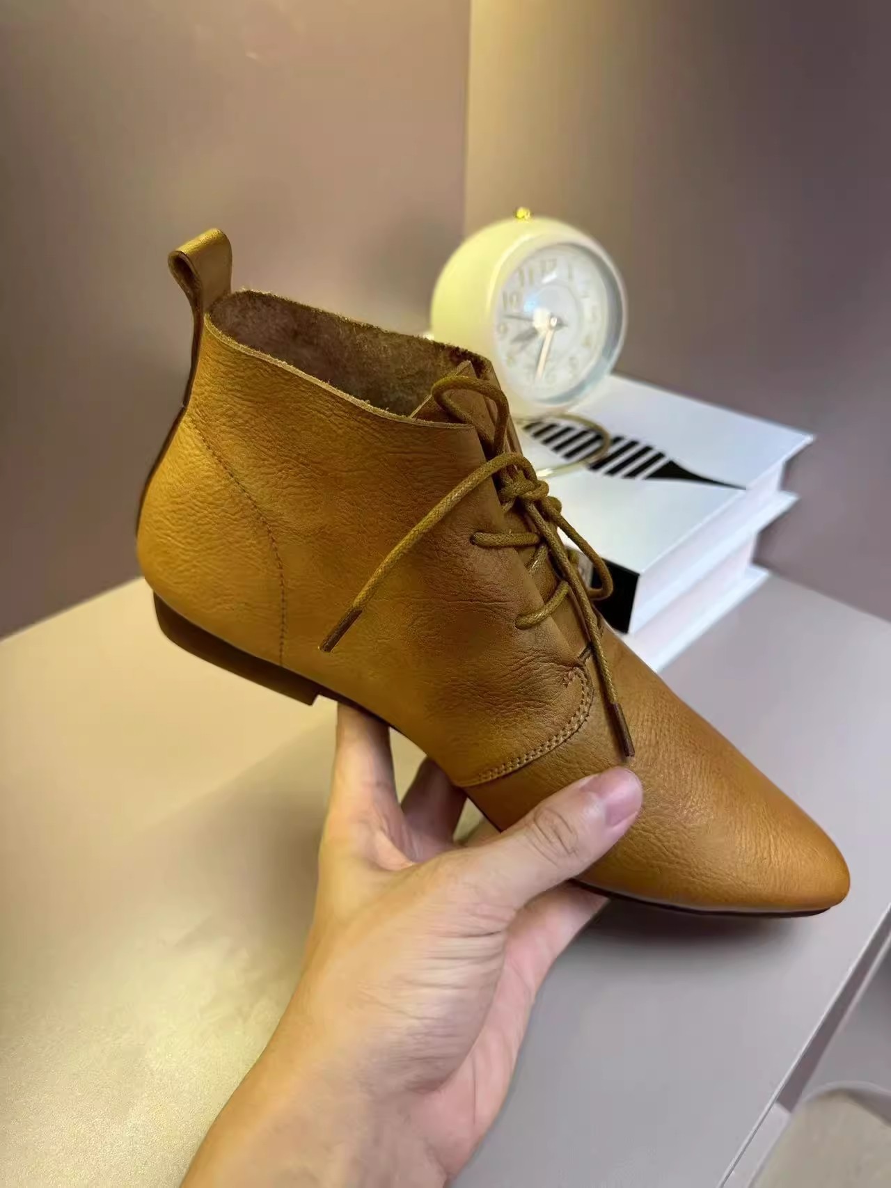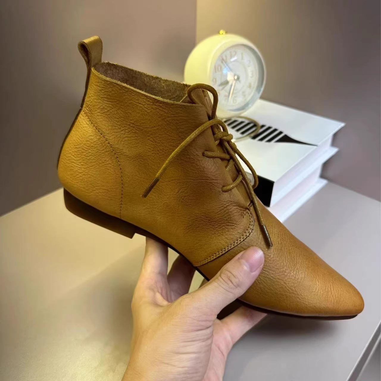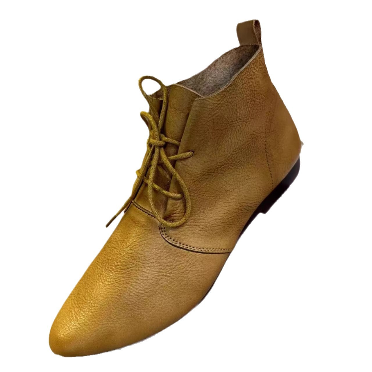 빈티지 포인팅 발목 부츠 여성의 2024 뉴 마틴 부츠 영국의 봄과 가을 플랫 부츠 프랑스 레이스 업 발목 부츠