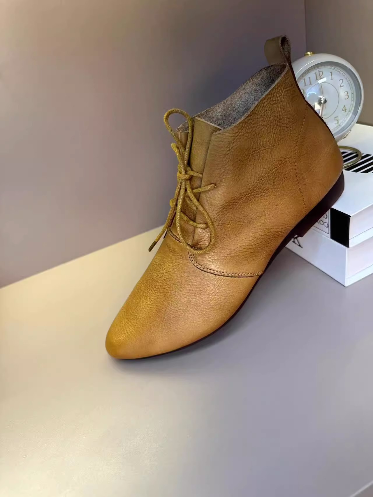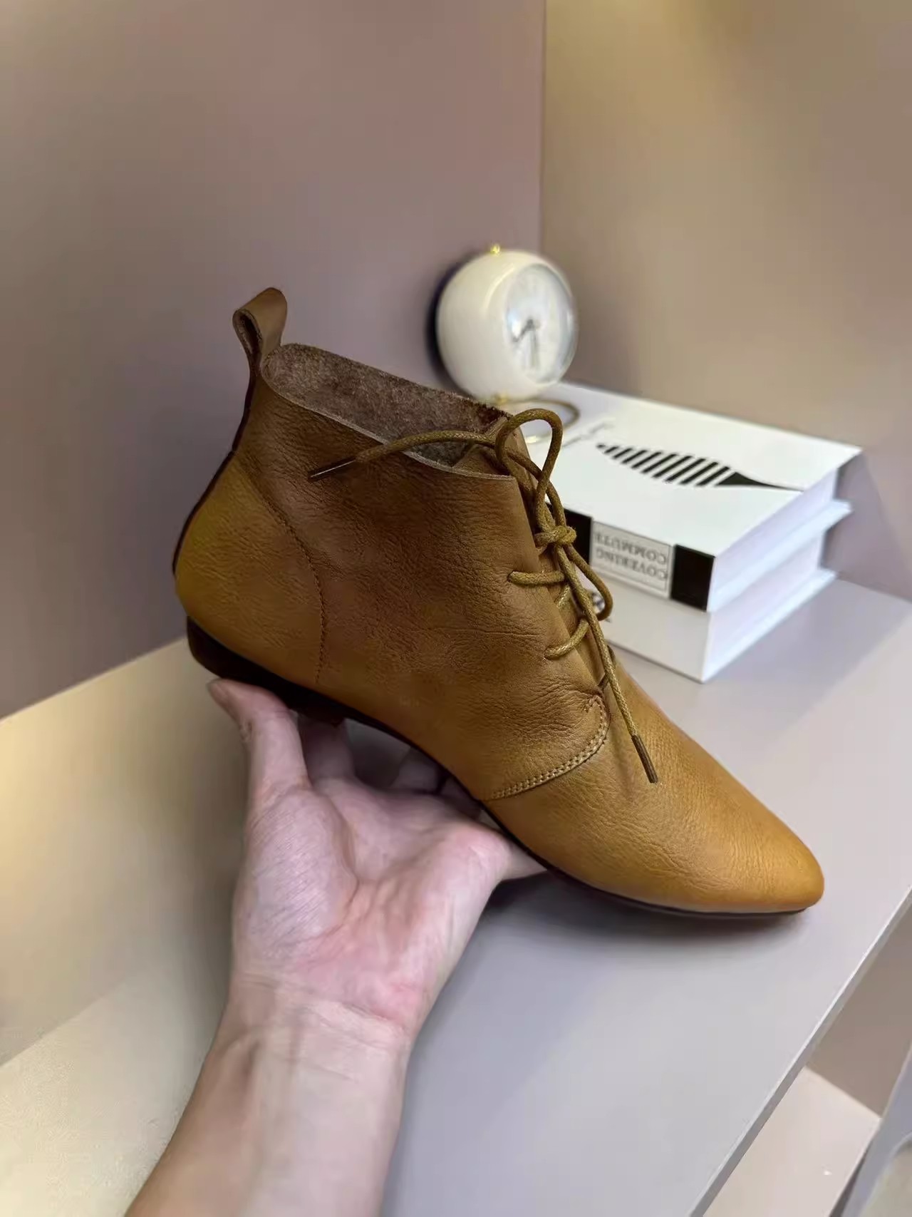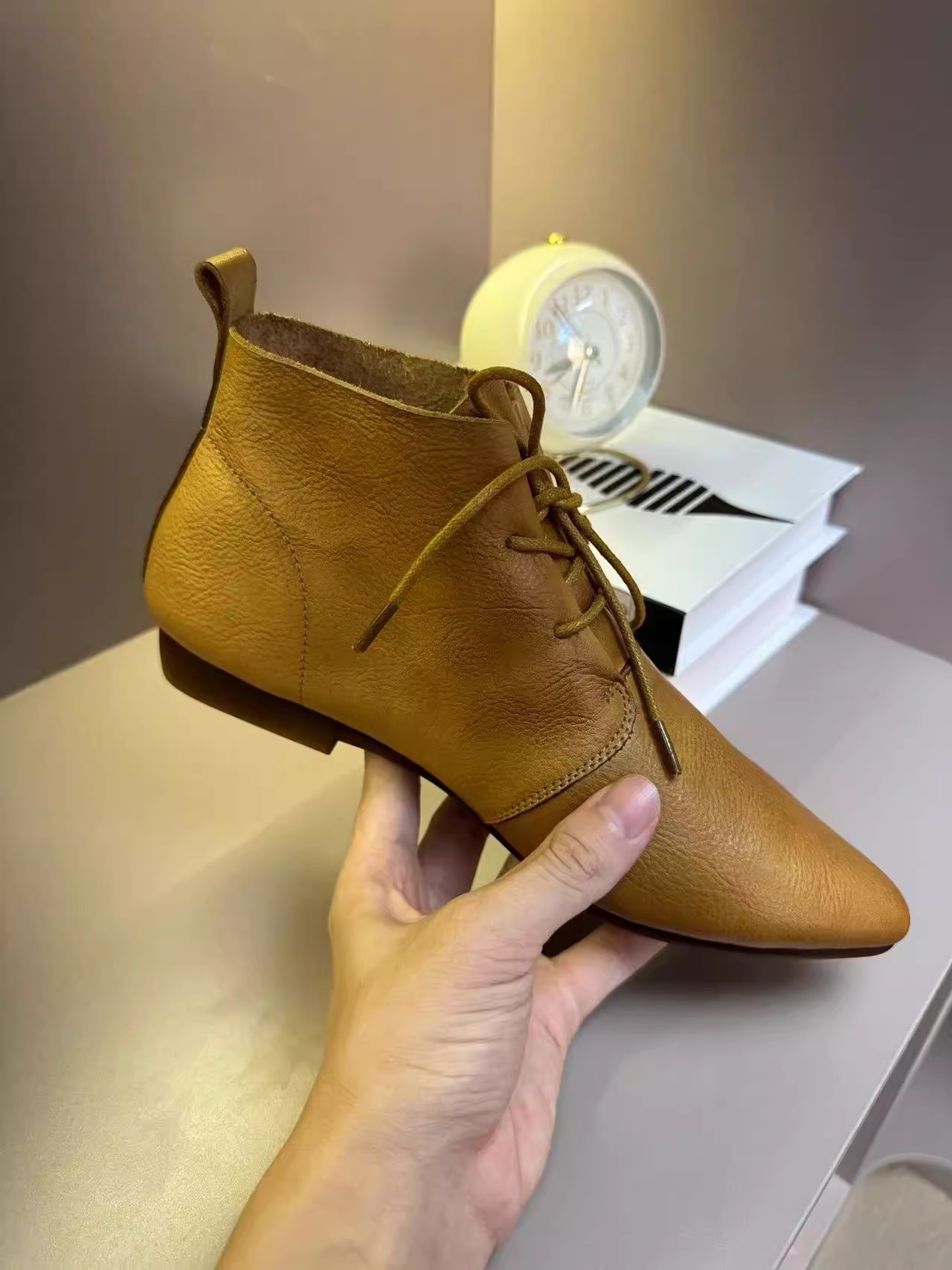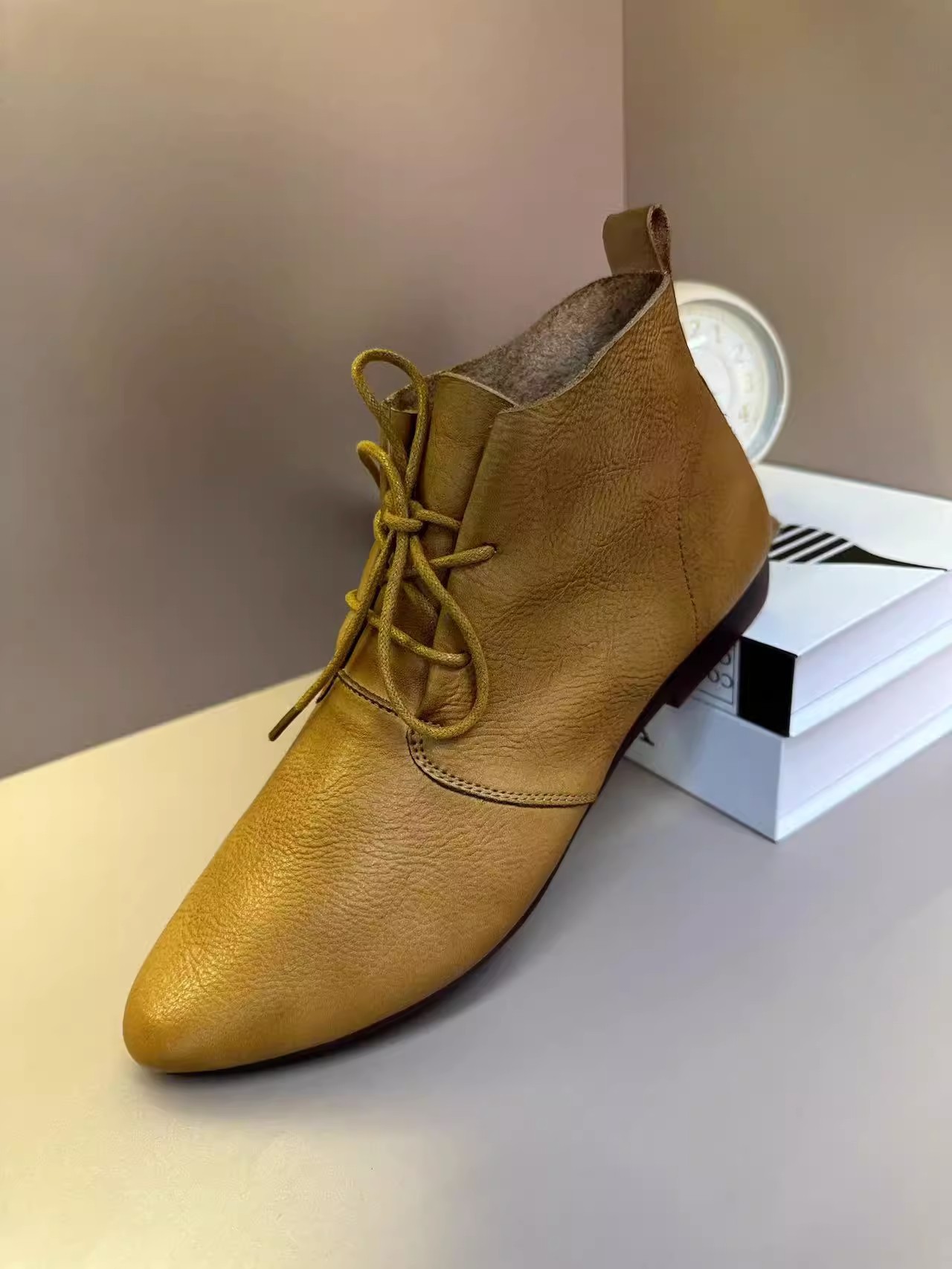 빈티지 포인팅 발목 부츠 여성의 2024 뉴 마틴 부츠 영국의 봄과 가을 플랫 부츠 프랑스 레이스 업 발목 부츠