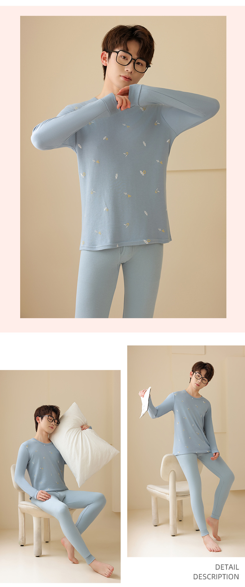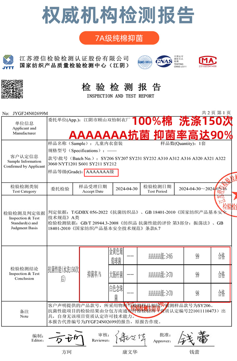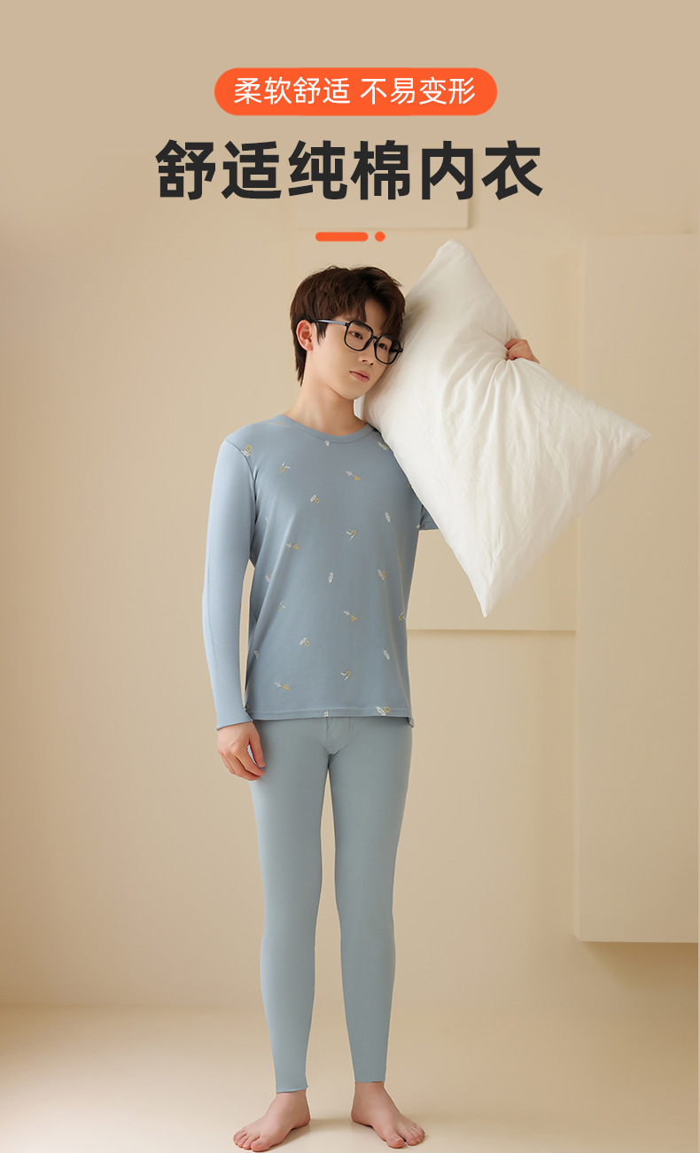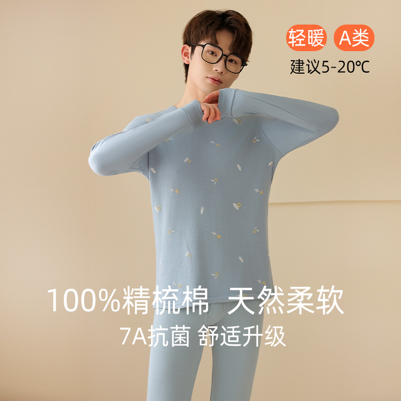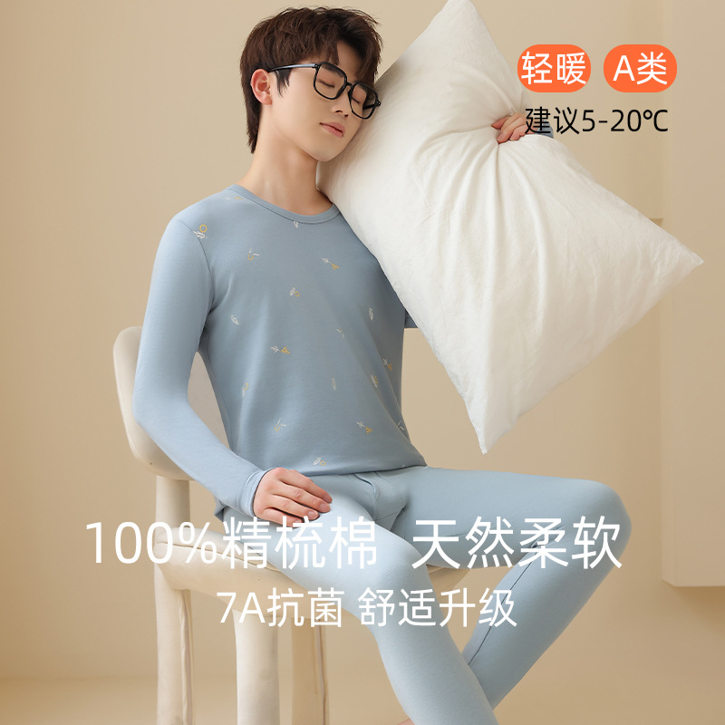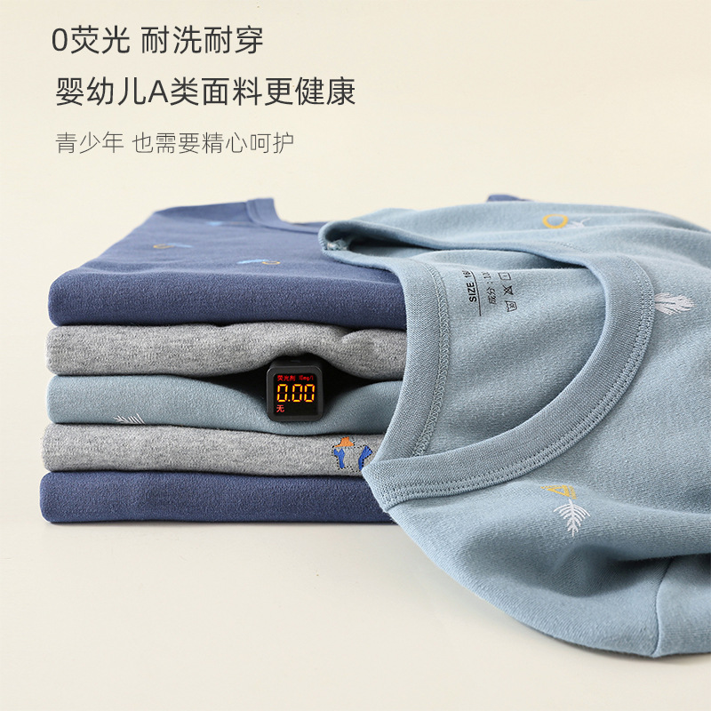 청소년용 7A 항균 A급 순면 가을옷 세트 남성용 이너웨어 순면 베이스 셔츠 중대형 어린이 학생용