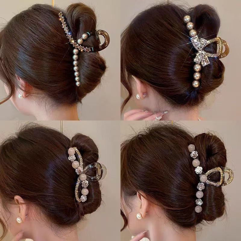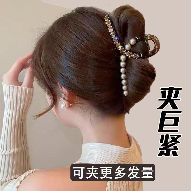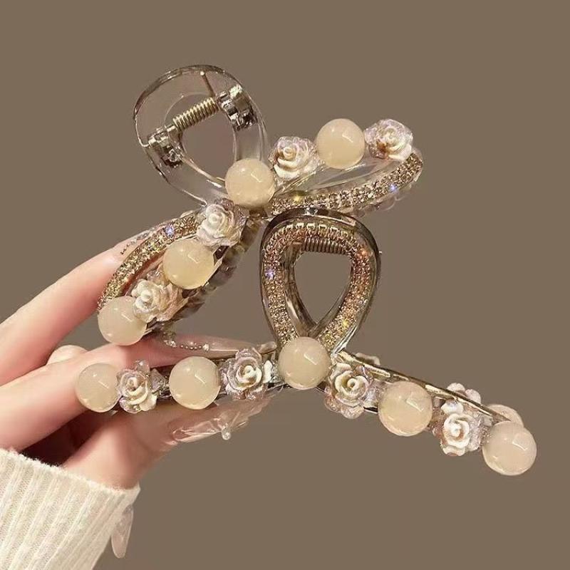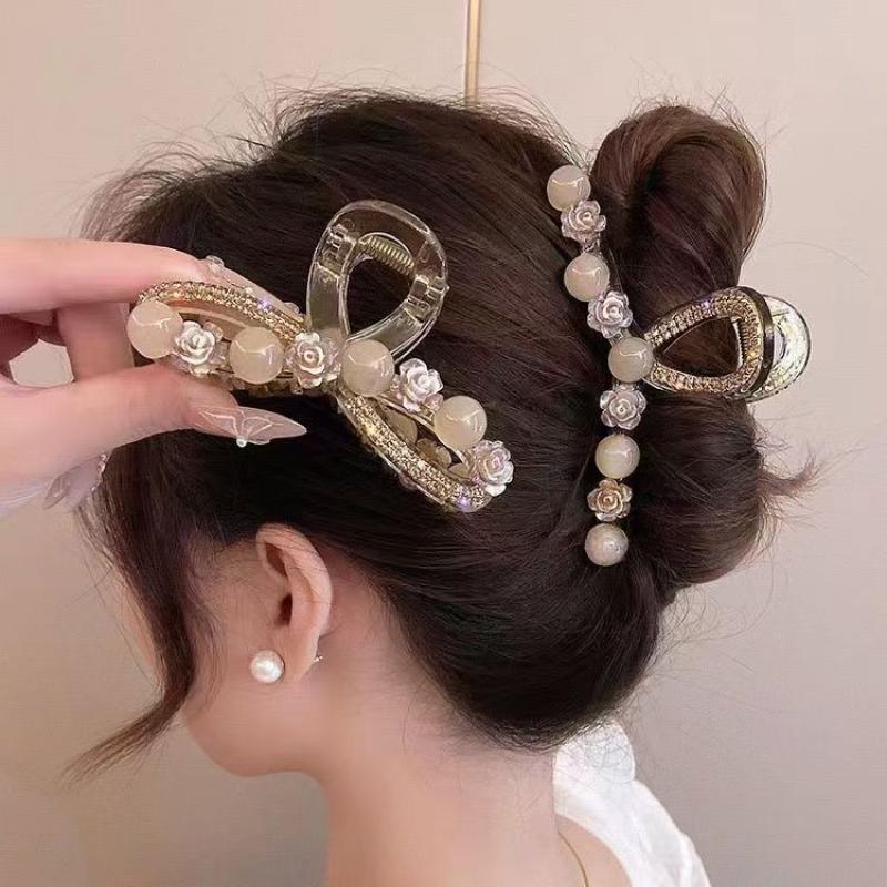 2025 새로운 한국식 로즈 비즈 대형 상어 클립 하이 엔드 그립 클립 여성 뒷머리 클립 헤어 클립 머리 장식