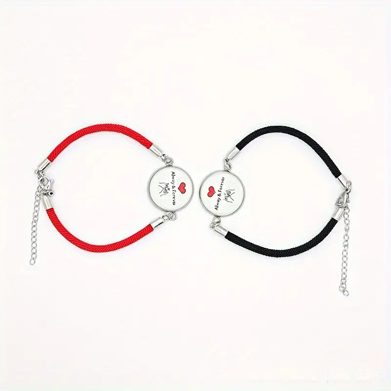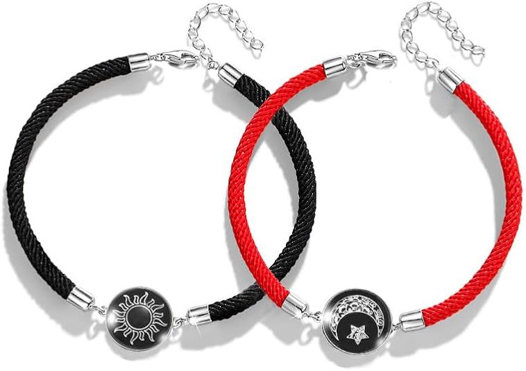 2024 국경을 넘는 새로운 수제 남성과 여성 커플 선물 팔찌 세트 태양과 달 유리 빛나는 음과 양 손 로프