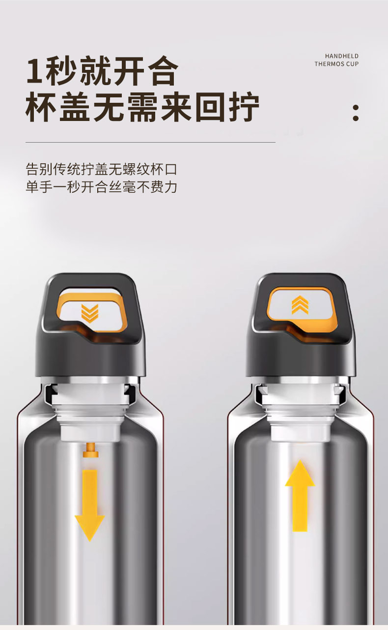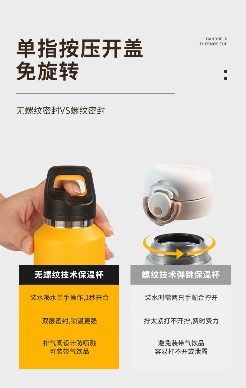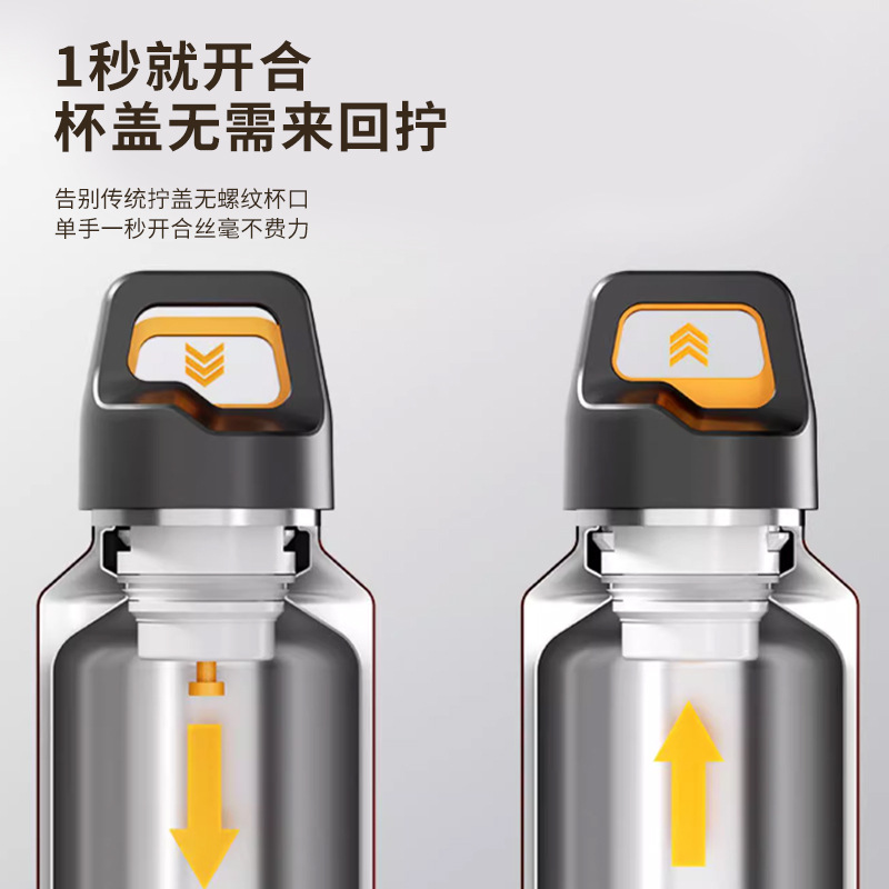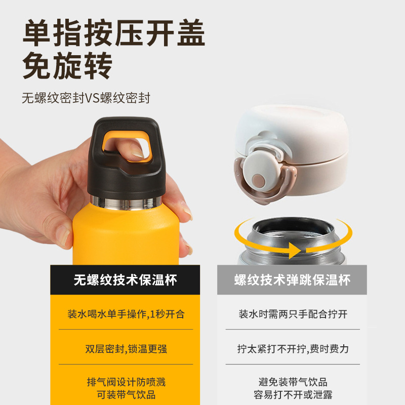 새로운 316 스테인레스 스틸 보온병 컵 원핸드 버튼 오픈 뚜껑 워터 컵 야외 등산 컵 휴대용 스포츠 워터 컵