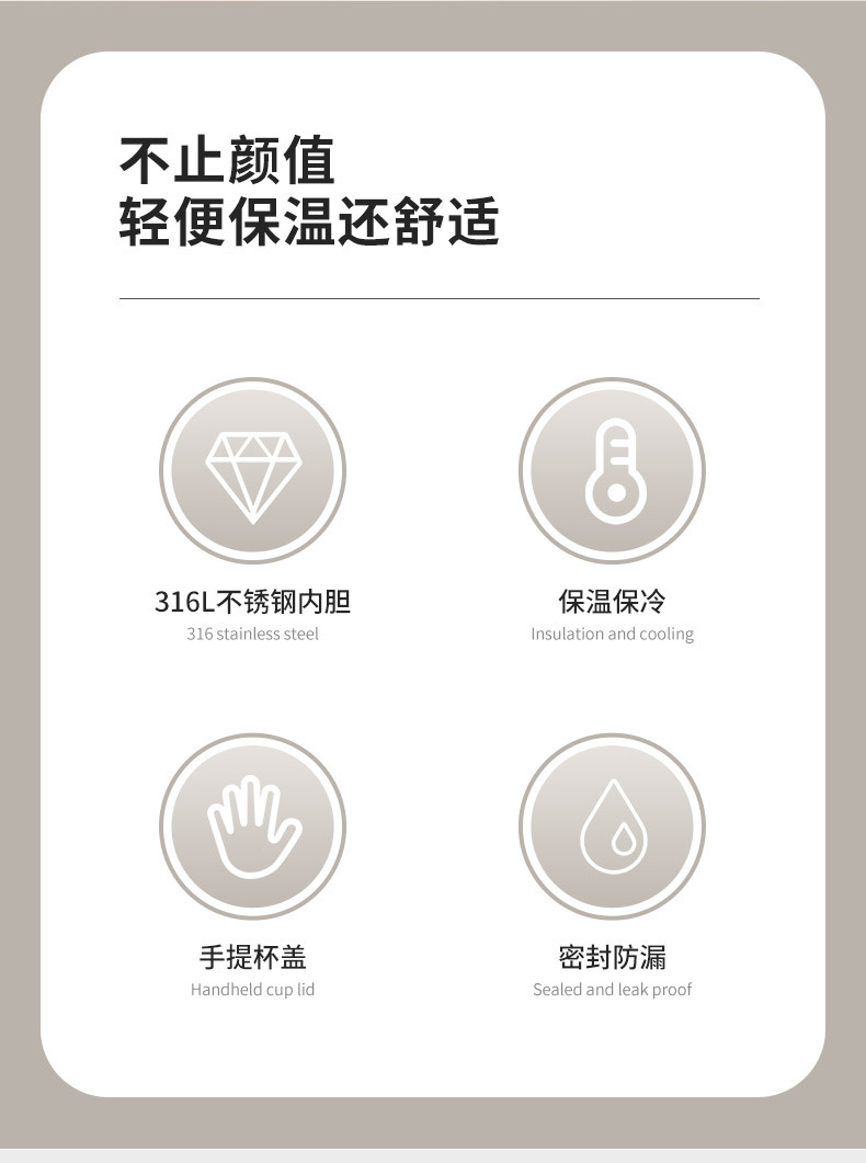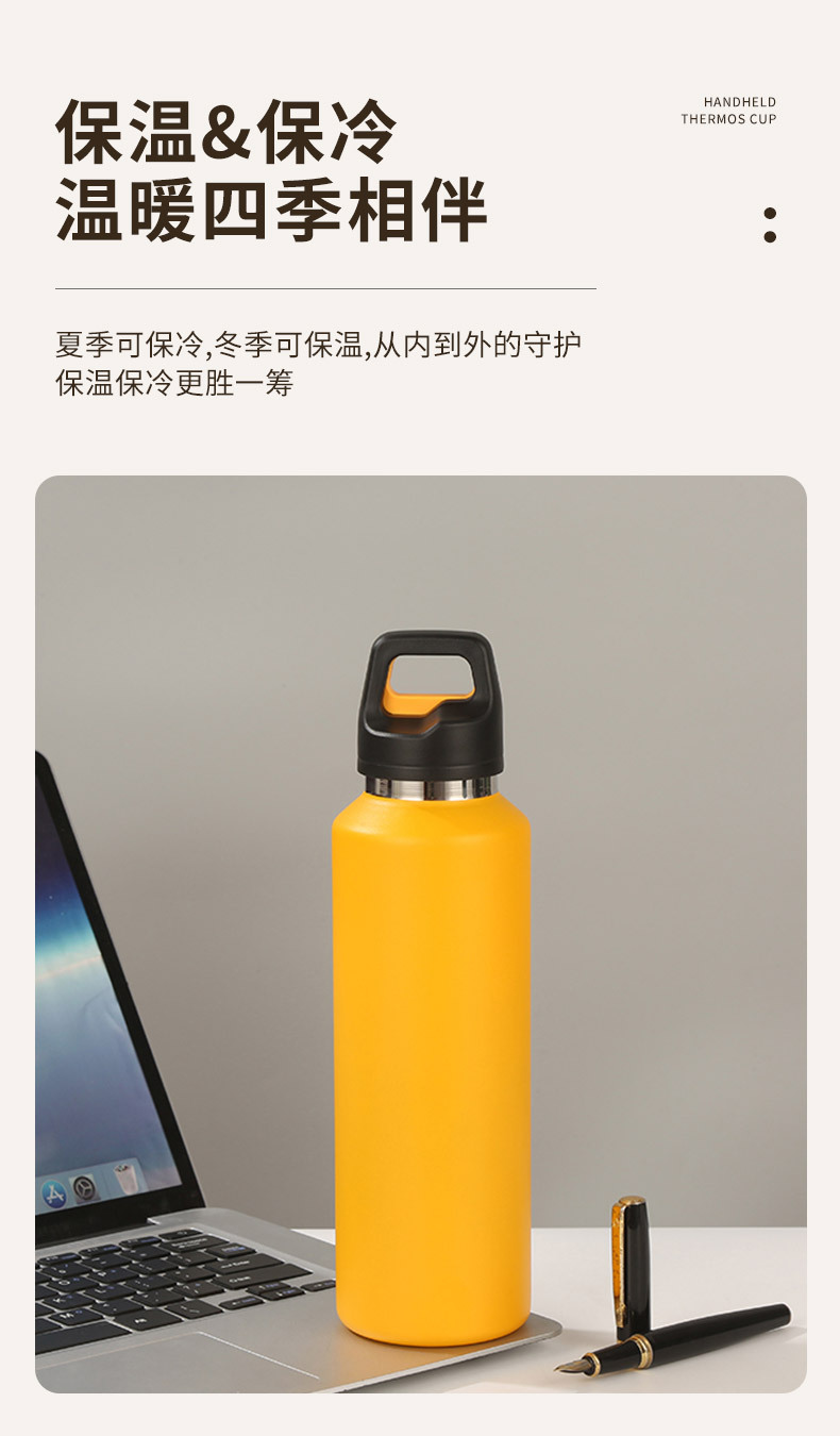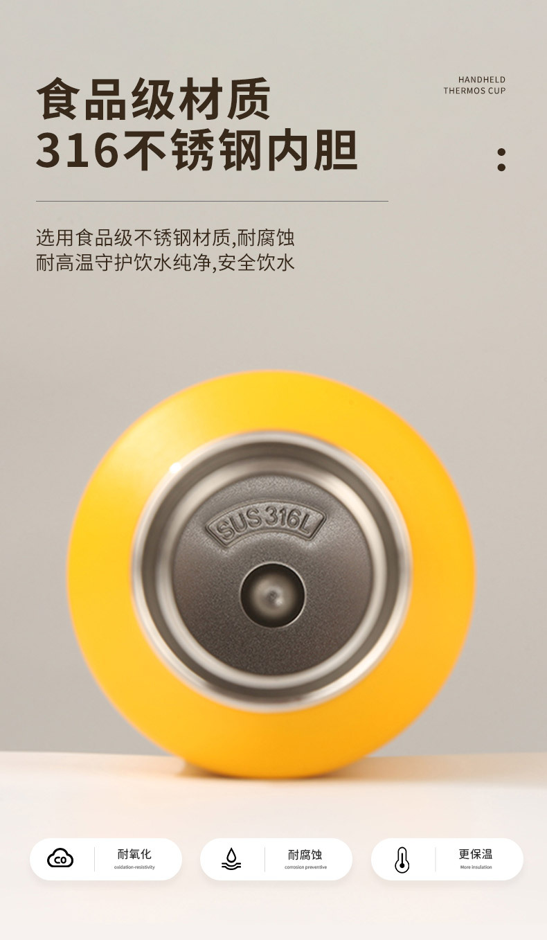 새로운 316 스테인레스 스틸 보온병 컵 원핸드 버튼 오픈 뚜껑 워터 컵 야외 등산 컵 휴대용 스포츠 워터 컵